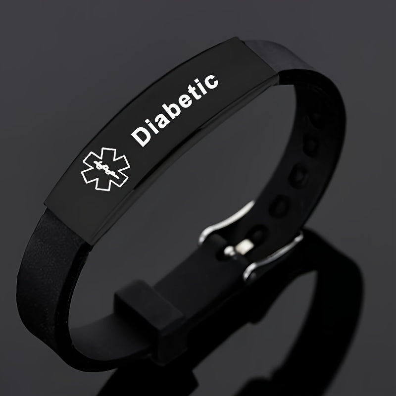 Stay safe and stylish with this silicone bracelet featuring the Star of Life symbol. It's important for emergency responders to know about your diabetic condition.