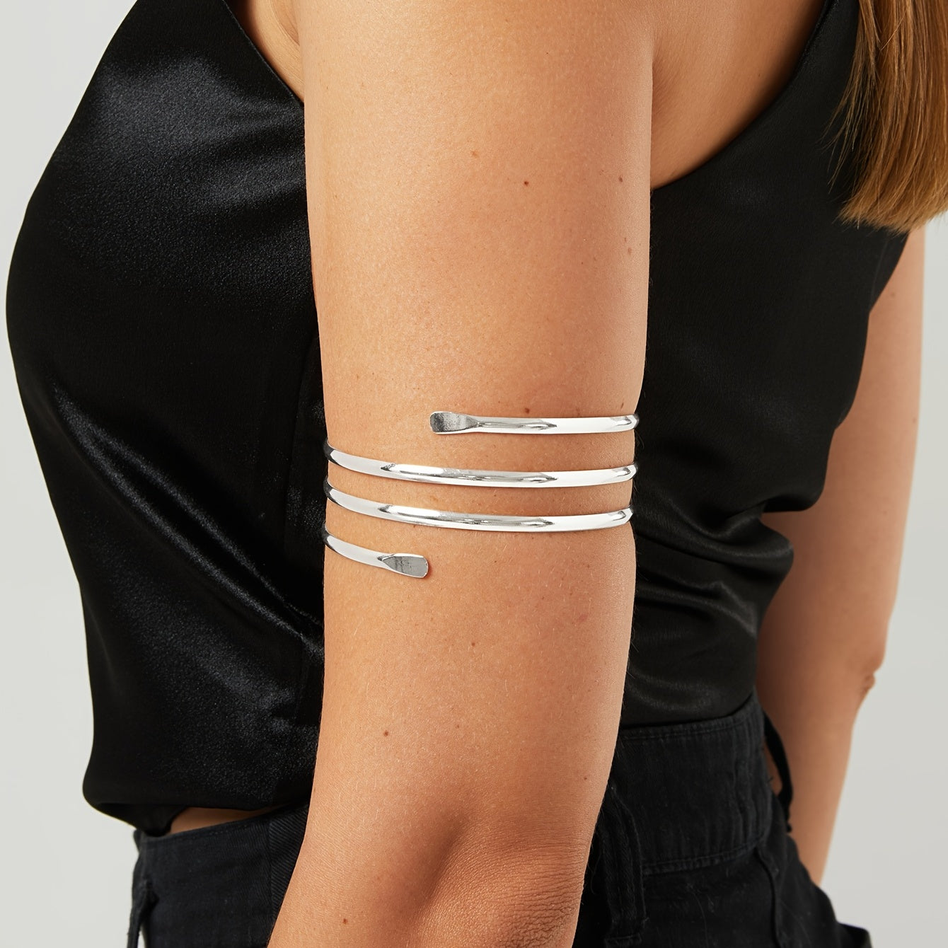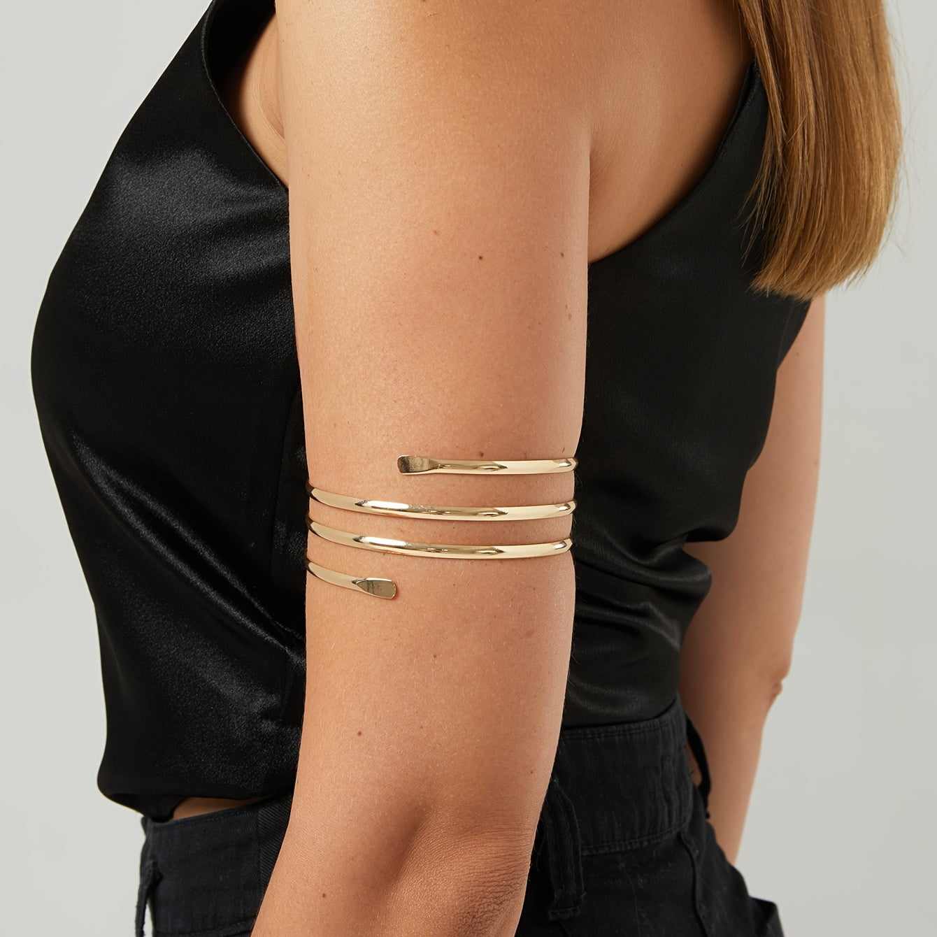Enhance your summer beach look with this stackable dainty armband made of 14K plated alloy. Elevate your outfit with this trendy arm bangle decoration.