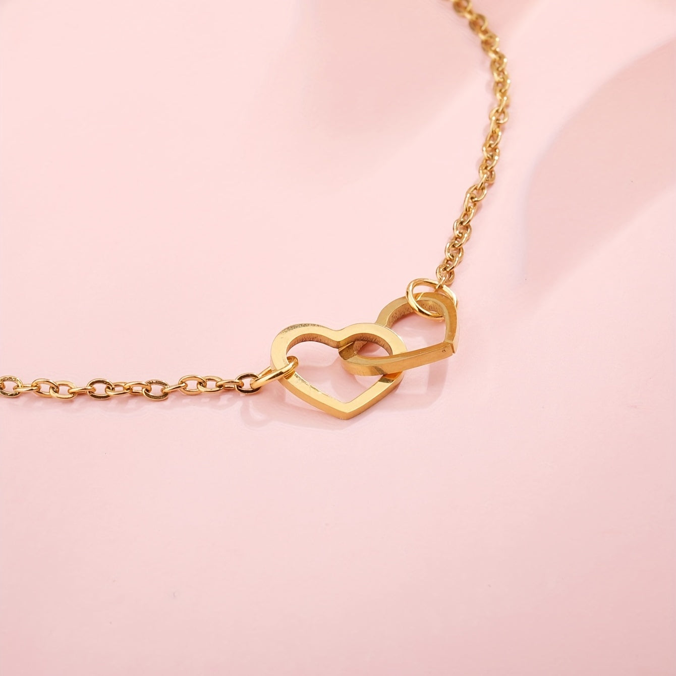 This stainless steel bracelet features a double heart design symbolizing love. It's a perfect gift for women, girlfriends, moms, and mothers on special occasions.
