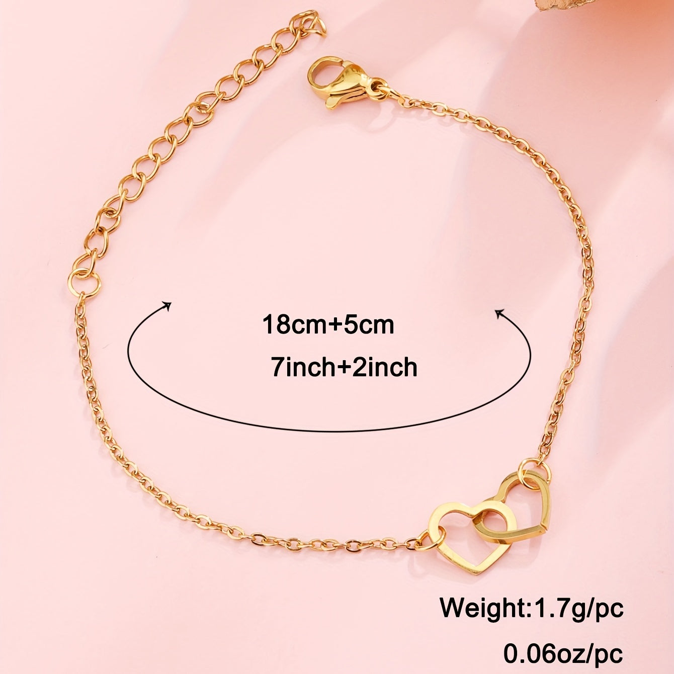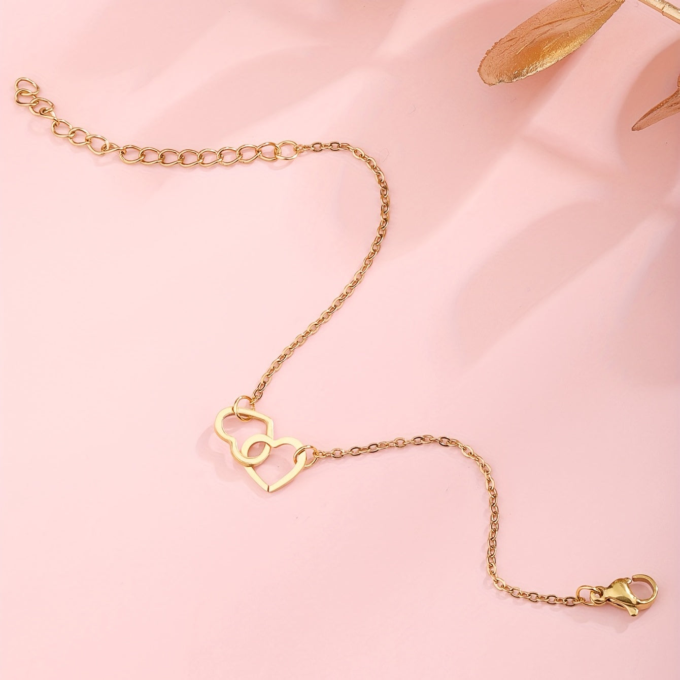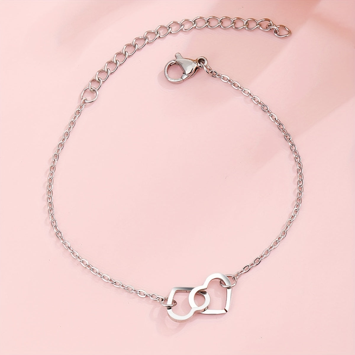 Stainless Steel Double Heart Love Bracelet Gift for Women Girlfriend Mom