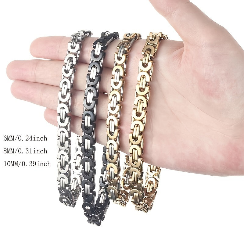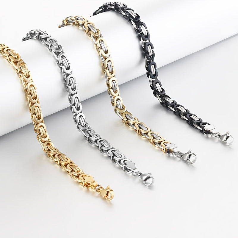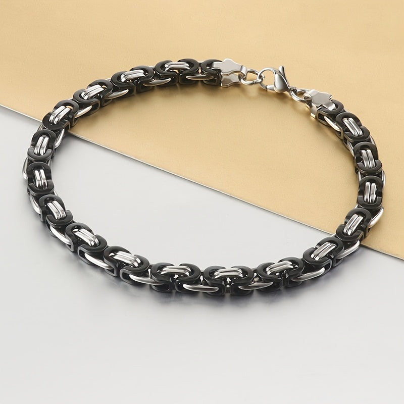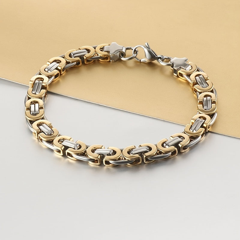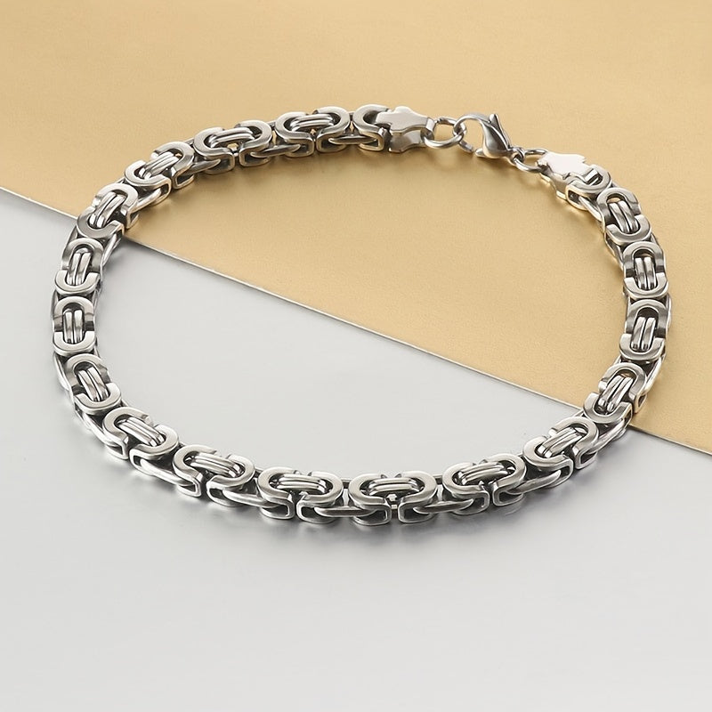 This stainless steel flat Byzantine bracelet is a stylish accessory for men who love hip hop jewelry. It is made of high-quality stainless steel and features a unique design that will make a statement.