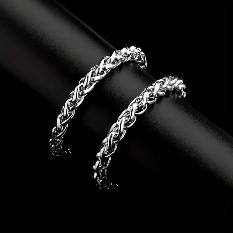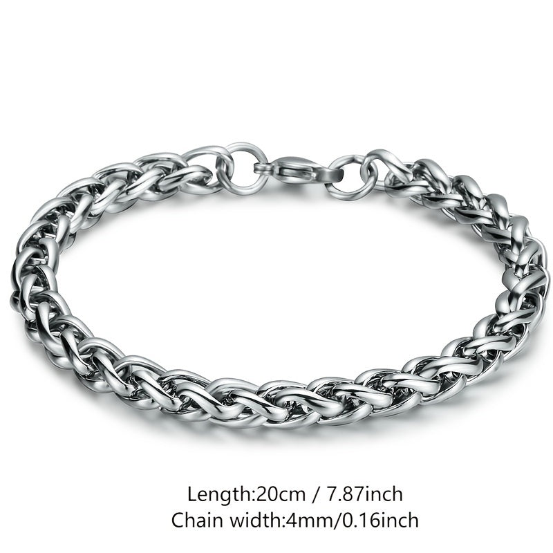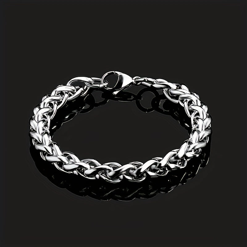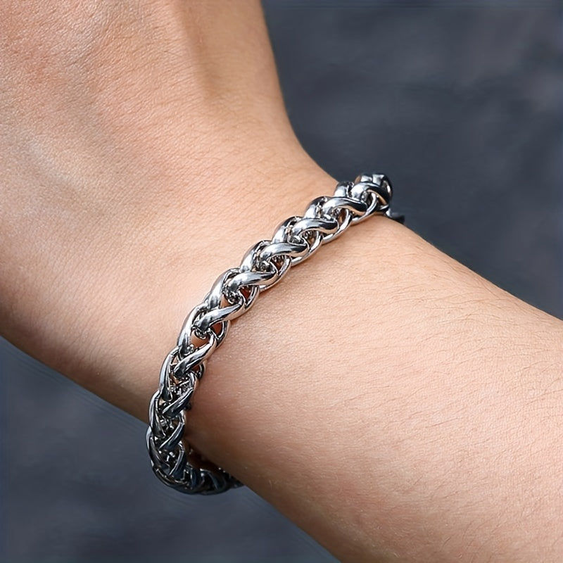 This stainless steel bracelet is a stylish accessory for men. It is crafted with high-quality stainless steel for durability and a sleek look.