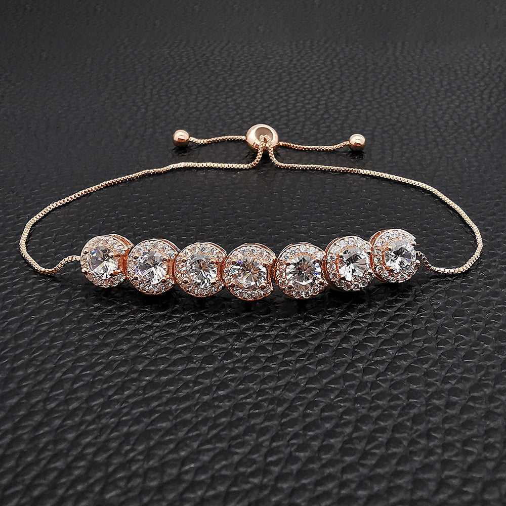 Elegant tennis bracelet made with cubic zirconia crystals, perfect for weddings and bridal occasions.