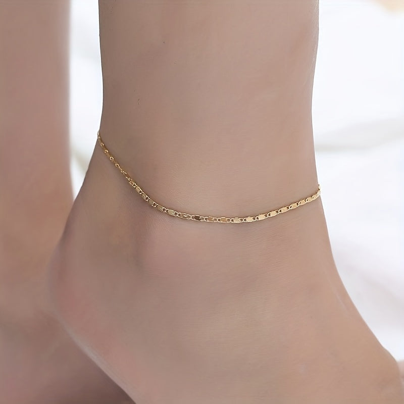 Add a touch of elegance to your ankle with this stylish thin chain anklet, plated with 14K gold. Perfect for showcasing your barefoot look.