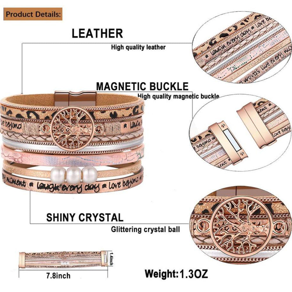 Beautiful leather bracelet with a tree of life print, alphabet pearls and magnetic buckle. Ideal gift for birthdays, Christmas, and Mothers. Perfect jewelry for teen girls.