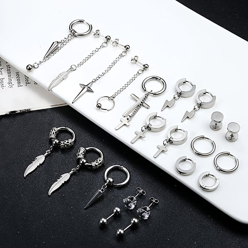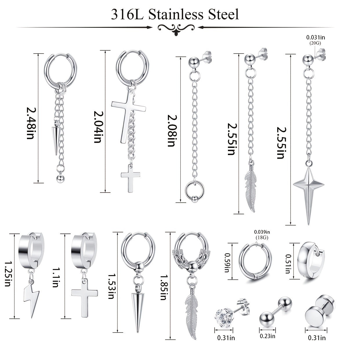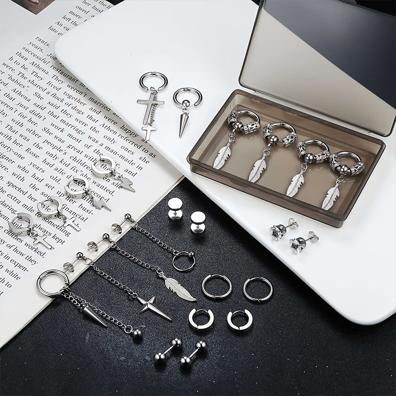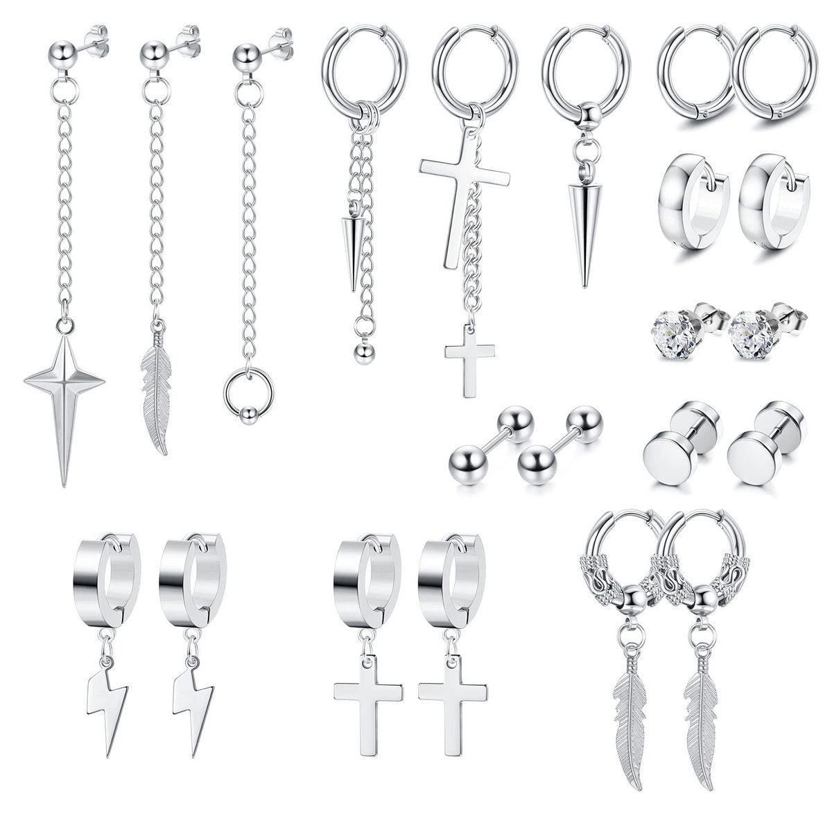 24 Pcs Stainless Steel Hoop & Cross Dangle Earrings Set