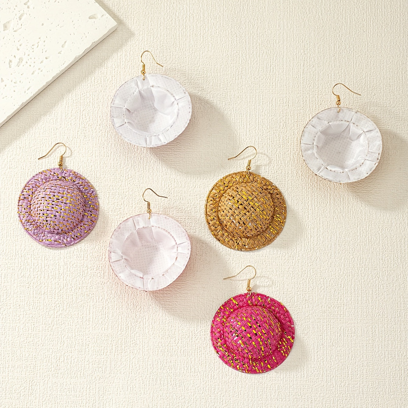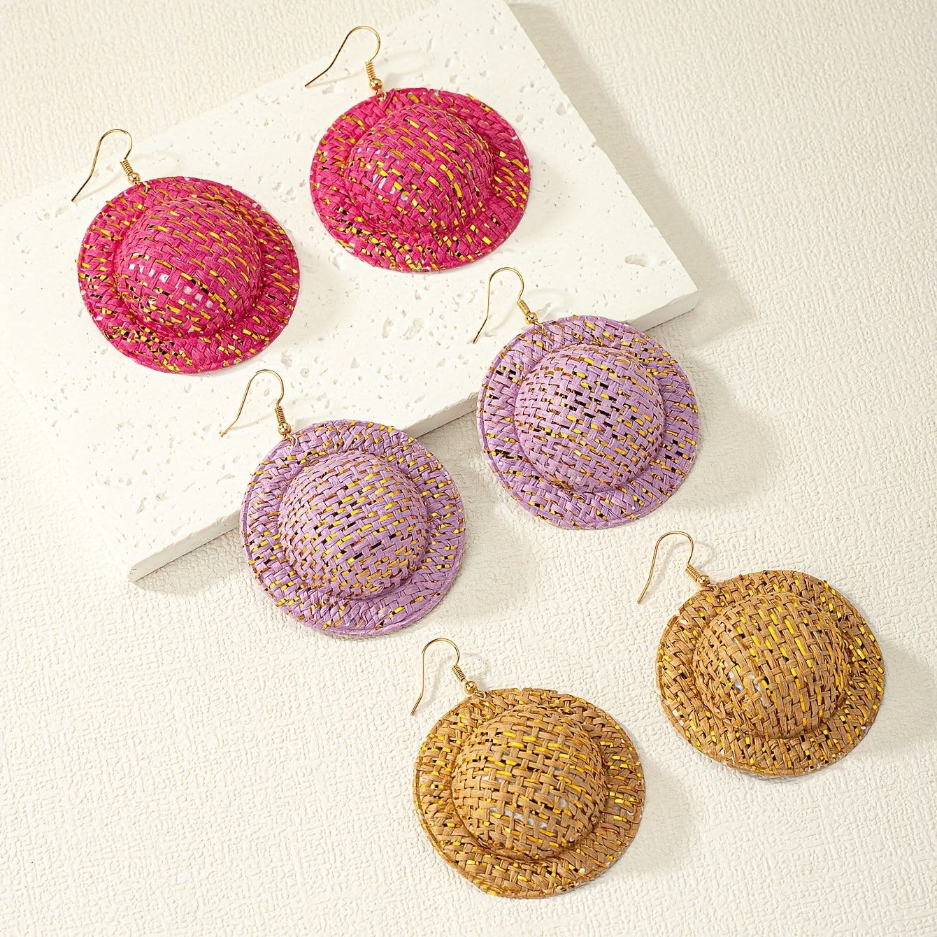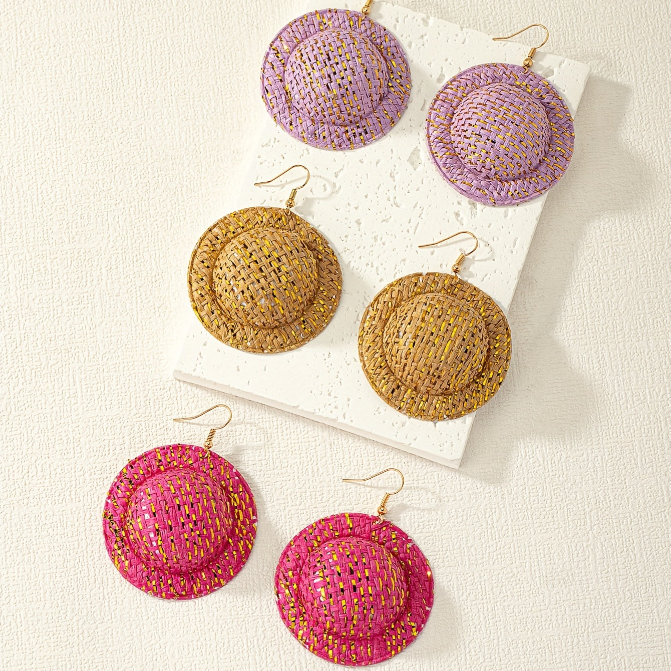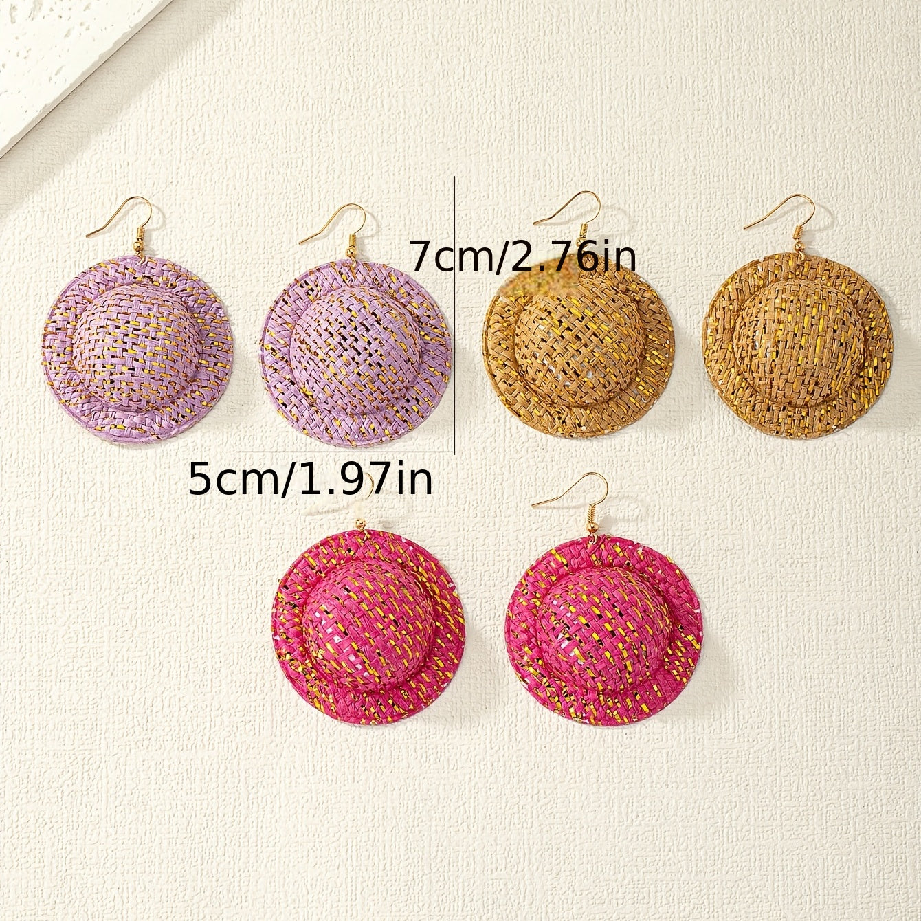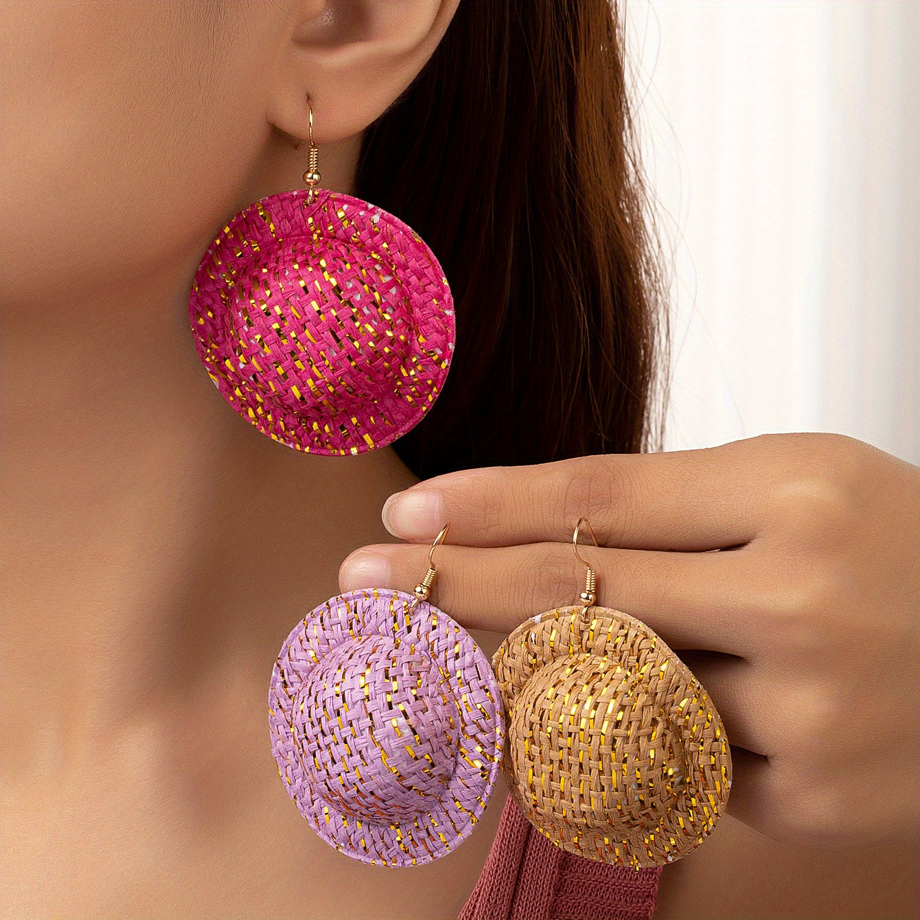 These mini straw hat dangle earrings are perfect for adding a bohemian touch to your outfit. They are braided and make a great gift for females.