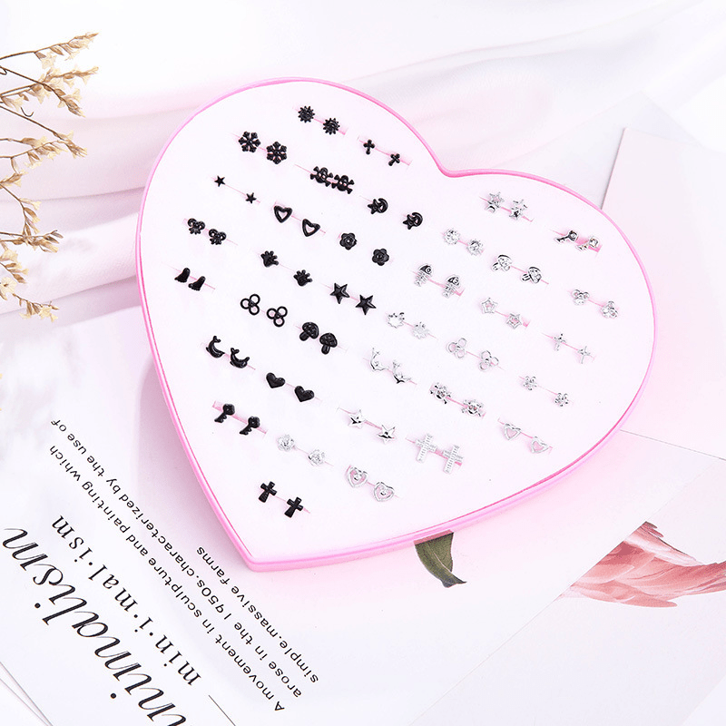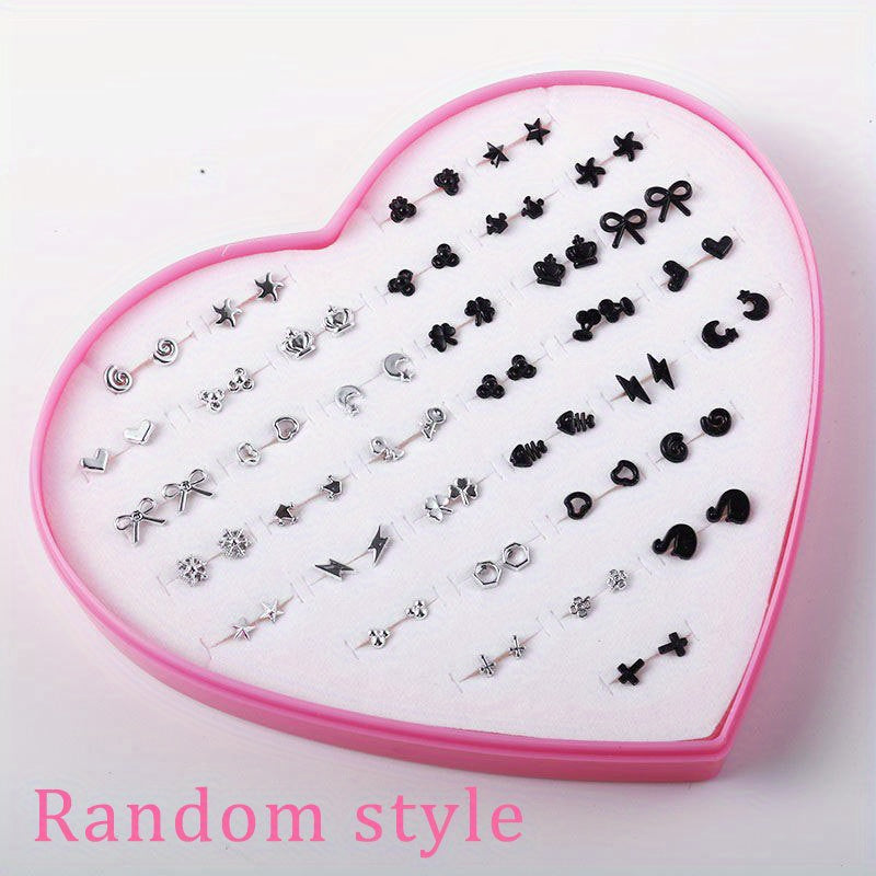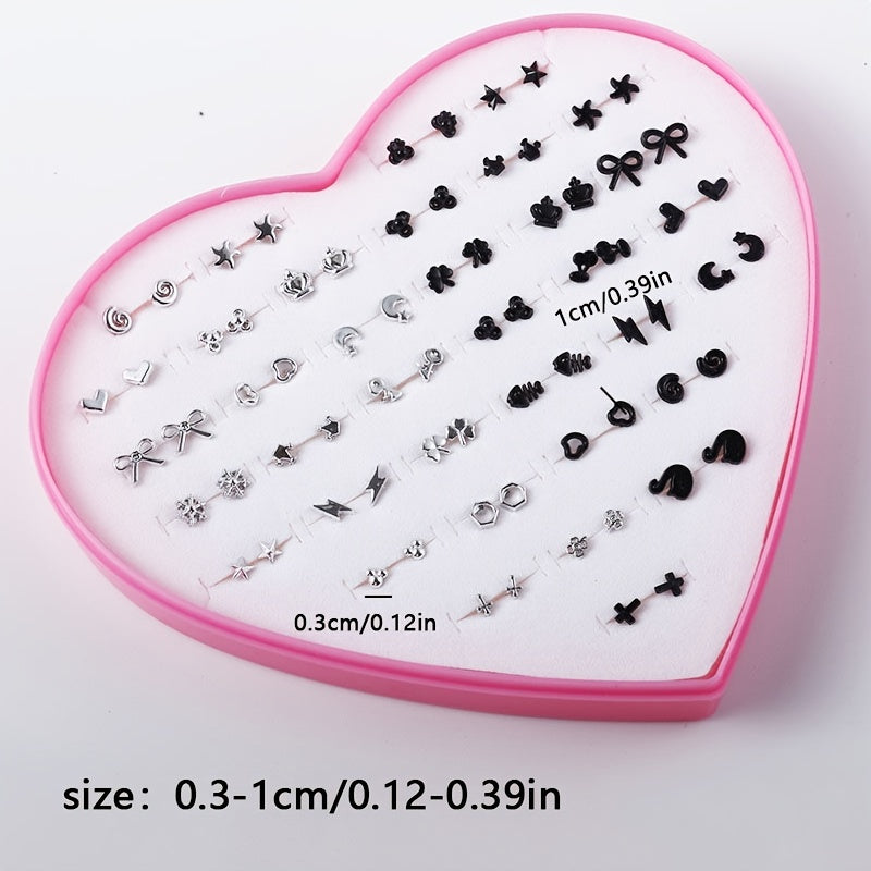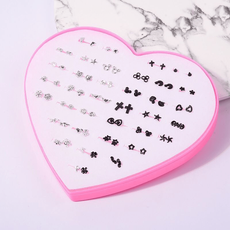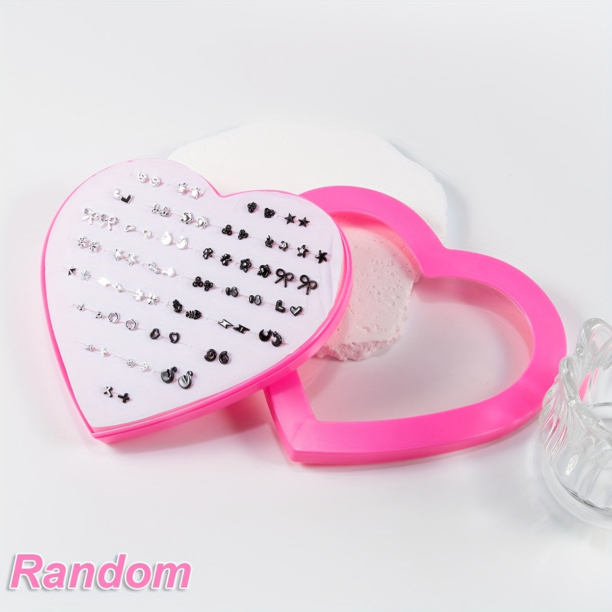 36 Pairs Stud Earrings Hypoallergenic Peach Heart Women's Jewelry