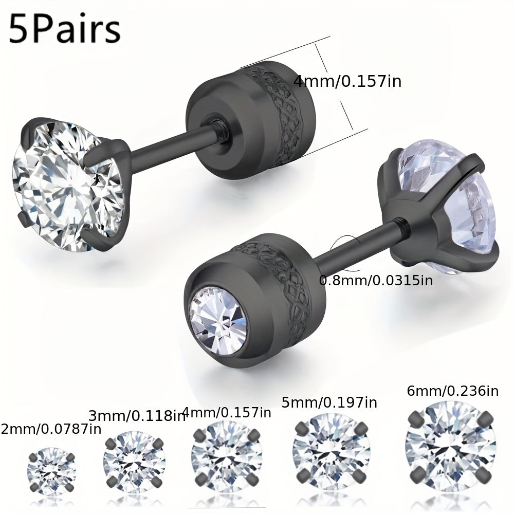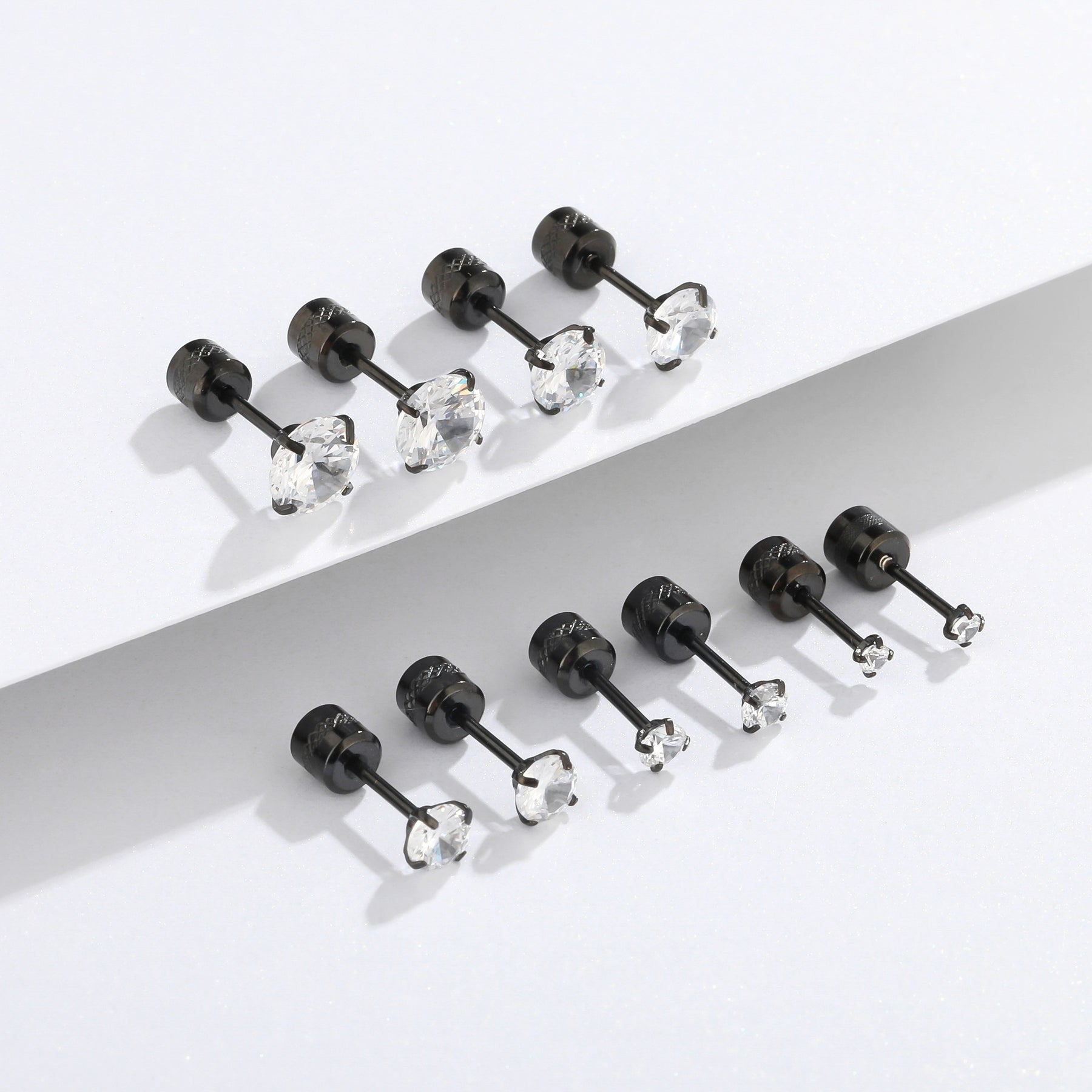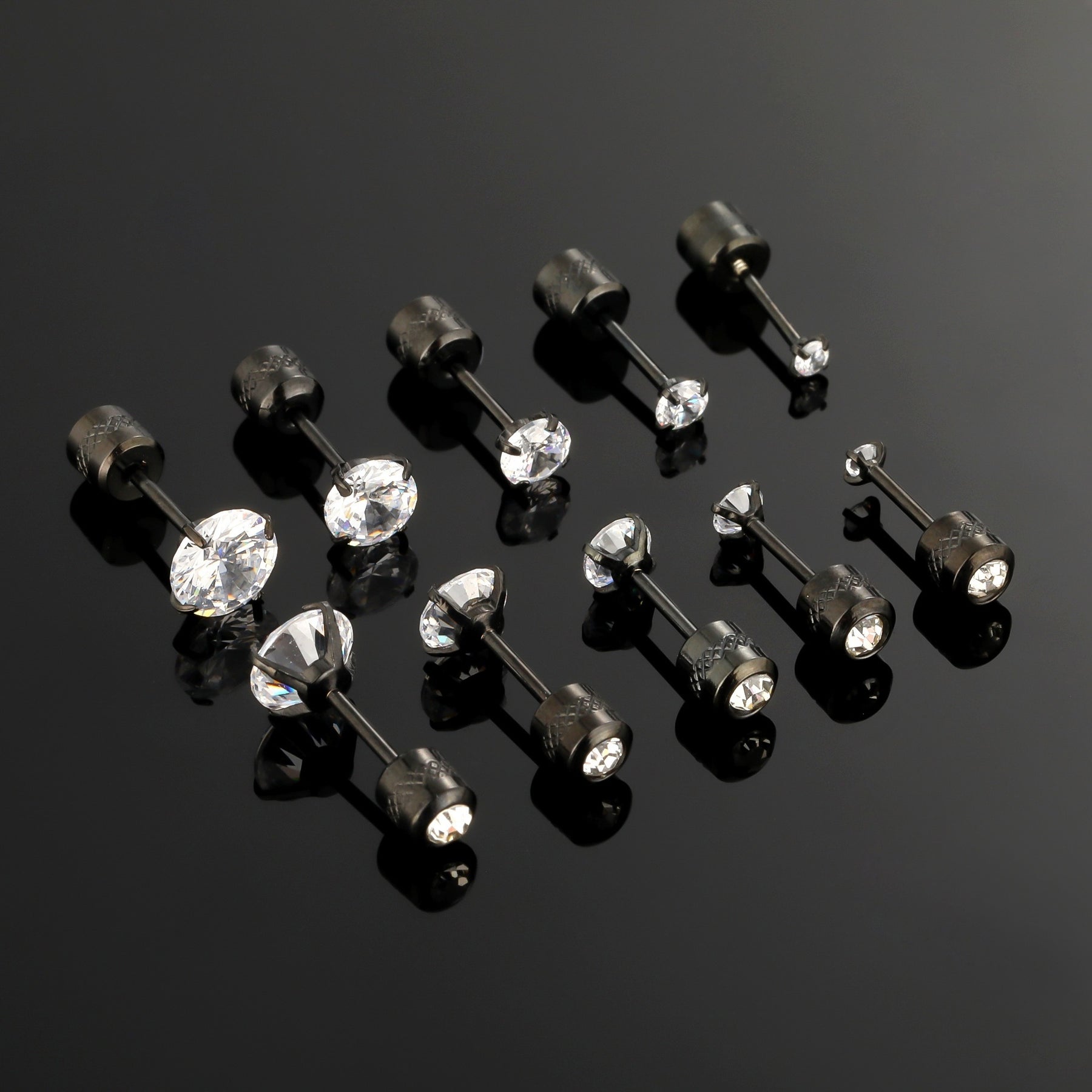 5 Pairs Screw Back Cartilage Stud Earrings Round Cubic Zirconia Double Sided