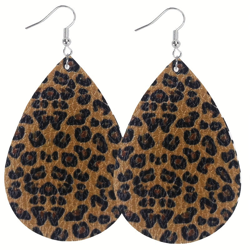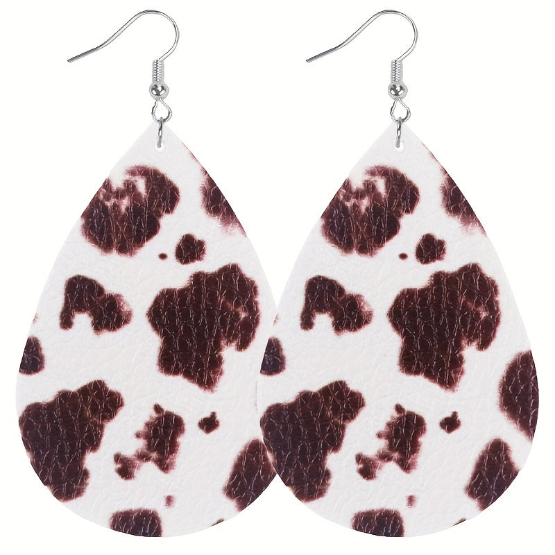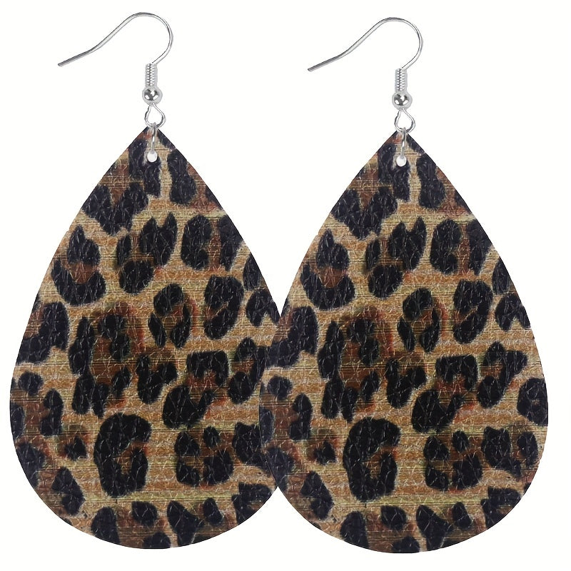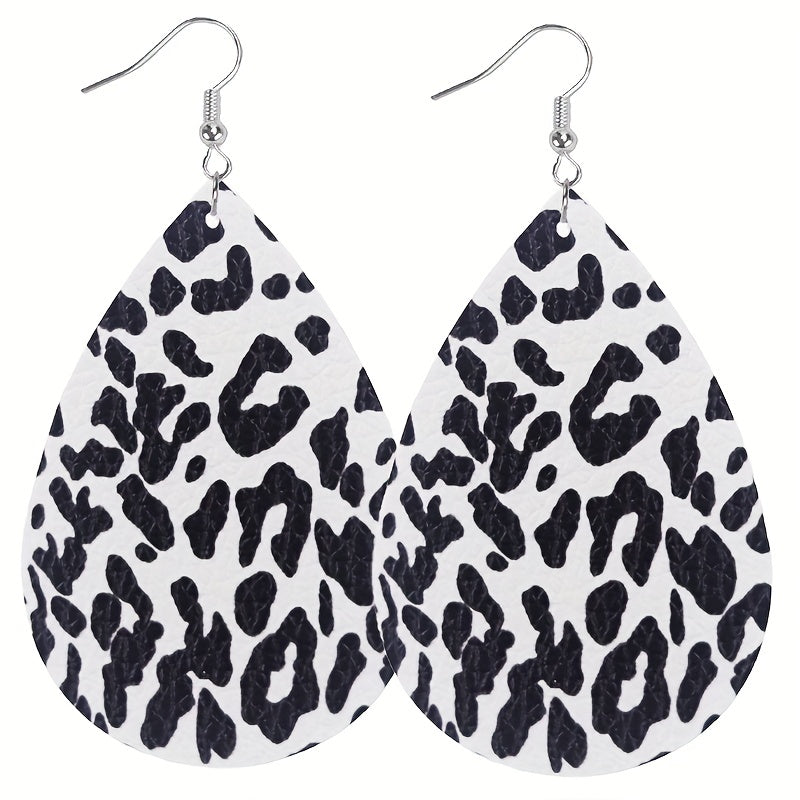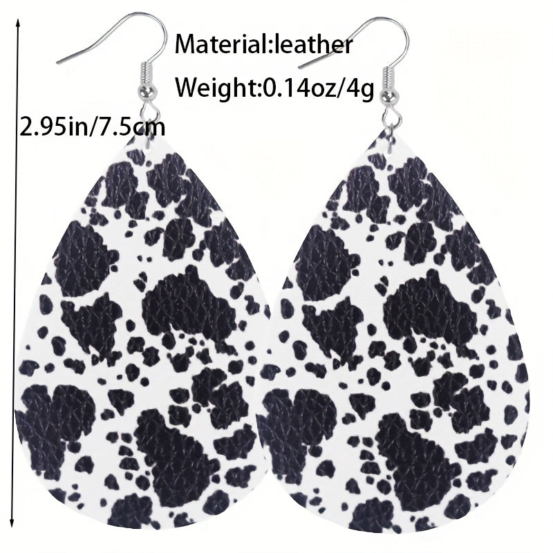 Enhance your style with this set of 8 pairs of teardrop dangle earrings featuring a retro cow leopard pattern design. Made from high-quality PU leather, these earrings are a perfect gift for any fashion-forward female.