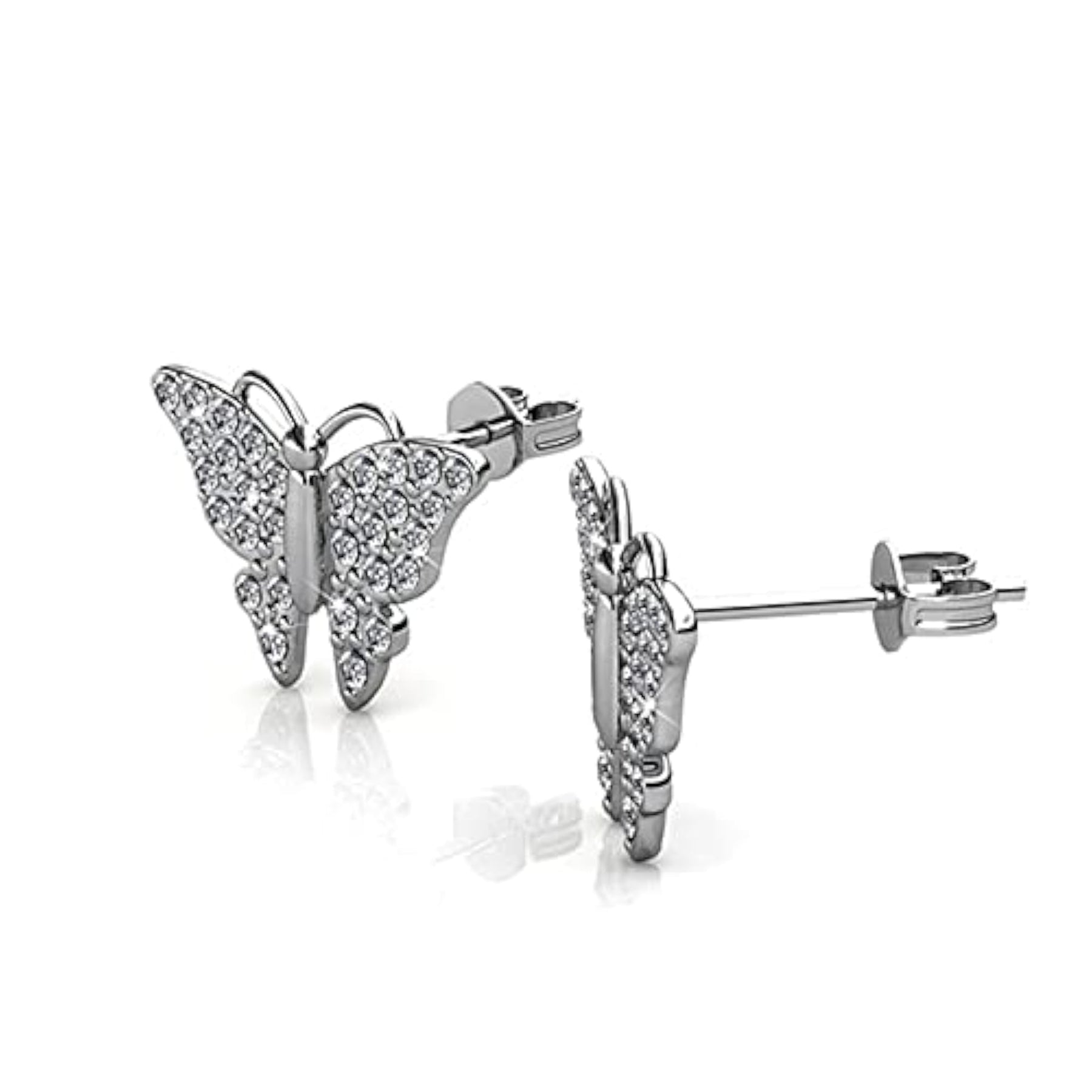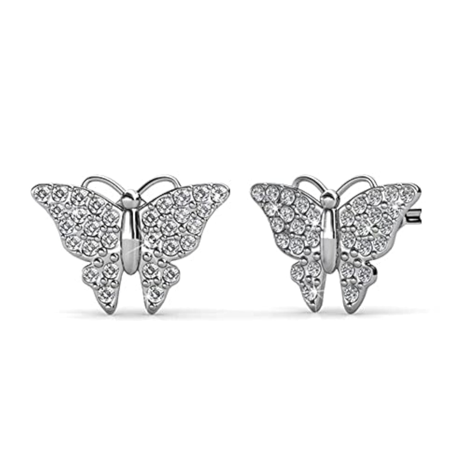 Elegant small butterfly stud earrings featuring sparkling Austrian crystals. Perfect for adding a touch of charm and sophistication to any outfit.
