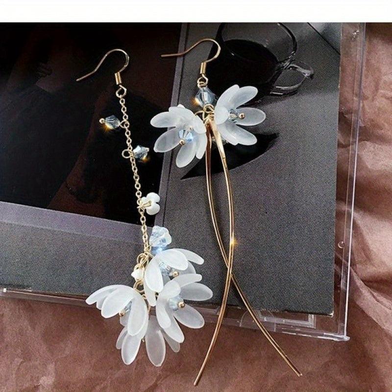 These long tassel earrings feature delicate rhinestone flower accents, perfect for weddings and parties. A great gift idea for women.