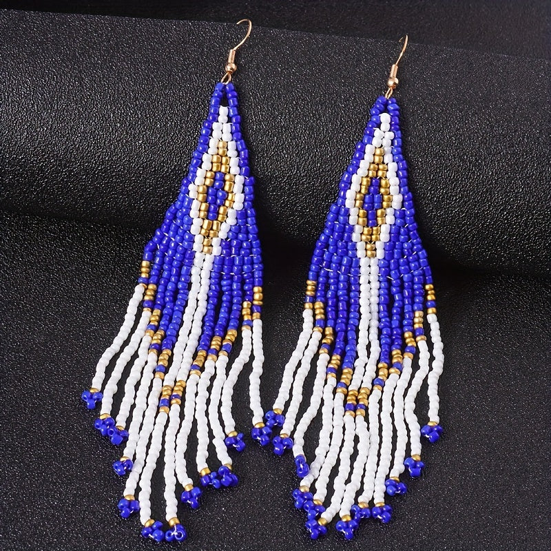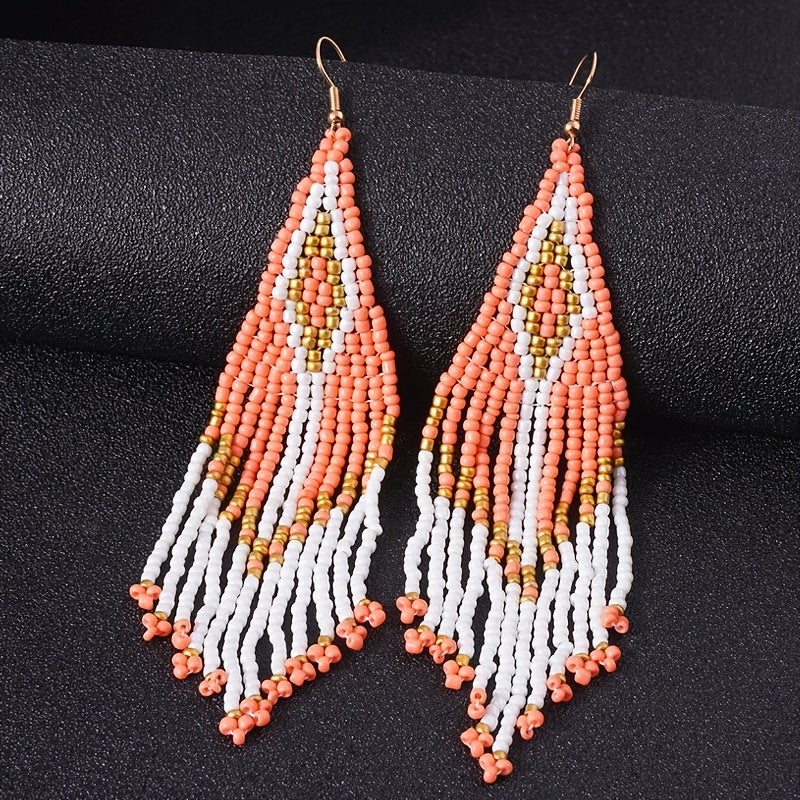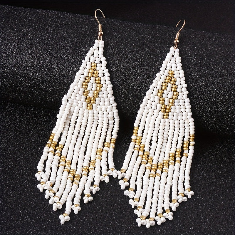 Bohemian Beaded Tassel Fringe Drop Dangle Earrings