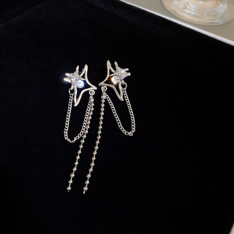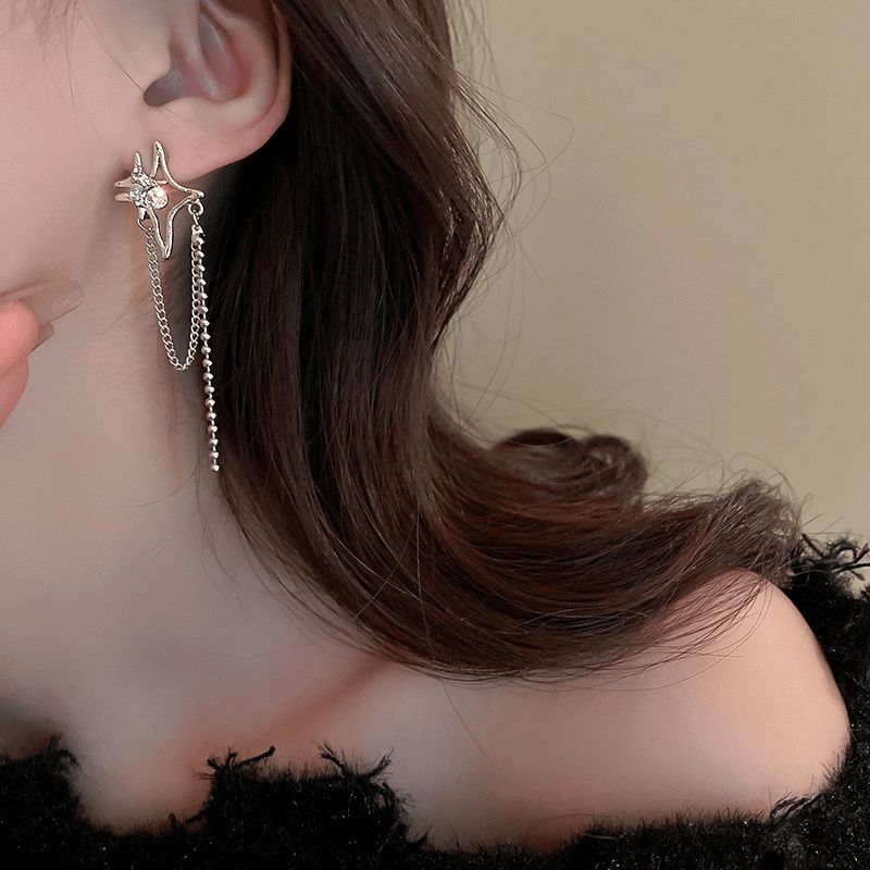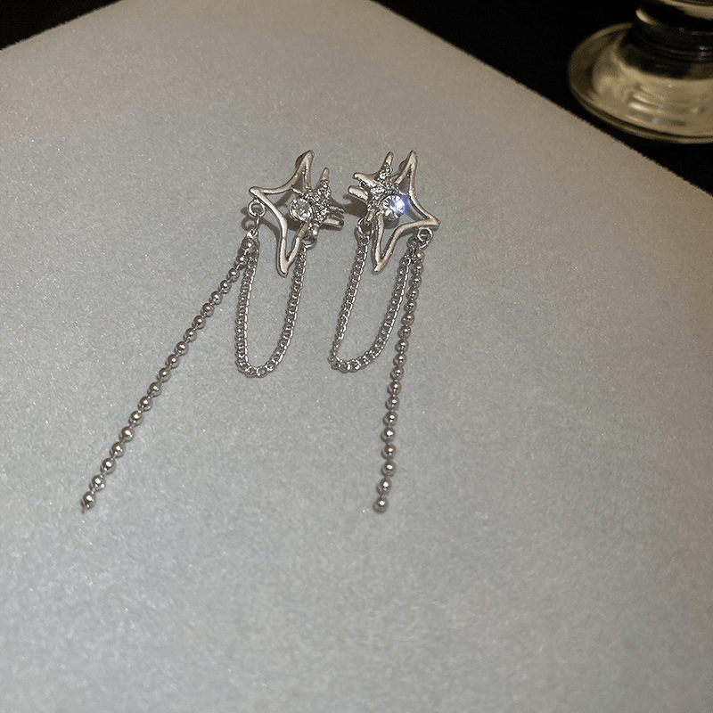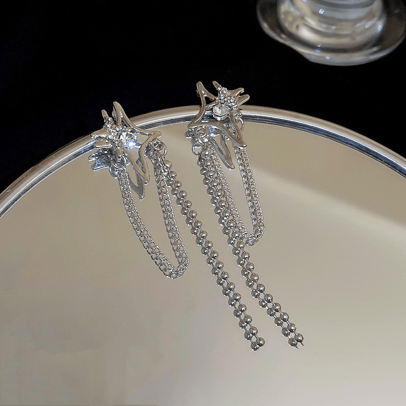 These beautiful tassel stud earrings are perfect for daily wear or parties. They feature bright star design with silvery finish that adds a touch of elegance to any outfit.