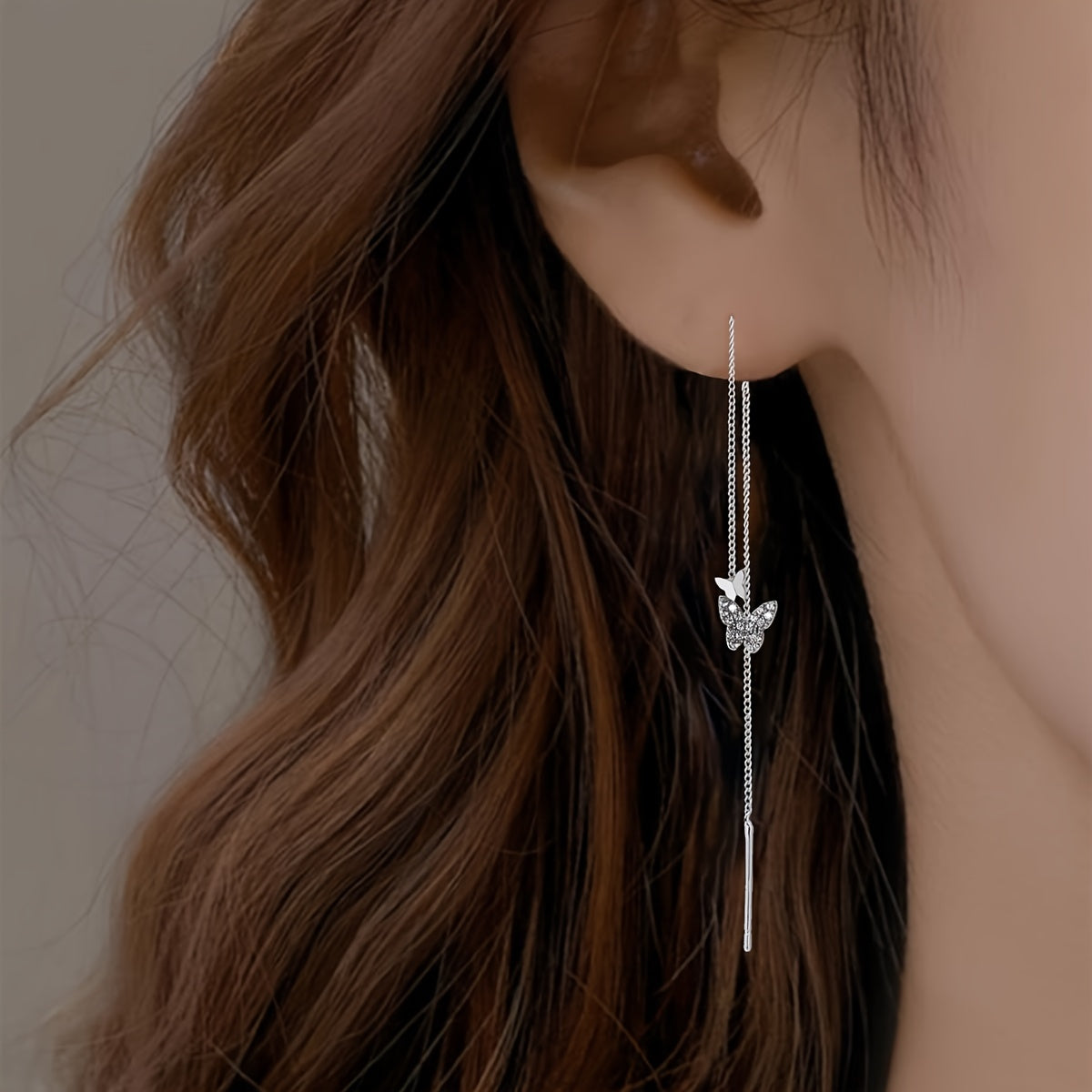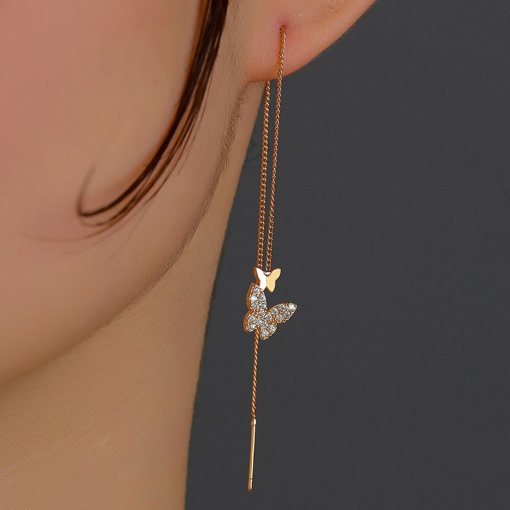 Butterfly Shape Threader Earrings with Zircon Long Chain Statement Jewelry