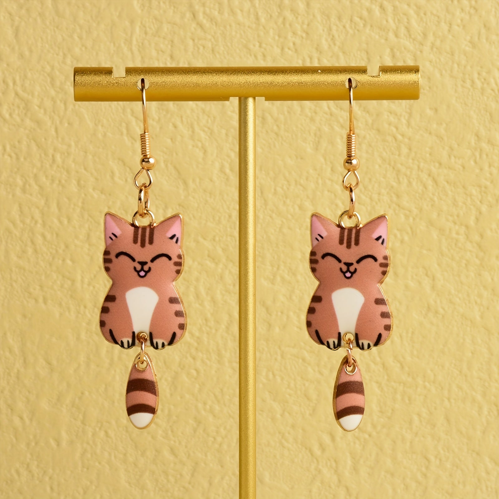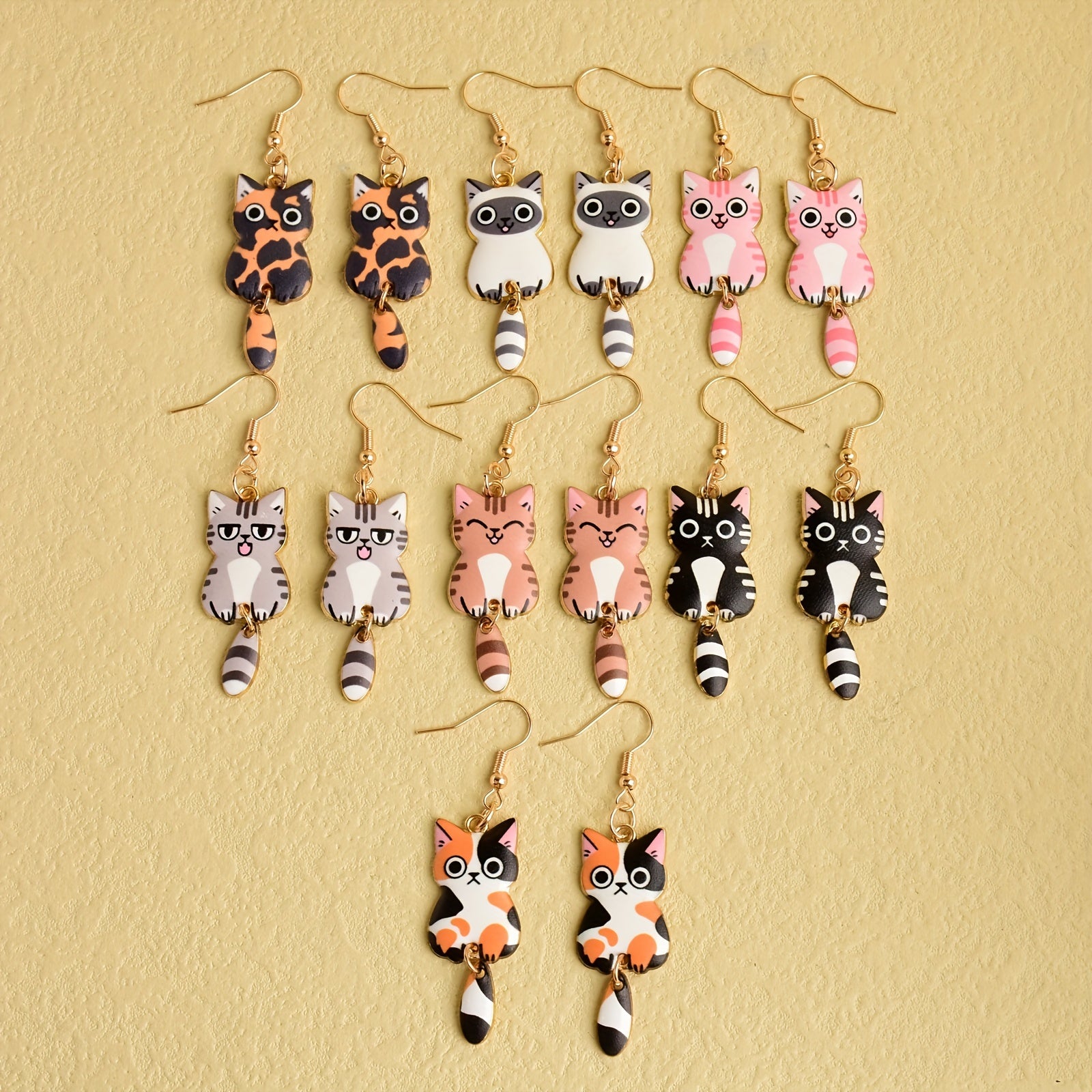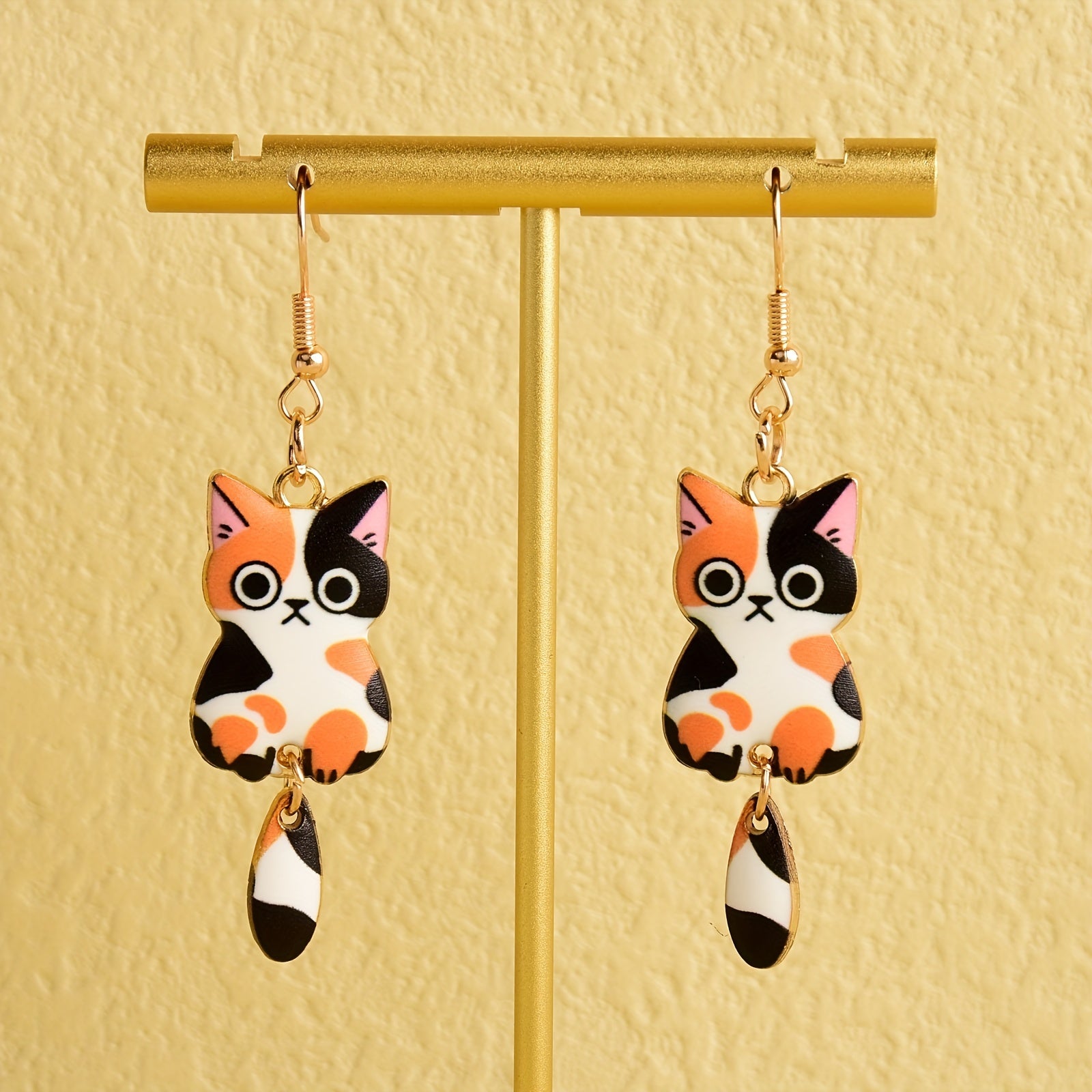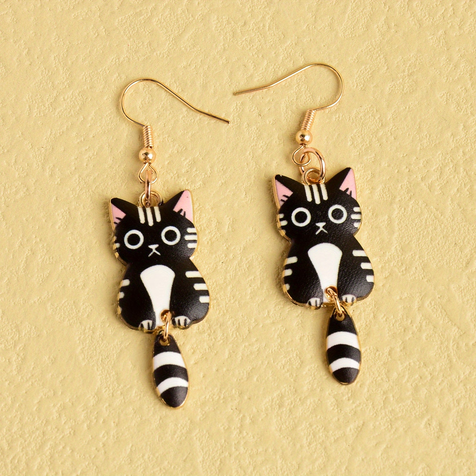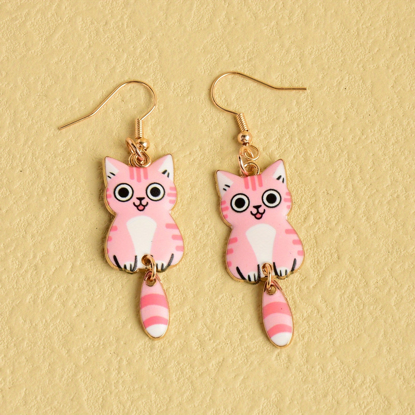 Adorable cartoon cat dangle earrings made of zinc alloy, perfect as a lovely gift for women and girls.