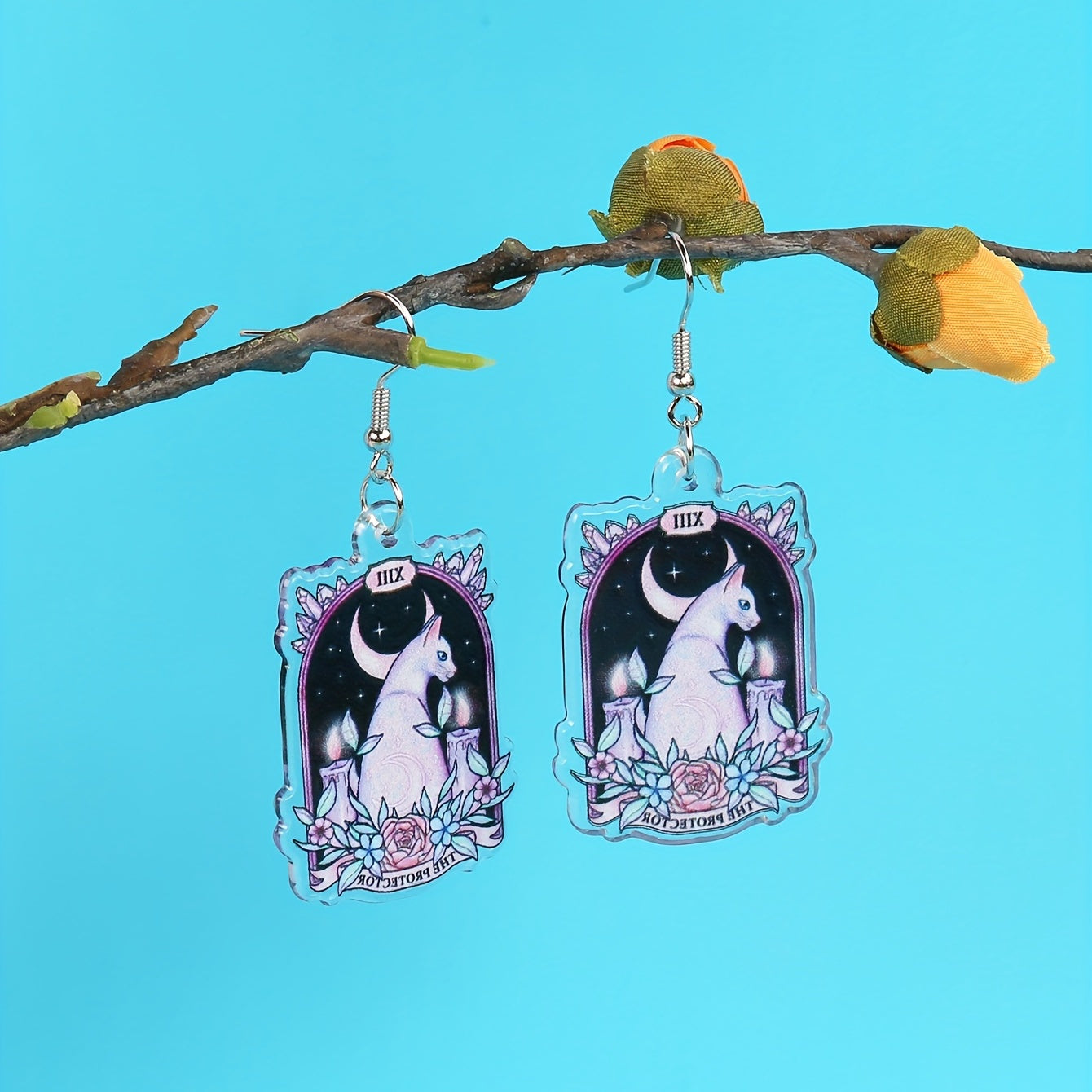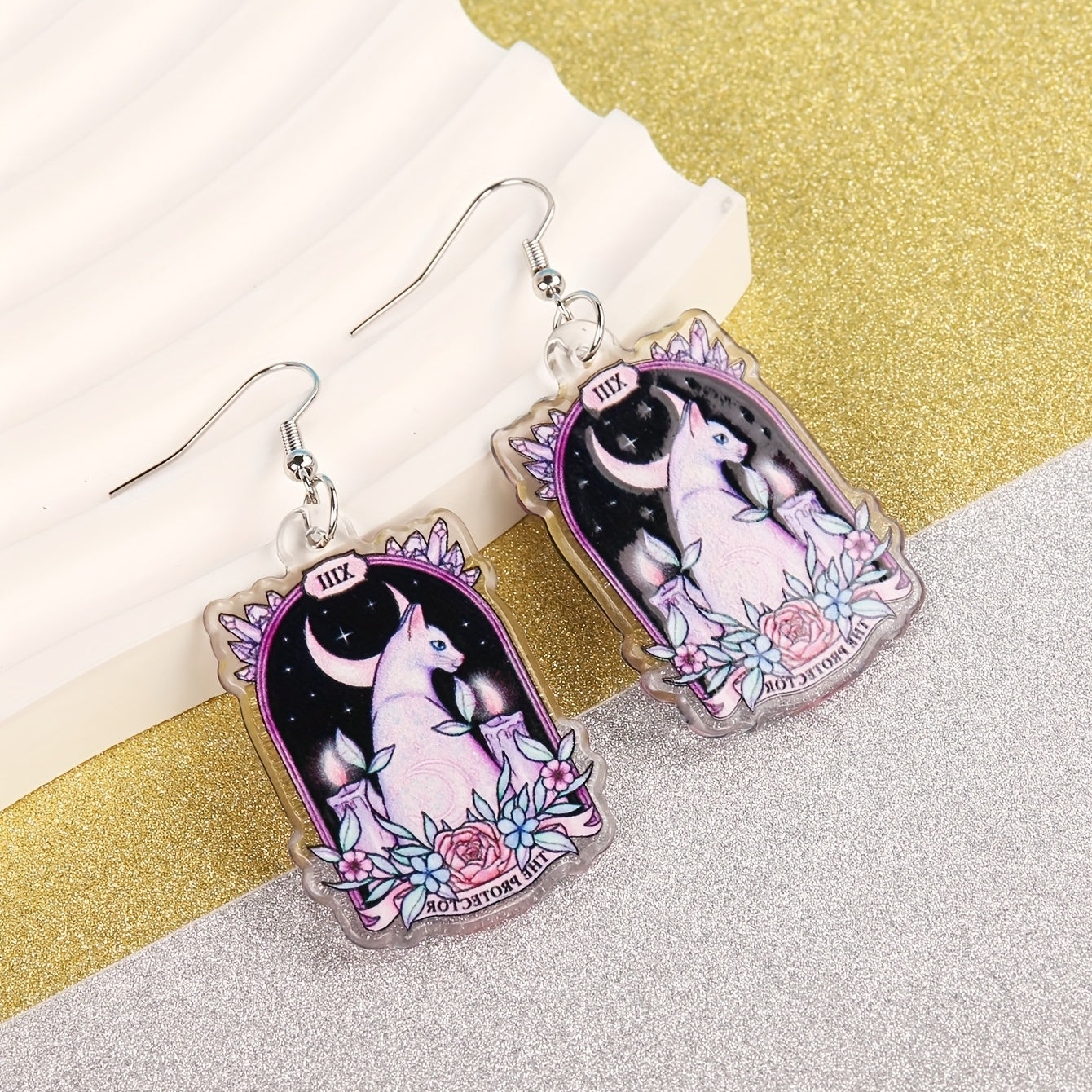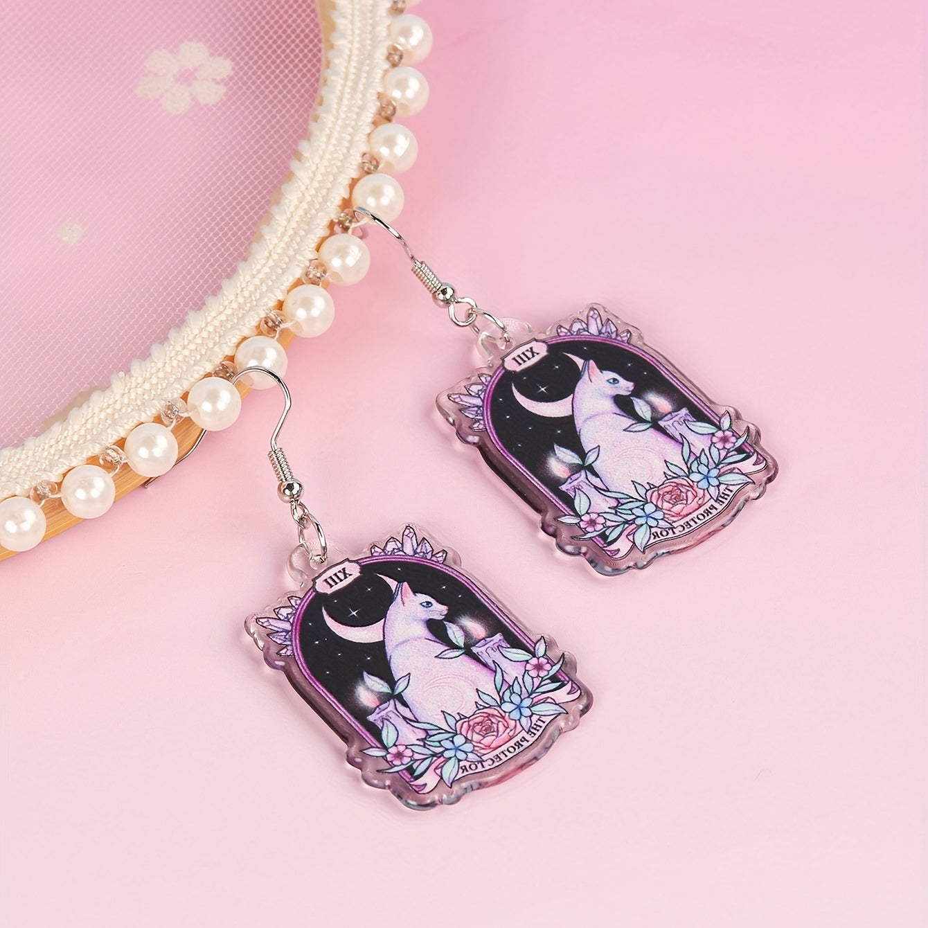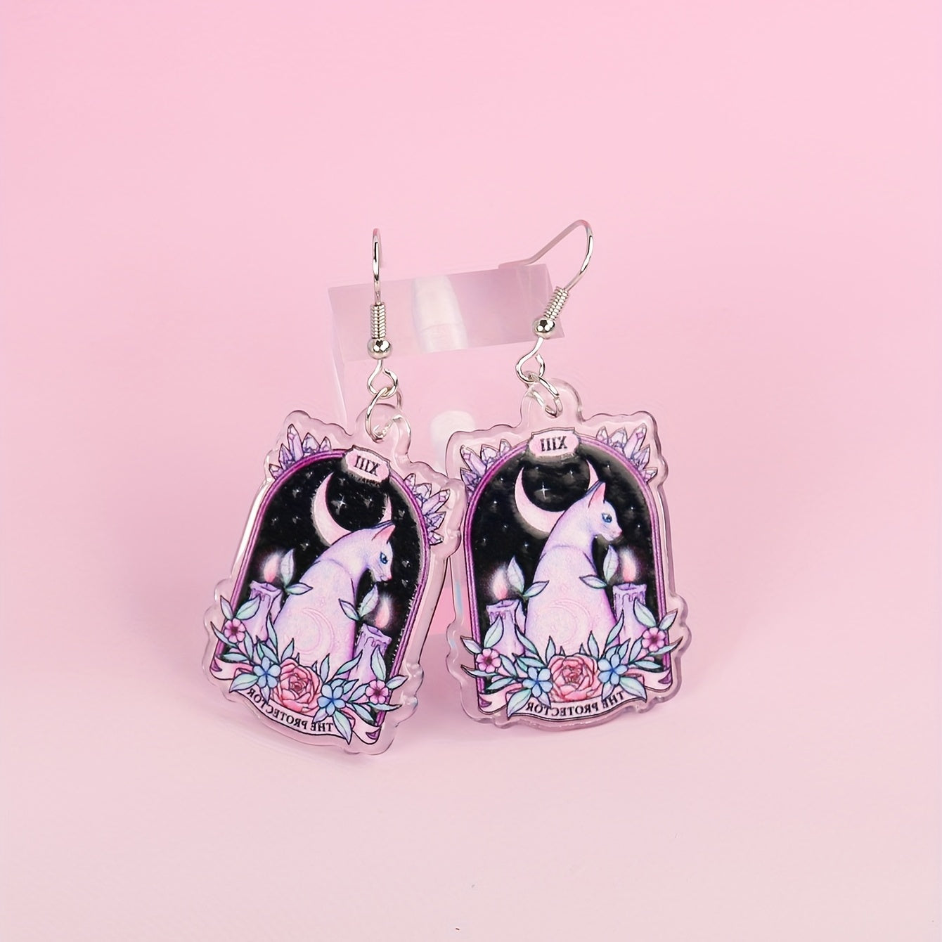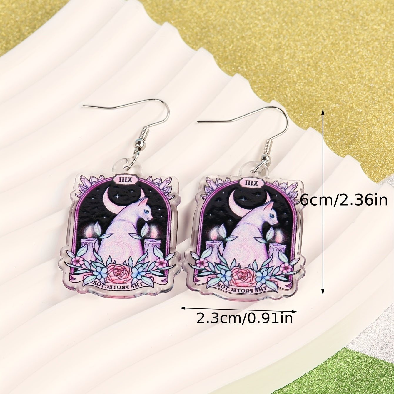 Add a touch of retro charm with these colorful cat flower pattern dangle earrings. Made from acrylic, these earrings are a perfect gift for any female with a fun personality.