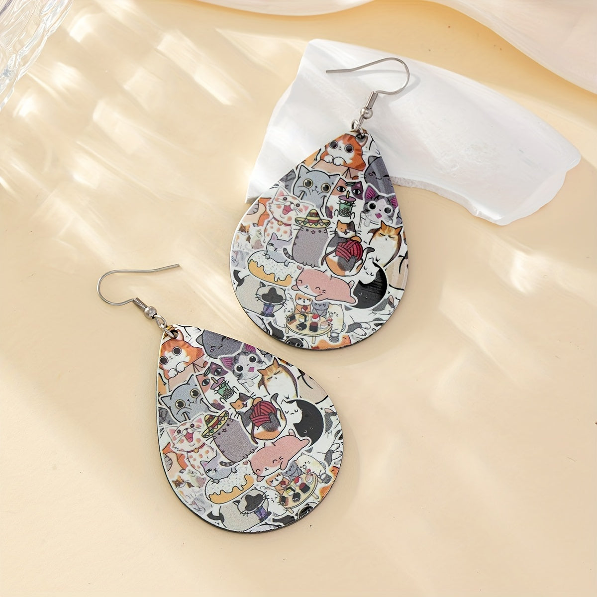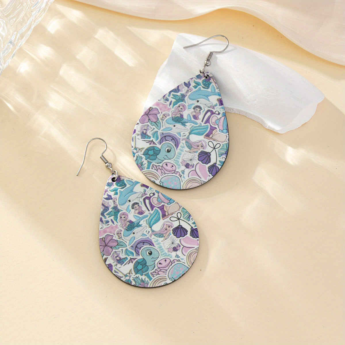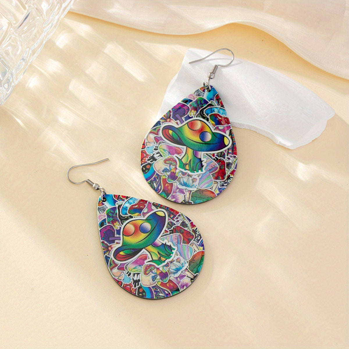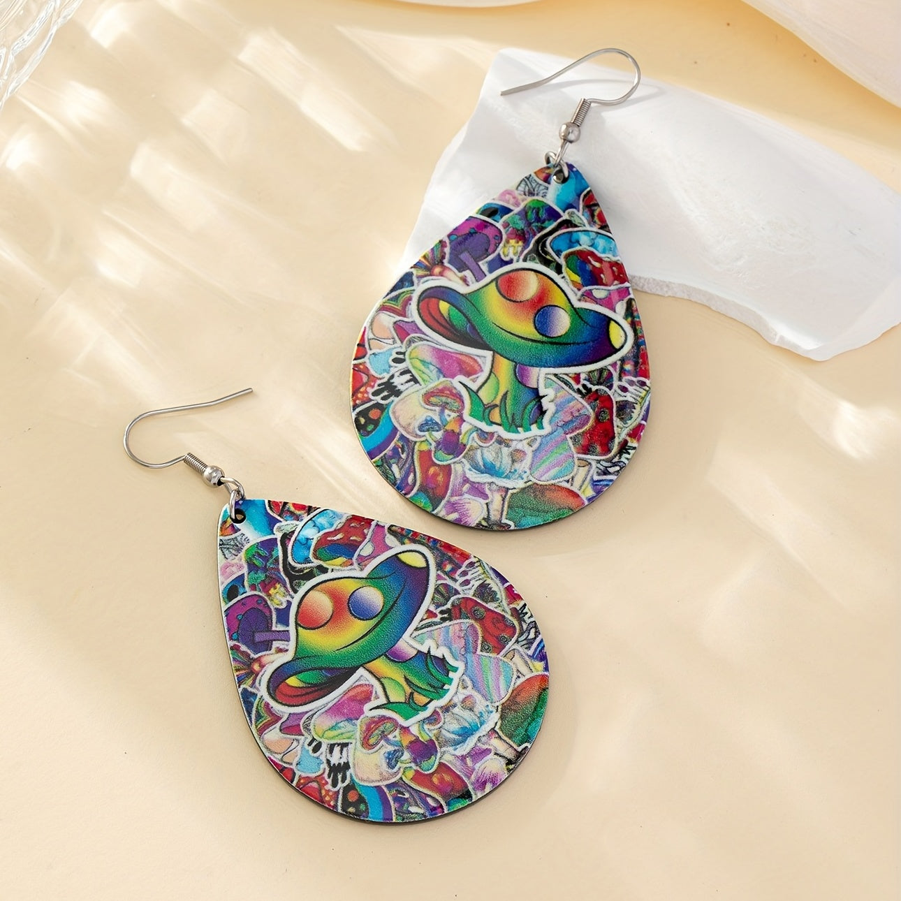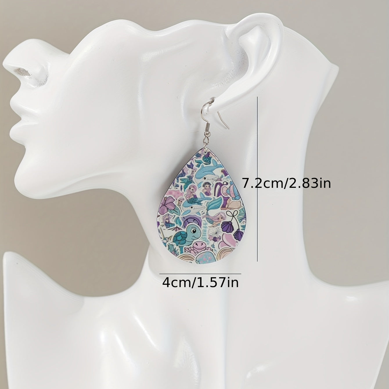 Adorable and stylish dangle earrings featuring cat, mushroom, and ocean animal patterns made of acrylic. Perfect gift for females who love unique jewelry pieces.