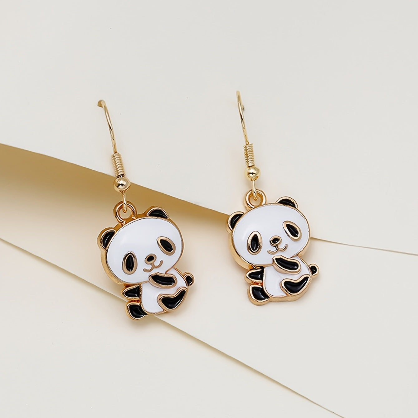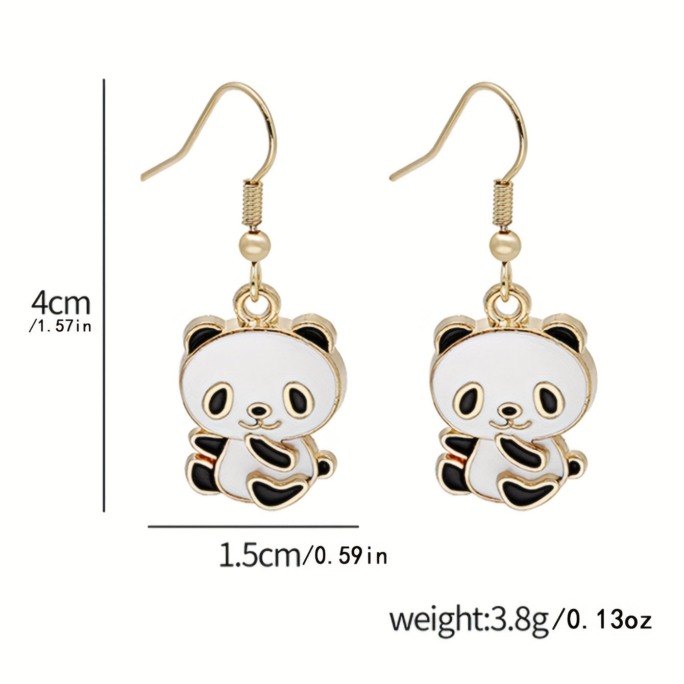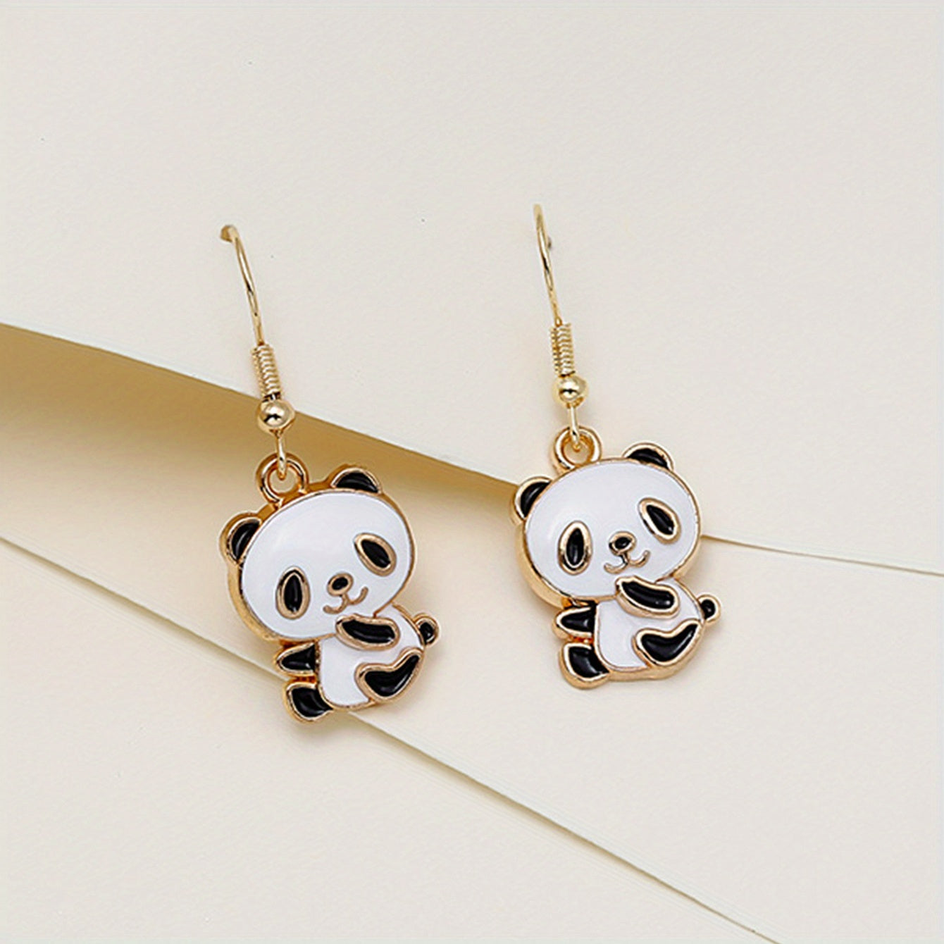 Chinese Panda Pendant Enamel Hook Earrings Silver Plated Jewelry