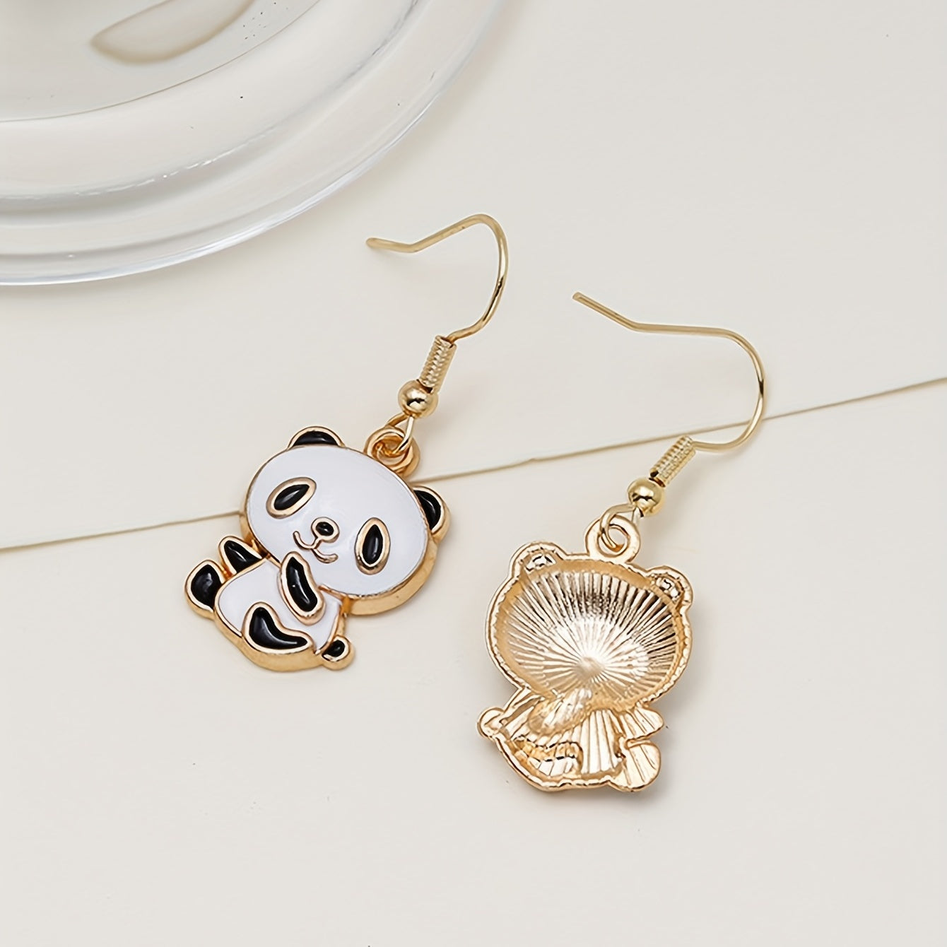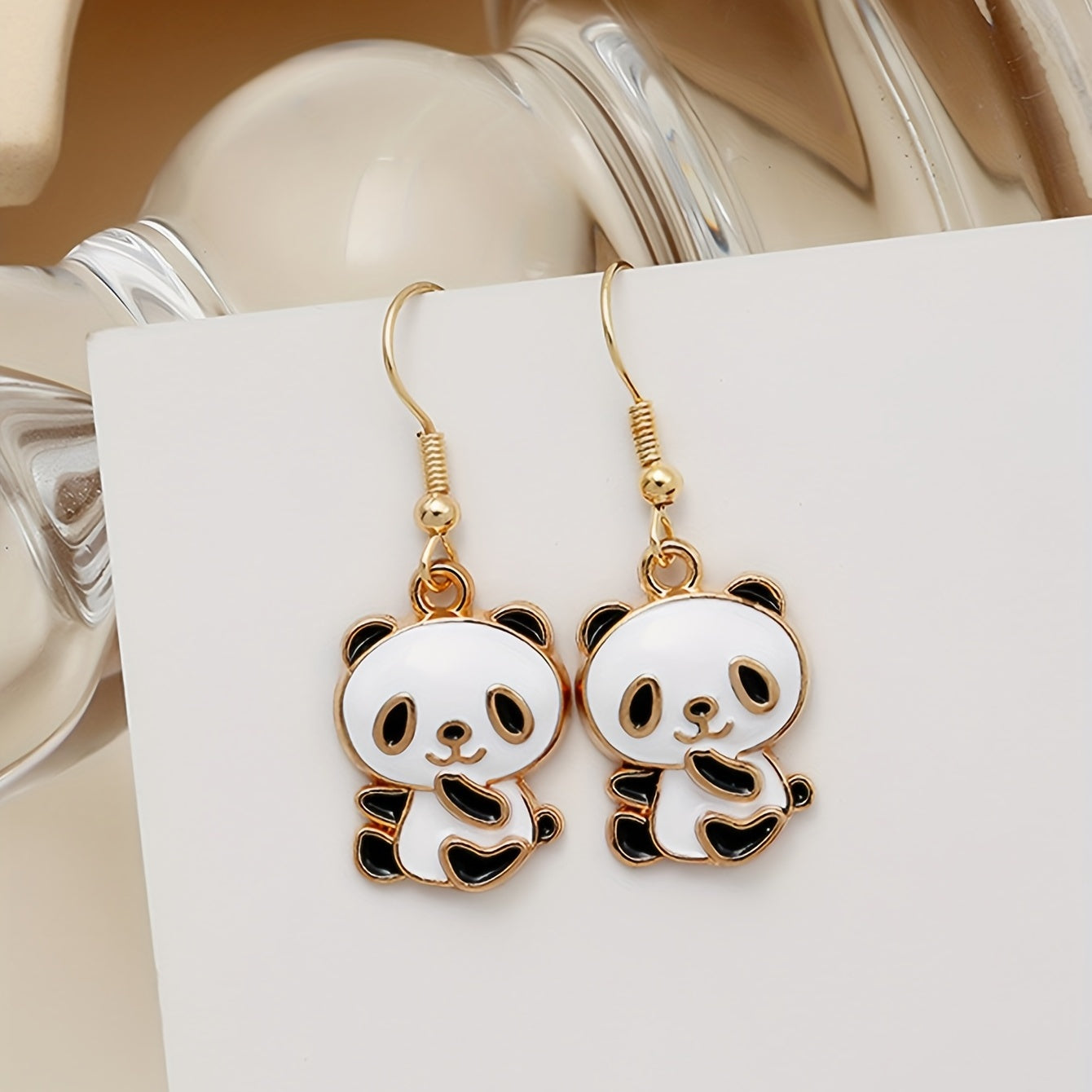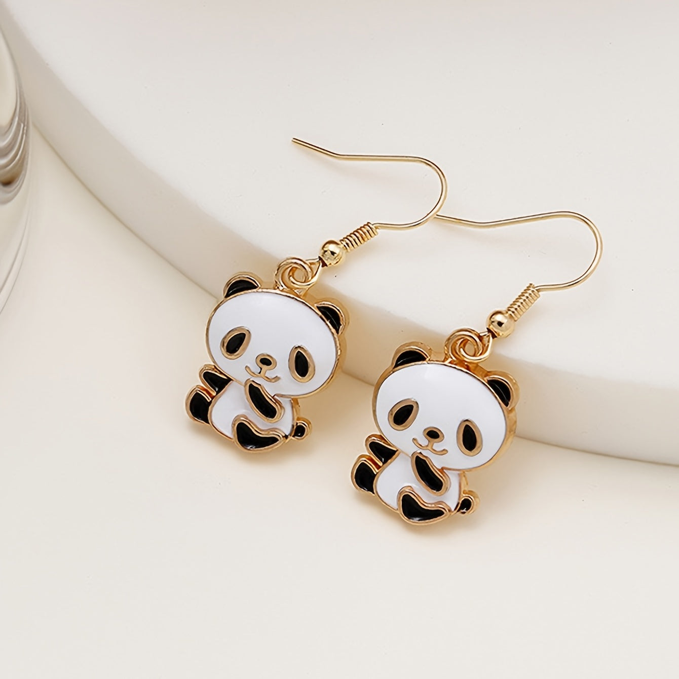 Chinese Panda Pendant Enamel Hook Earrings Silver Plated Jewelry