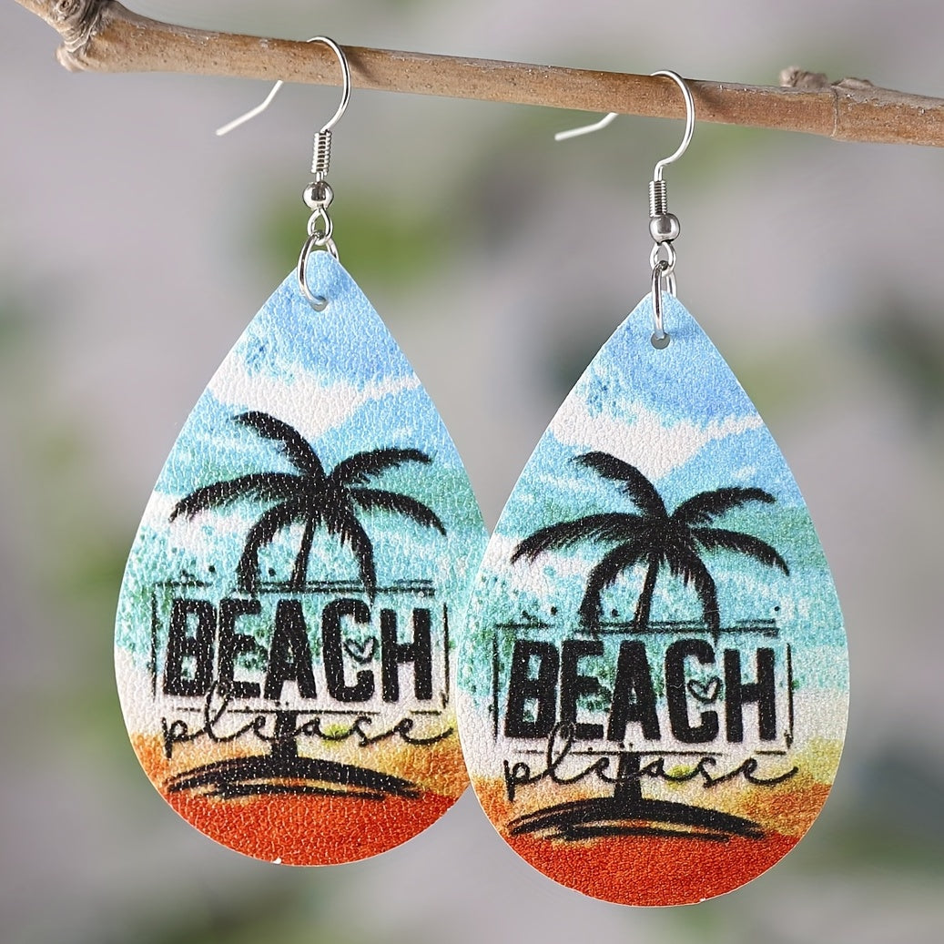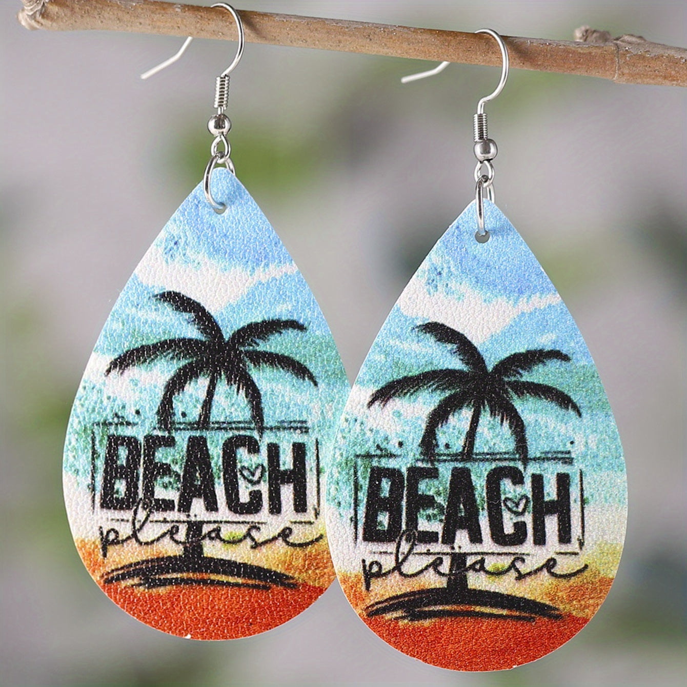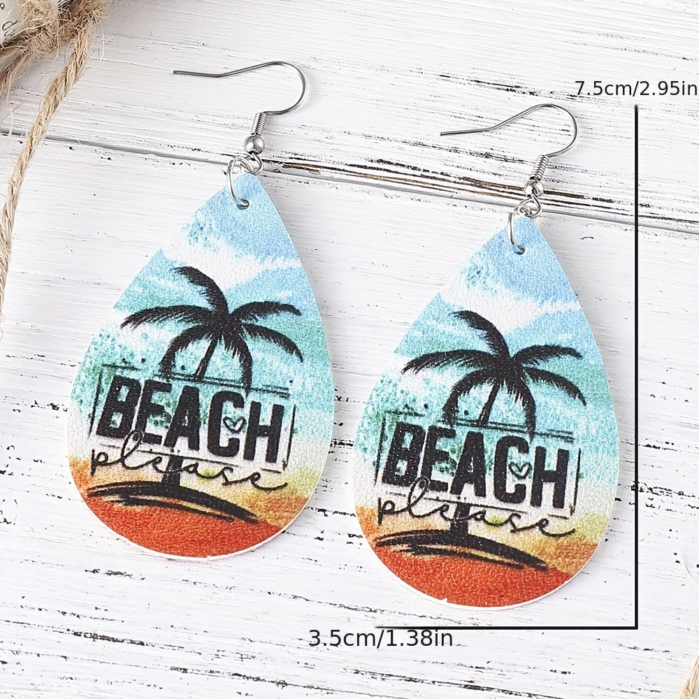 Coconut Tree Pattern Drop Hook Earrings PU Leather Ear Jewelry