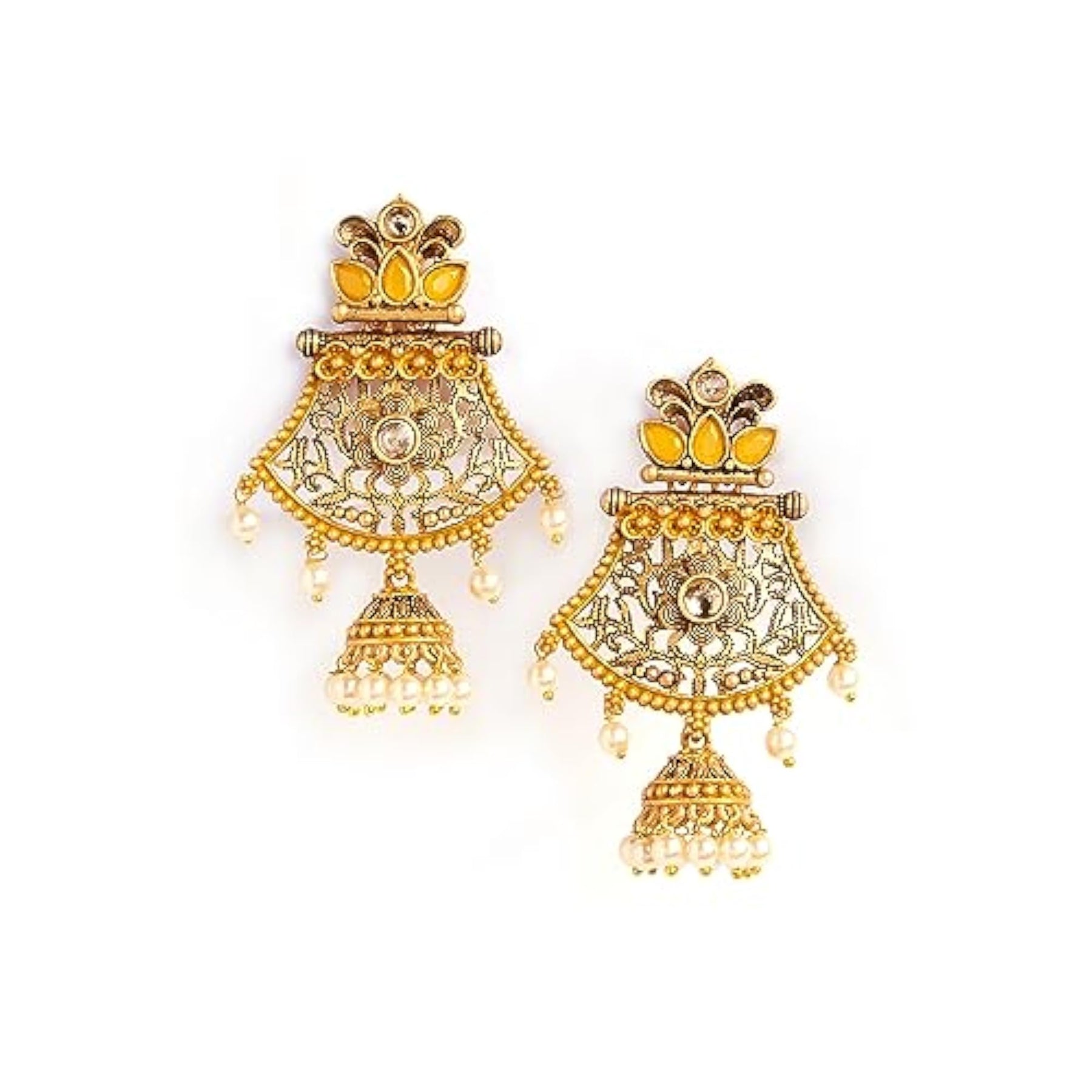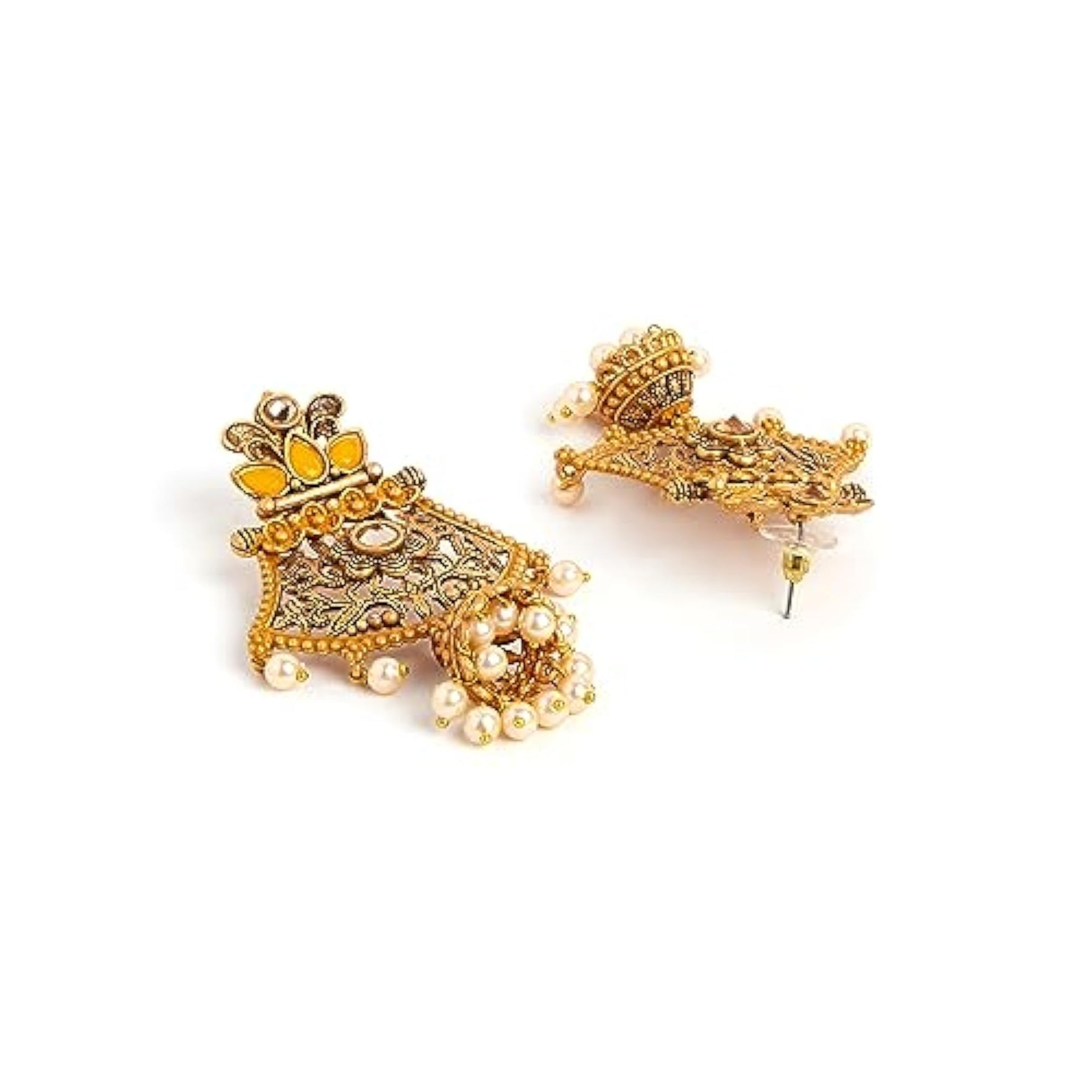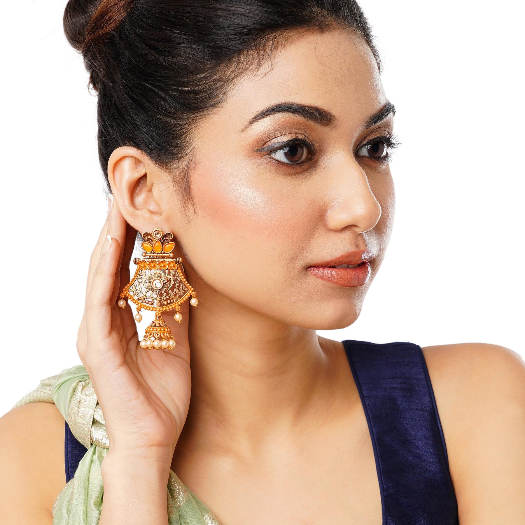 Enhance your look with these ethnic earrings inspired by cultural elegance. Intricate detailing adds a unique touch to your ensemble.