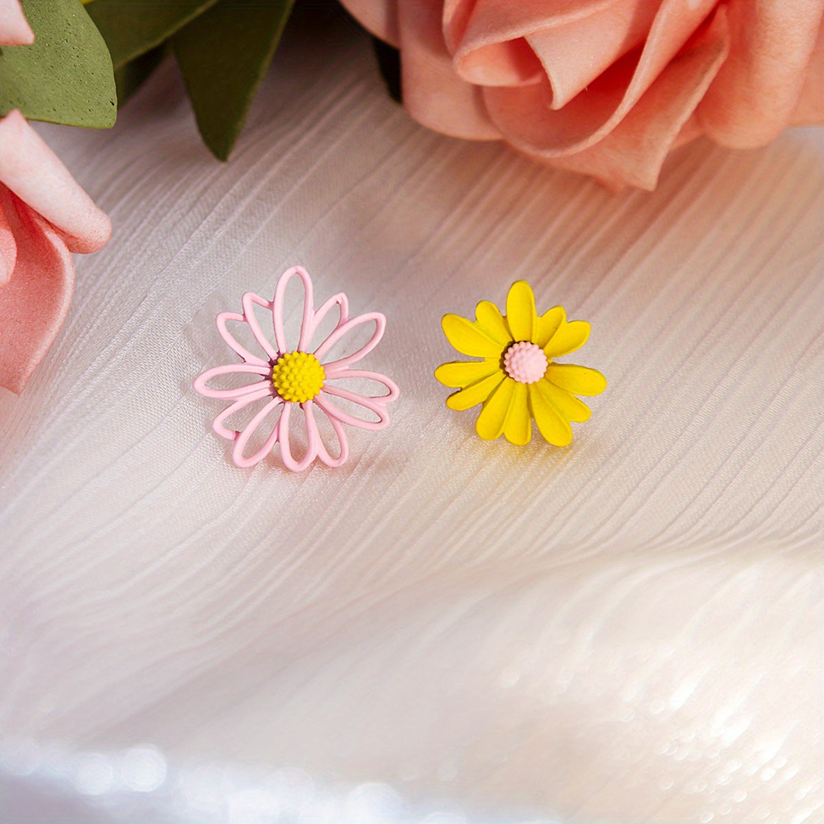 These elegant daisy floral stud earrings are crafted from high-quality alloy with a silver plated finish. Perfect as a gift for women.