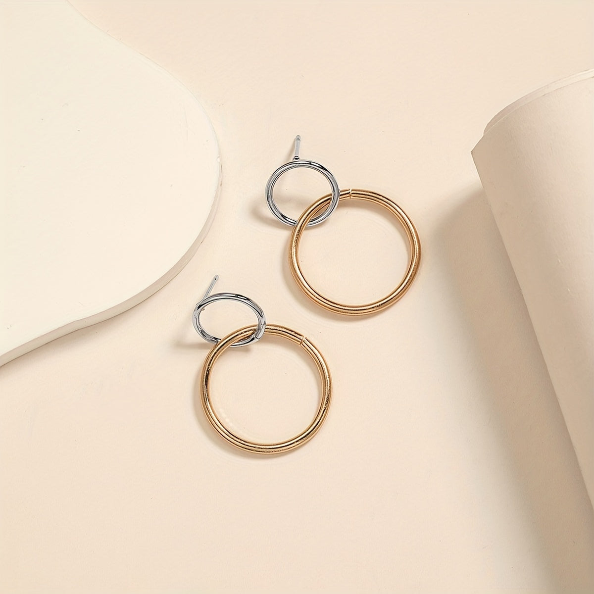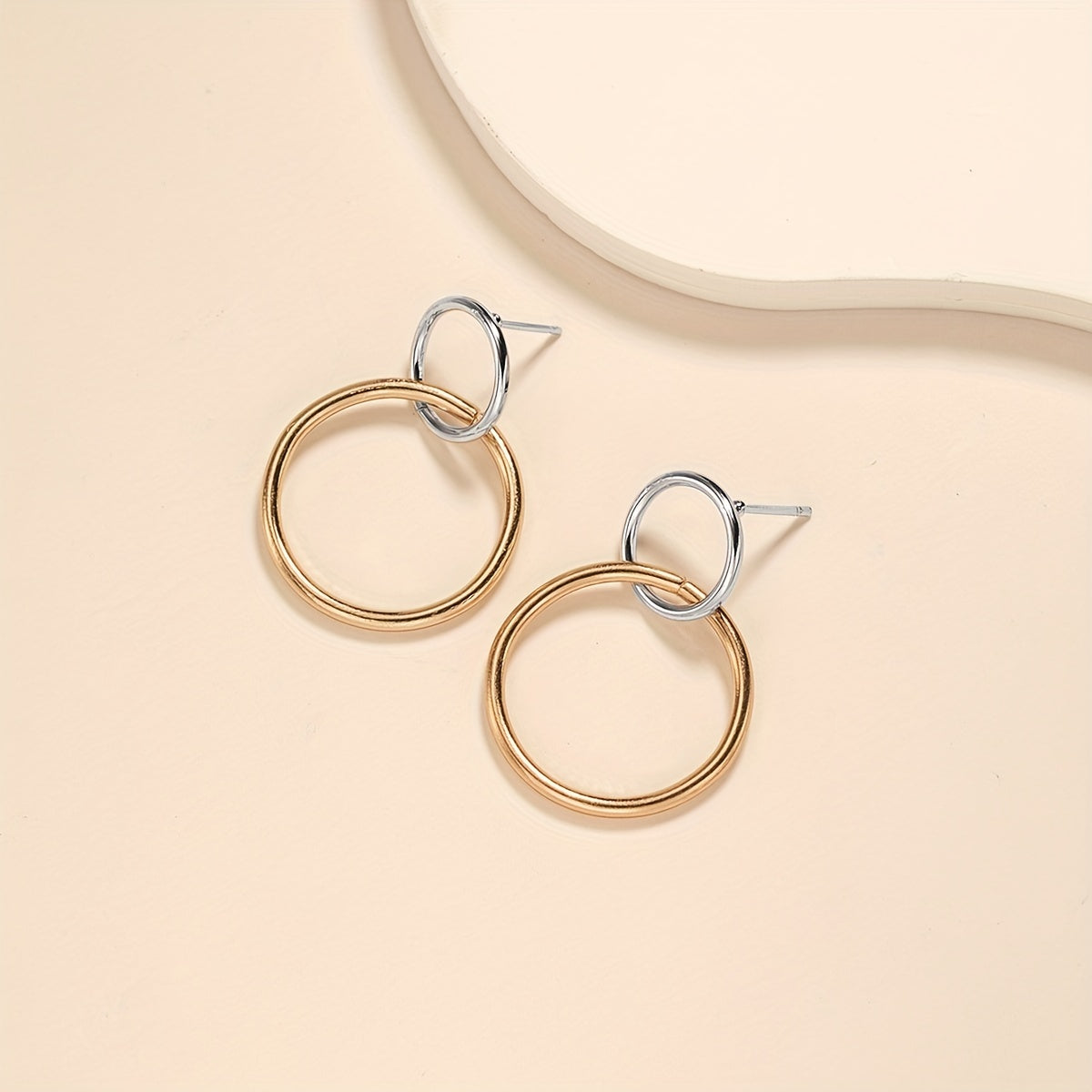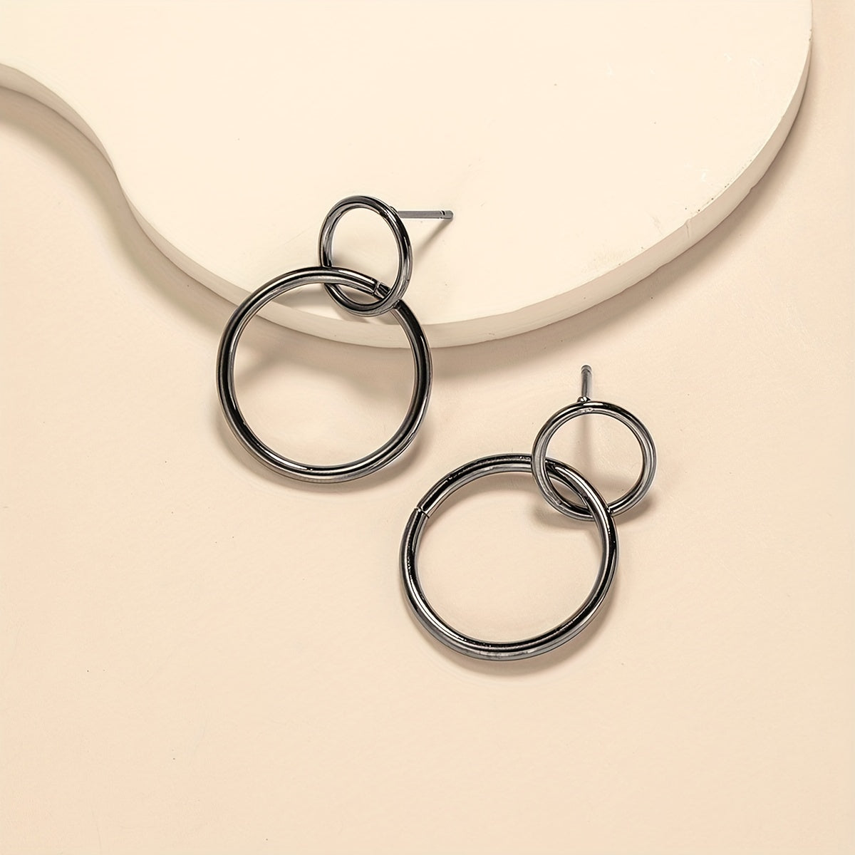 Double Circle Dangle Earrings Minimalist Style Jewelry Gift