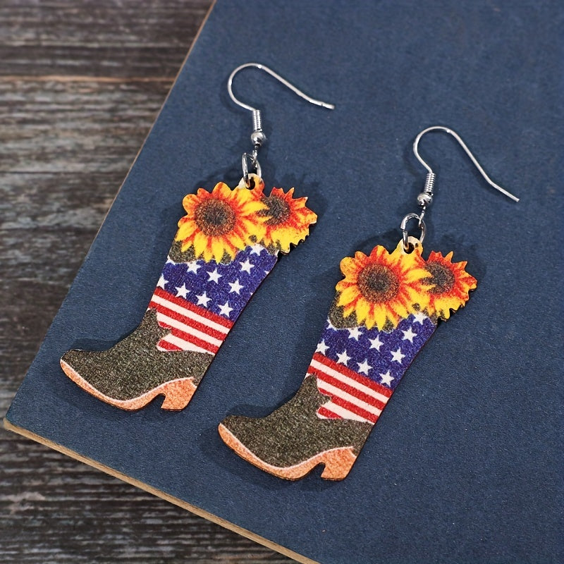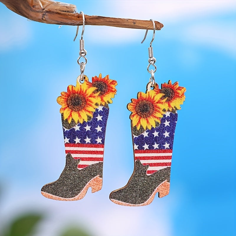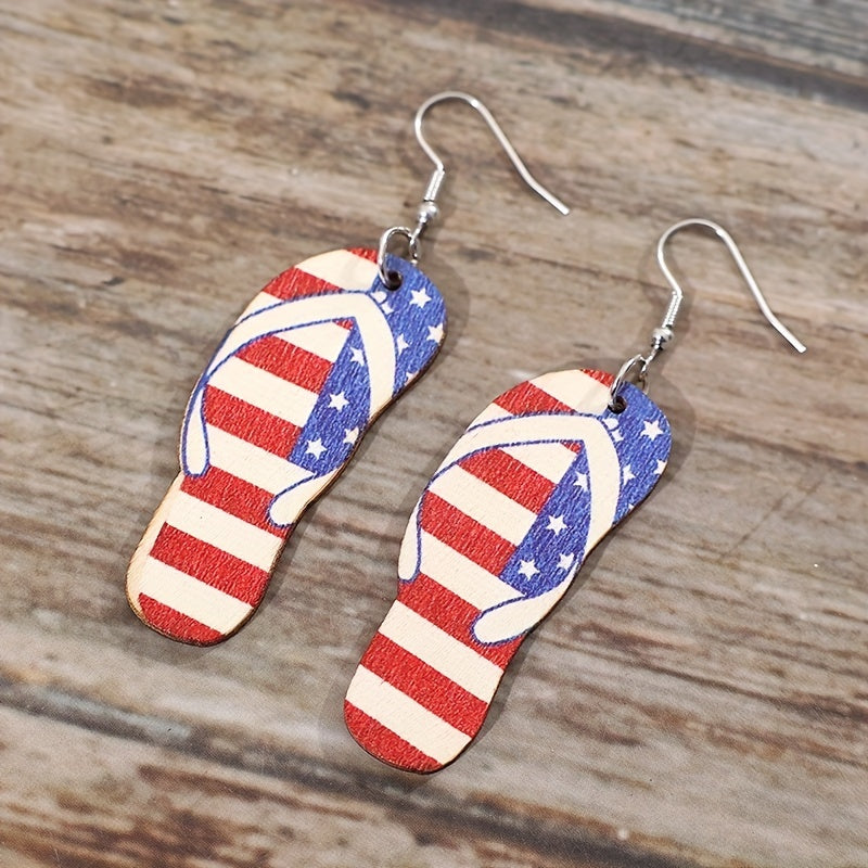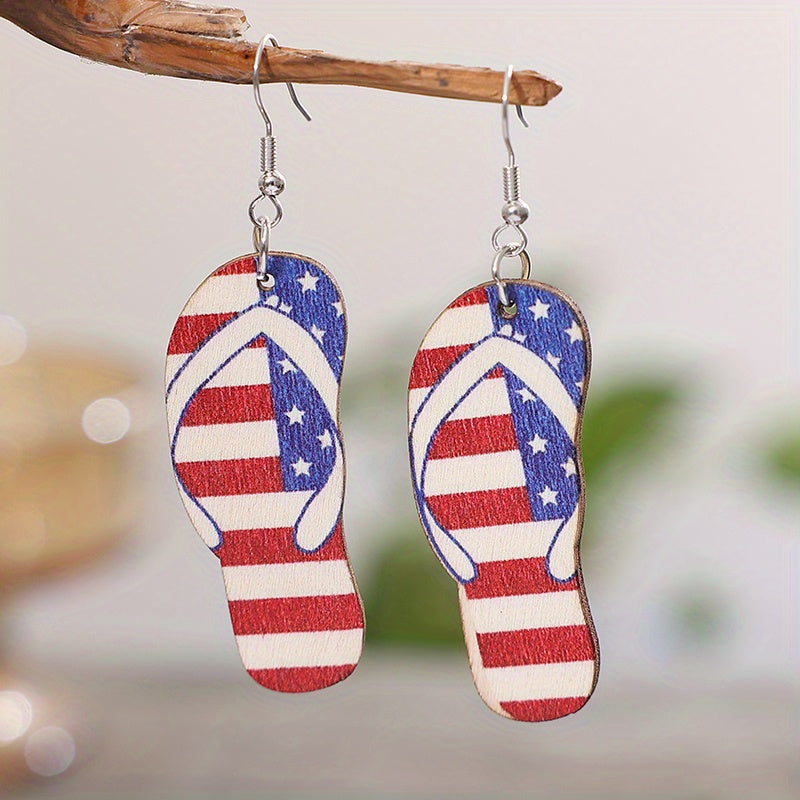 Add a touch of retro ethnic charm to your look with these wooden dangle earrings featuring red stripes and star patterns. Perfect as a gift for women who appreciate unique jewelry.