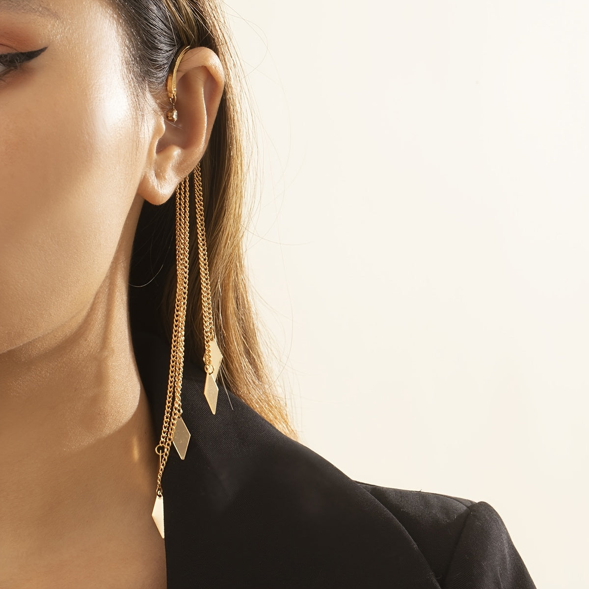 Unique and stylish ear cuffs with rivet tassel design, perfect for women and girls who want to make a statement with their jewelry. These non-pierced ear cuffs are a fine addition to any jewelry collection.