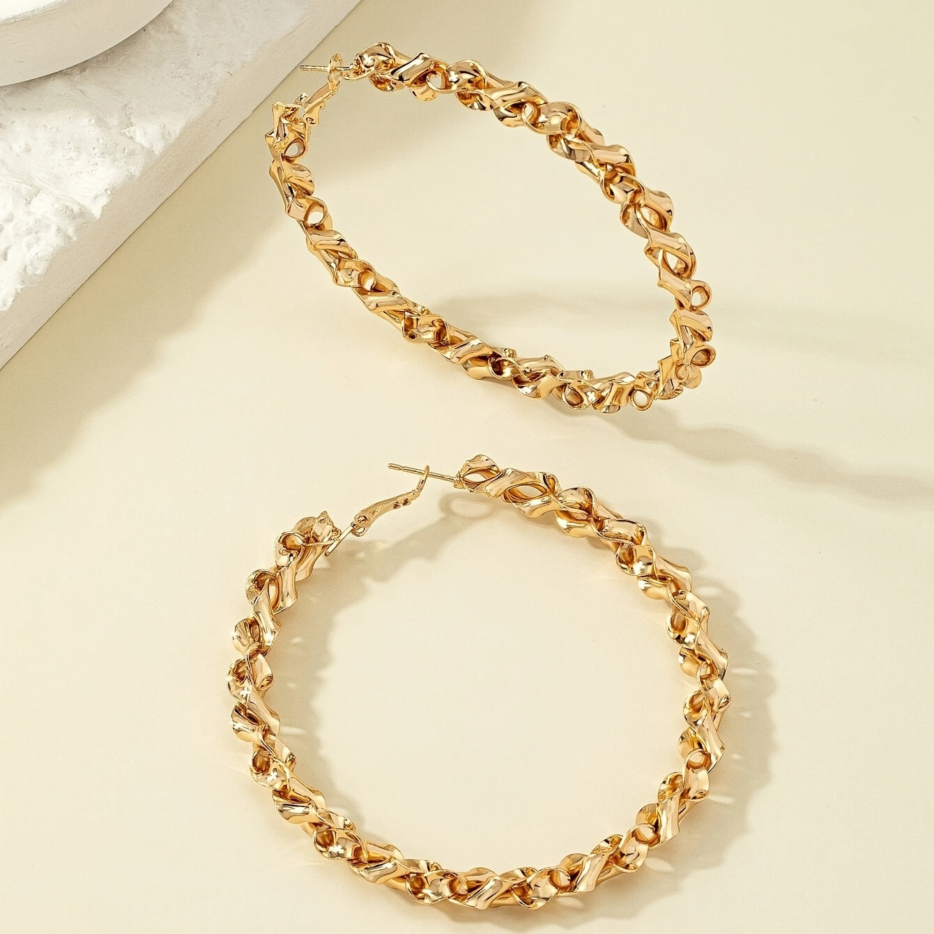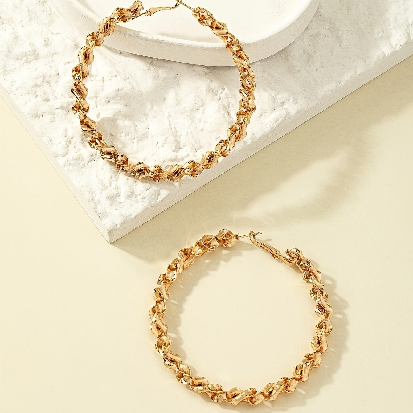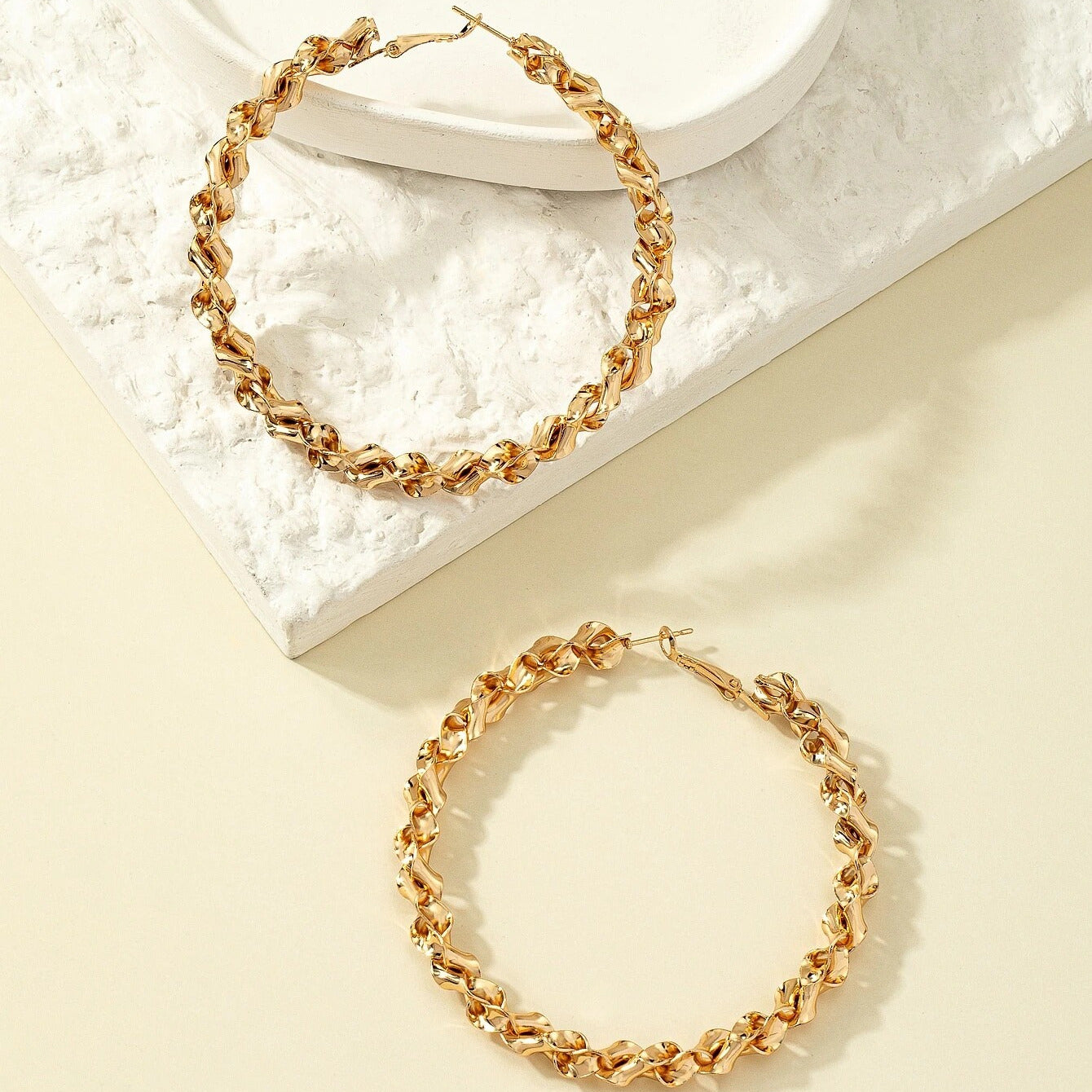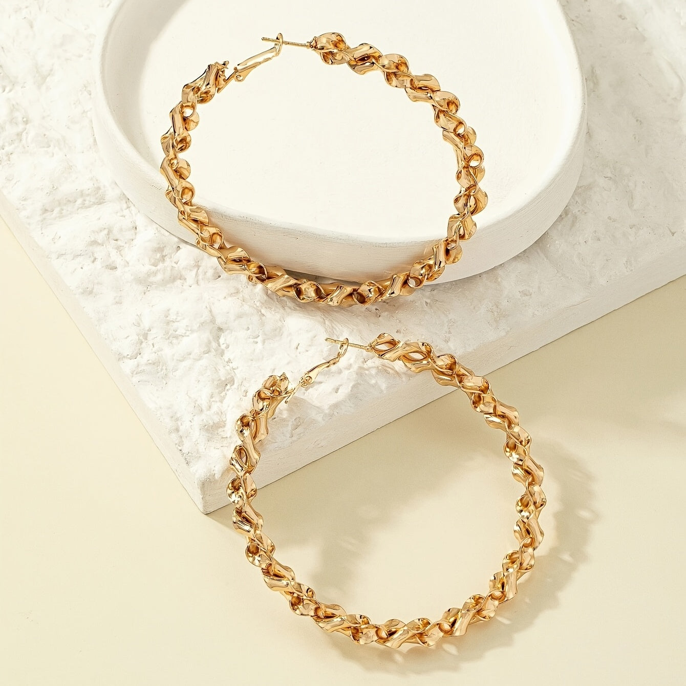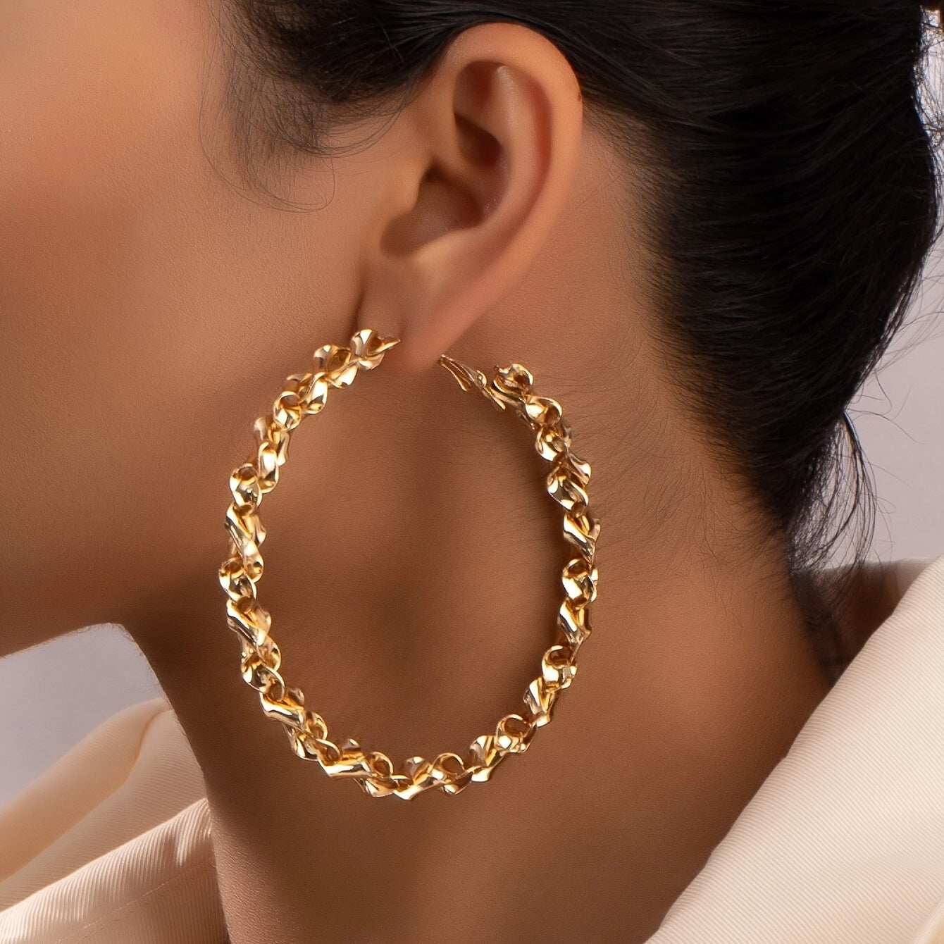 Make a bold statement with these stunning spiral hoop earrings plated in 18K gold. Perfect for women who love big, eye-catching jewelry.