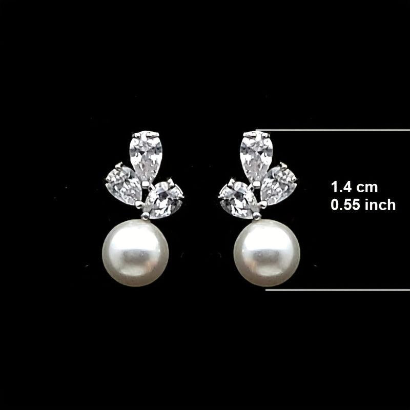 Faux Pearl Zircon Stud Earrings Retro Style Silver Plated Wedding Jewelry