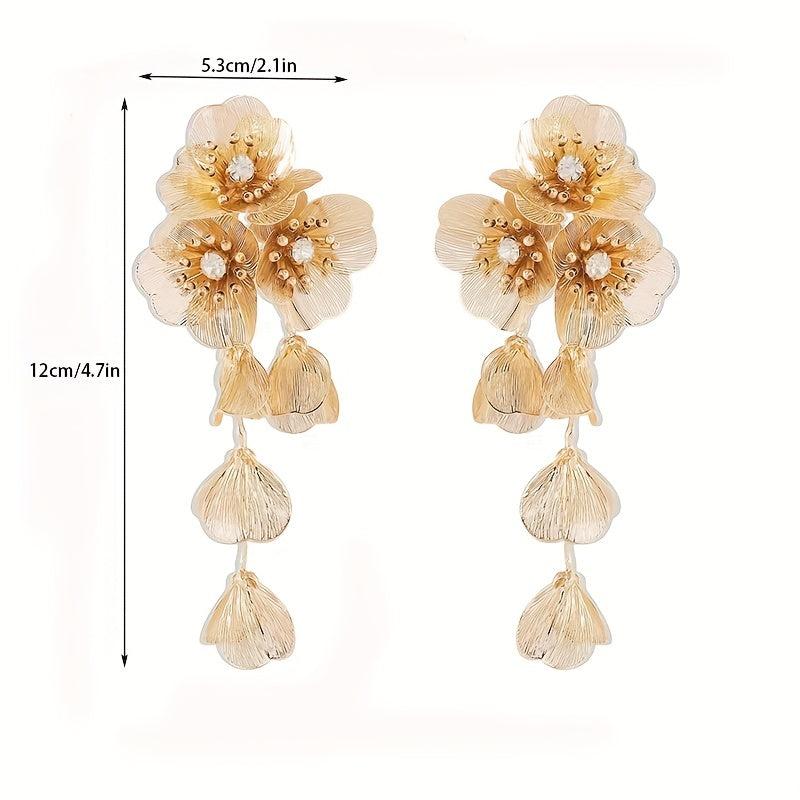 These stunning copper dangle earrings feature a flower pendant with rhinestone decor. A perfect gift for females who appreciate elegant jewelry.