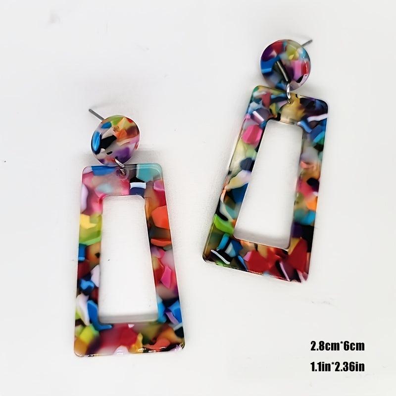 Add a pop of color to your look with these vibrant geometric ladder shape earrings. Perfect for women and girls who love bold accessories.