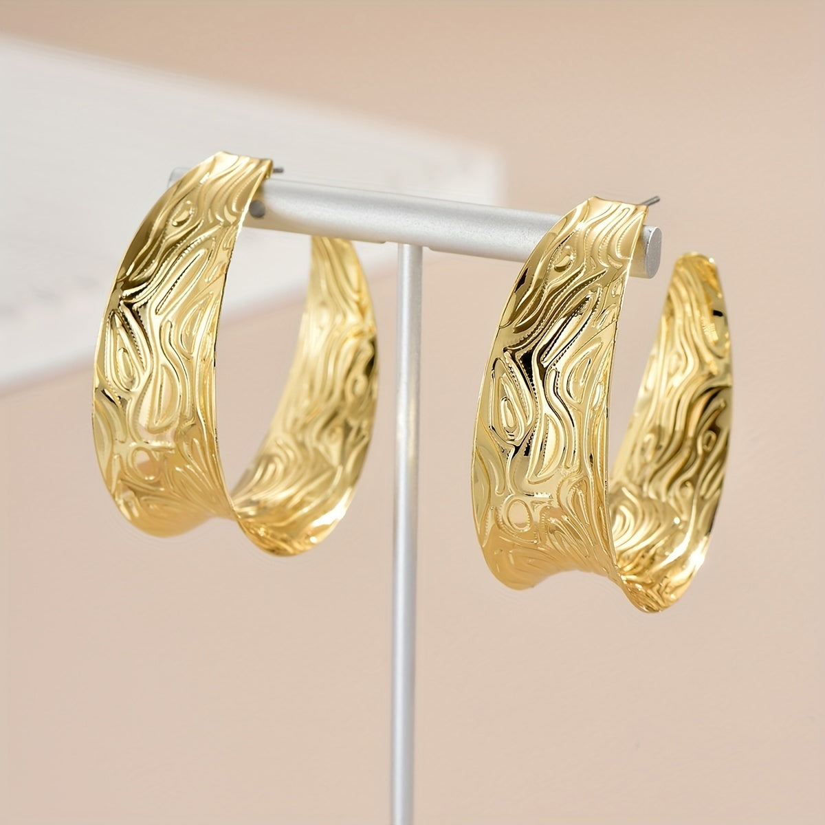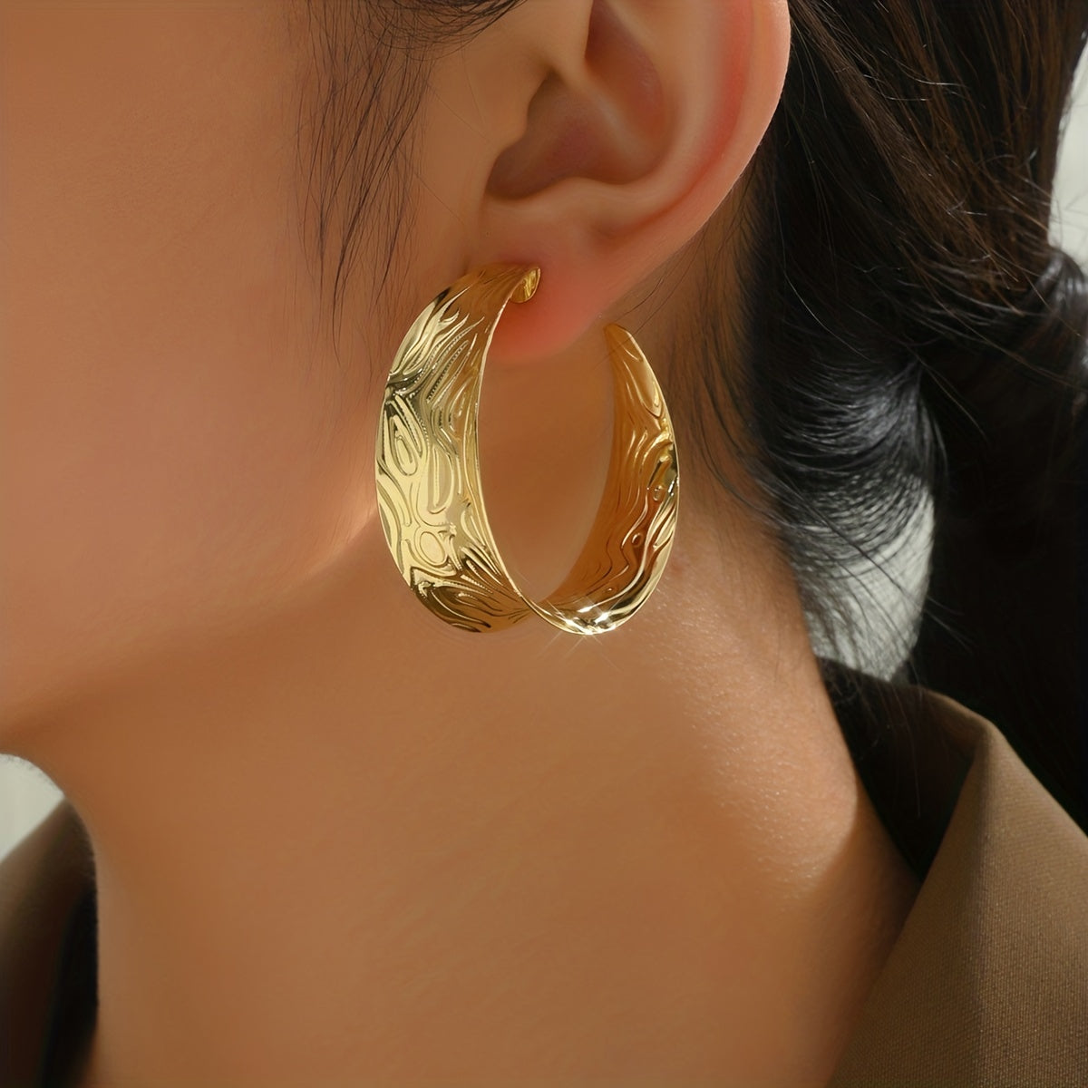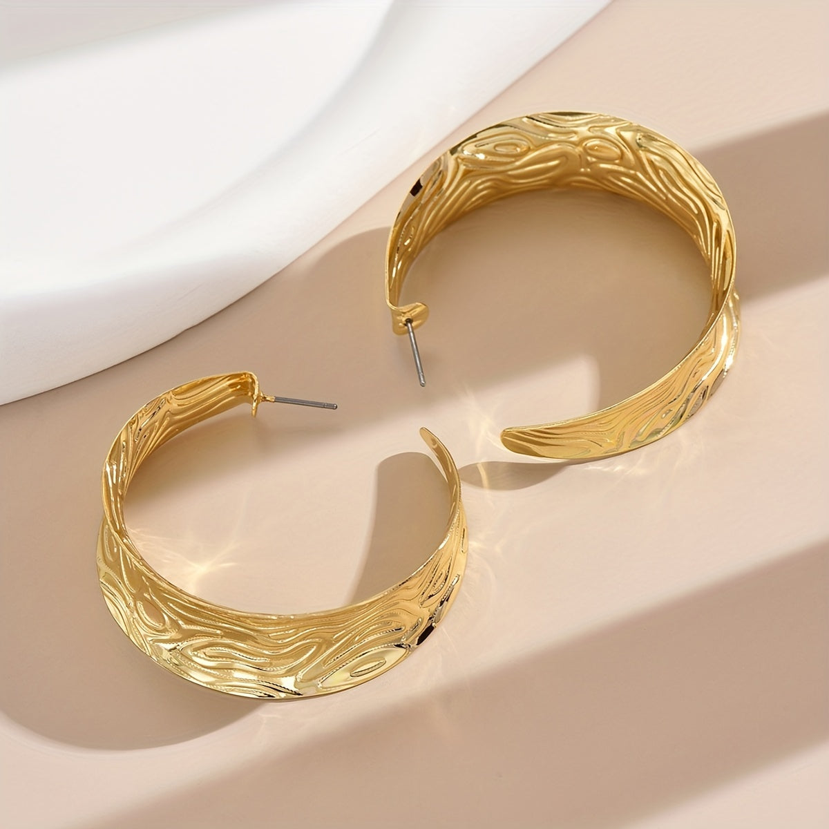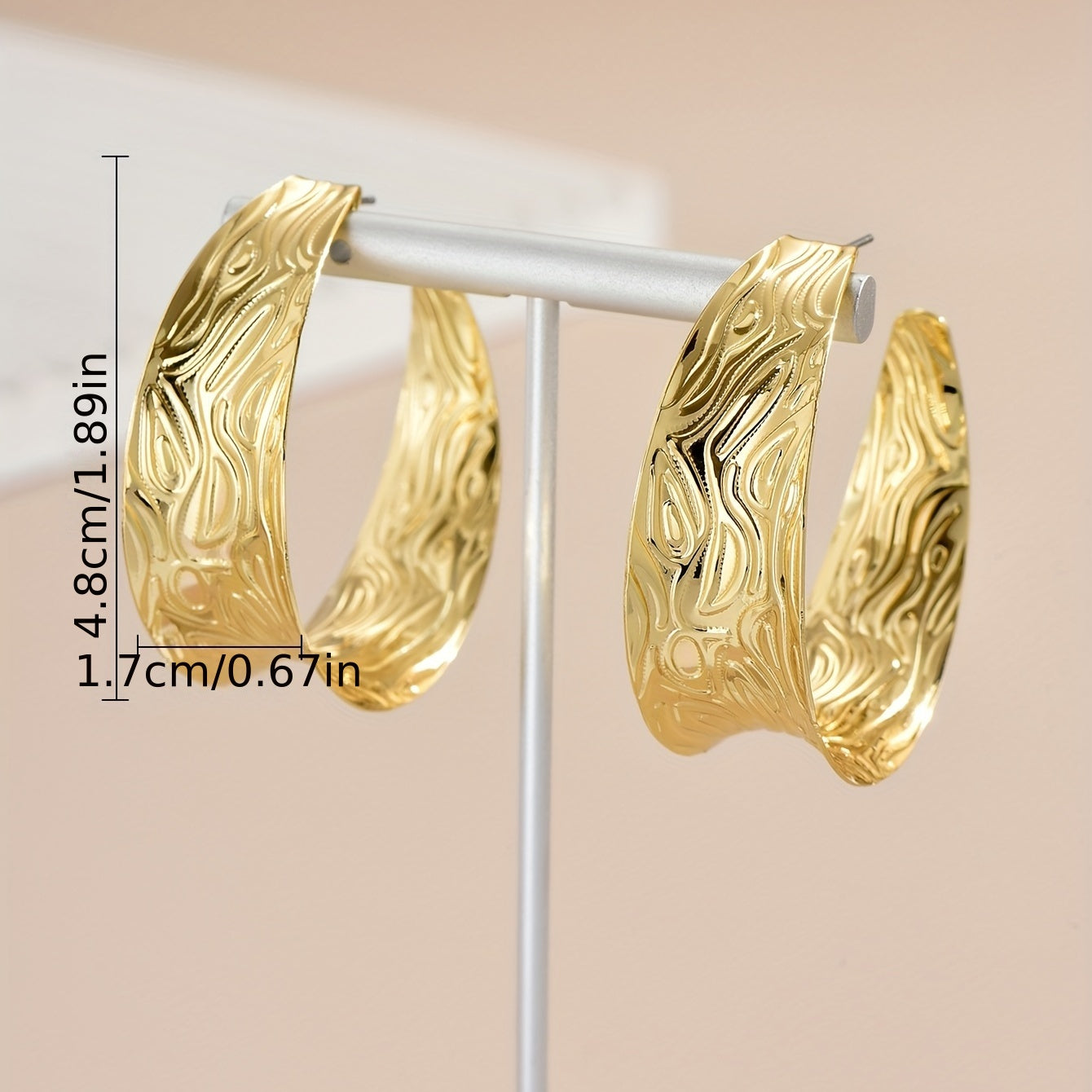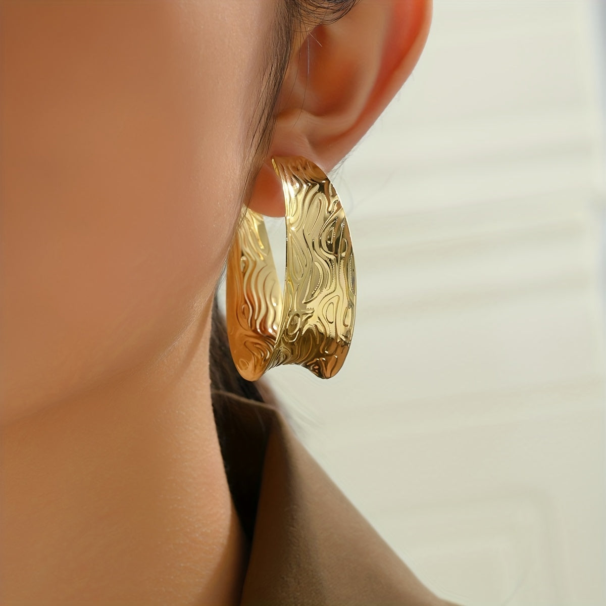 These hoop earrings feature a delicate carved pattern design, crafted from zinc alloy and plated with 14K gold. They make a perfect gift for a female friend or loved one.
