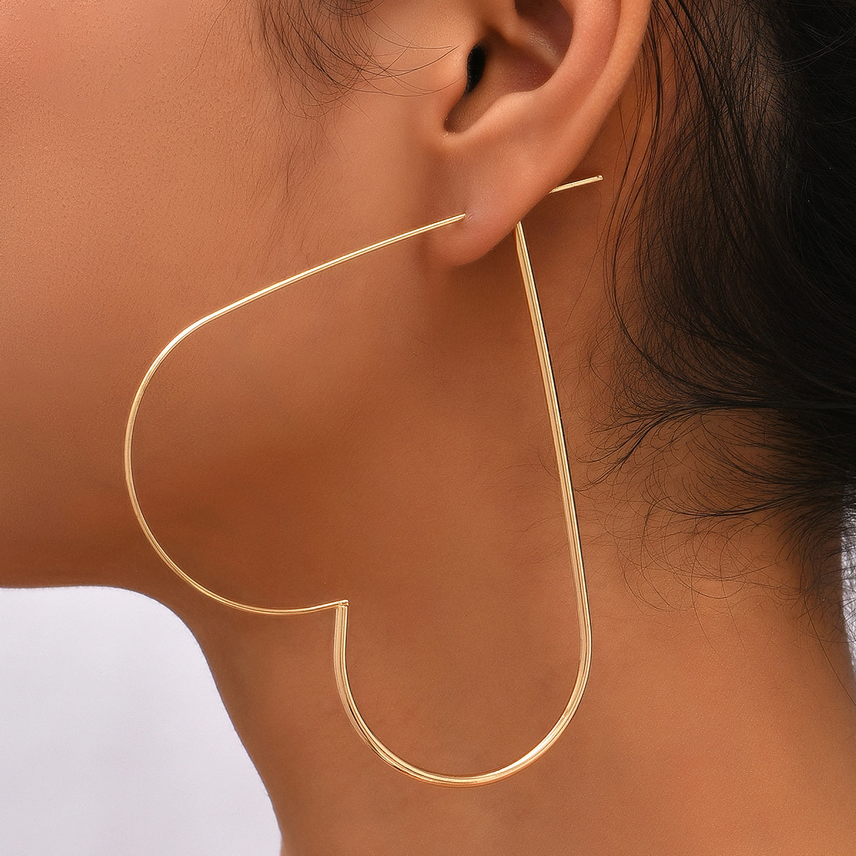 These exquisite golden hoop earrings feature an exaggerated heart shape design, making them a perfect romantic jewelry gift for your girlfriend or any special woman in your life.