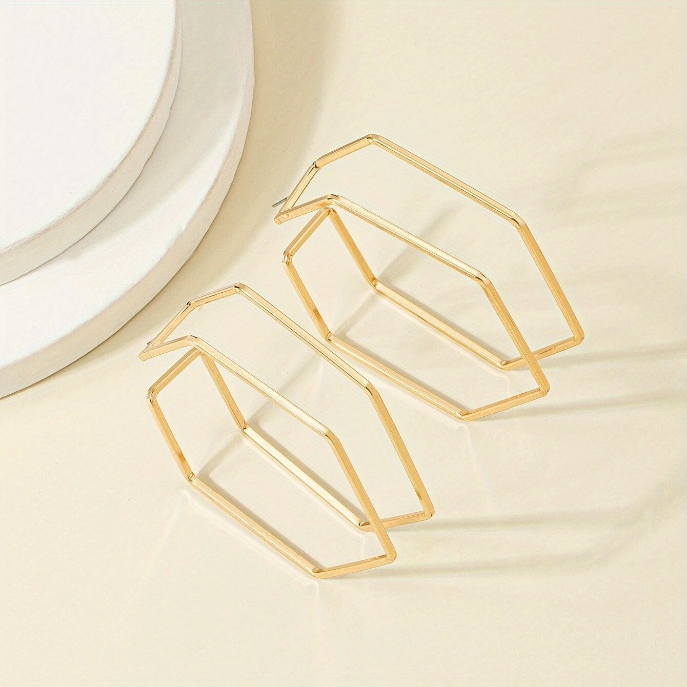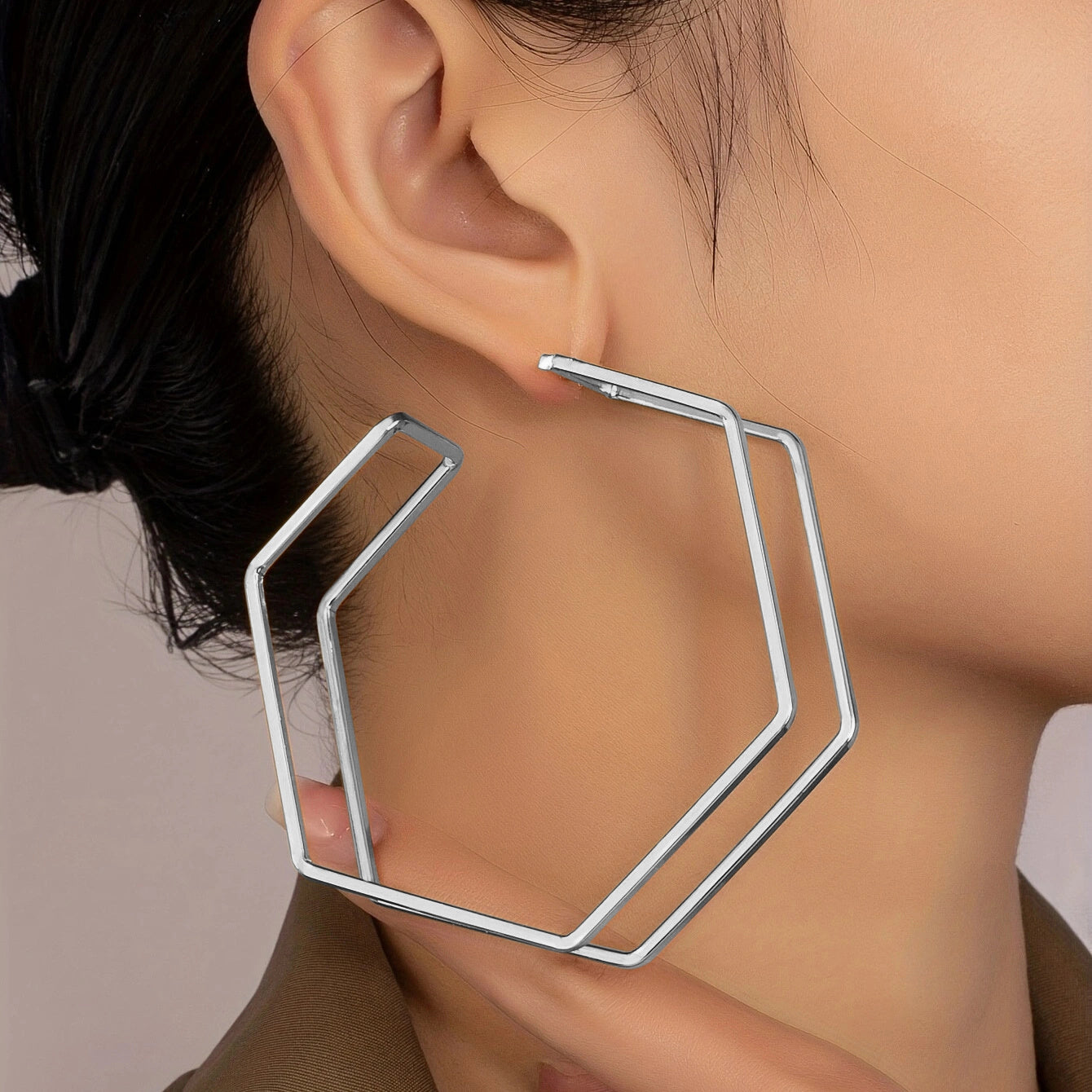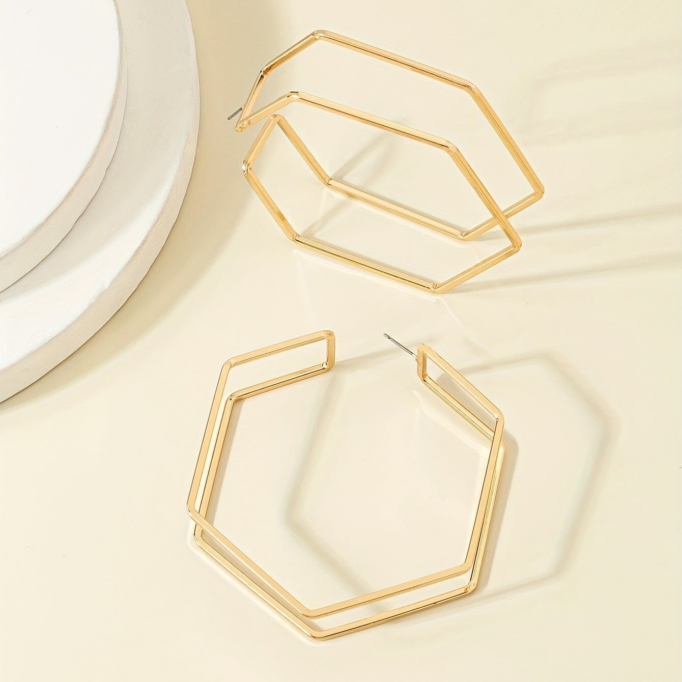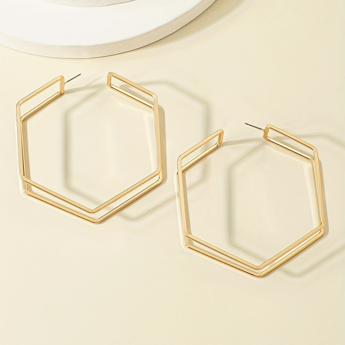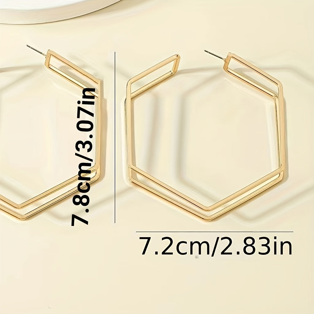 These unique hoop earrings feature a hollow hexagon design in a striking golden color. They make a bold fashion statement and are the perfect gift for someone who loves bold and trendy jewelry.