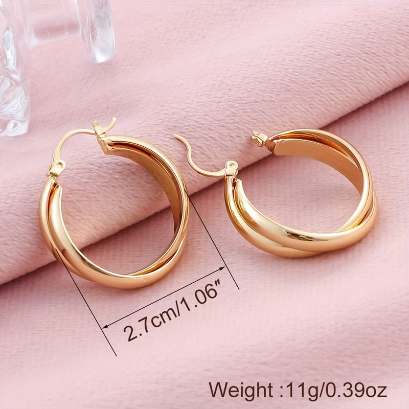 These elegant hoop earrings are crafted from copper with a 14K gold plating. They make a perfect gift for women and girls who appreciate minimalist style jewelry.