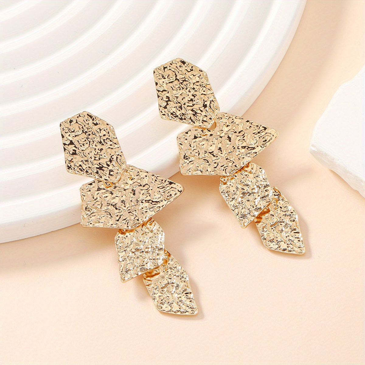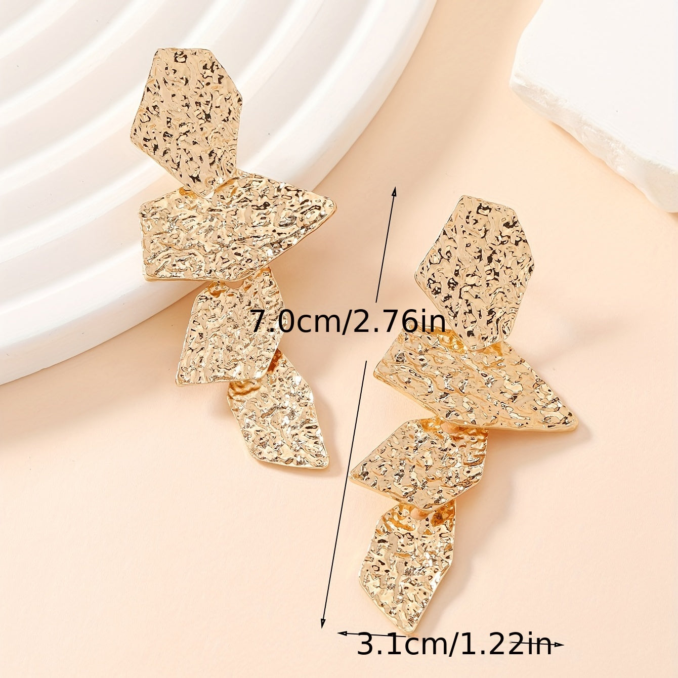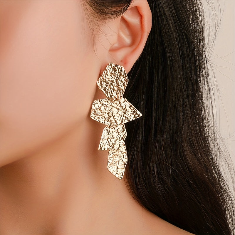 Add a touch of elegance to your daily look with these golden pleated long dangle earrings. Made from zinc alloy, these earrings are great for daily wear and will complement any outfit.