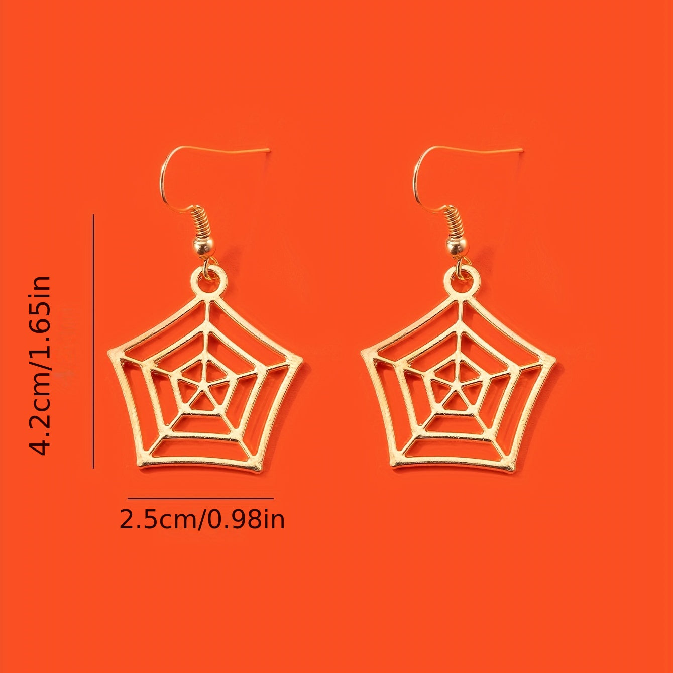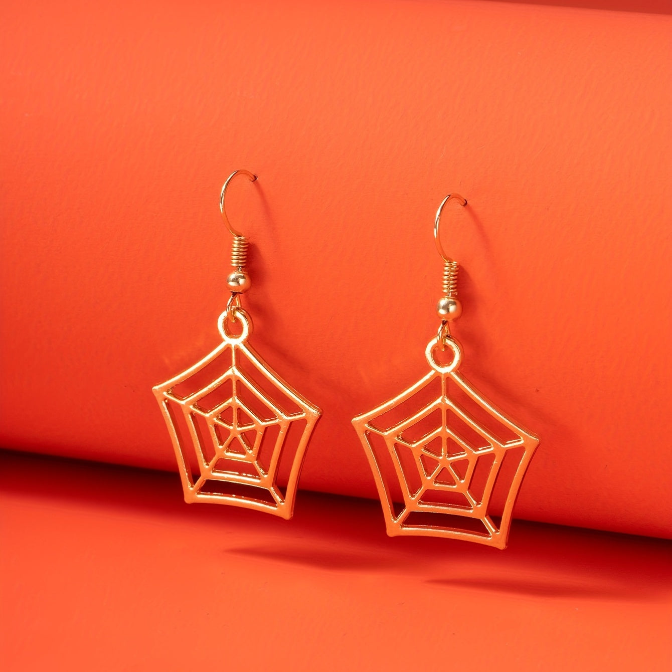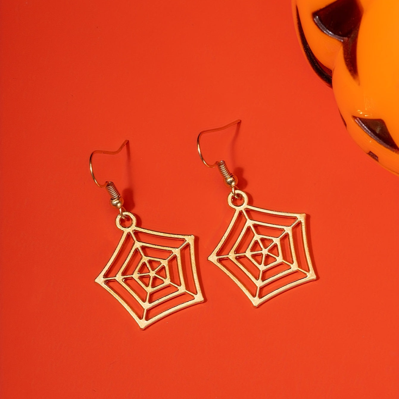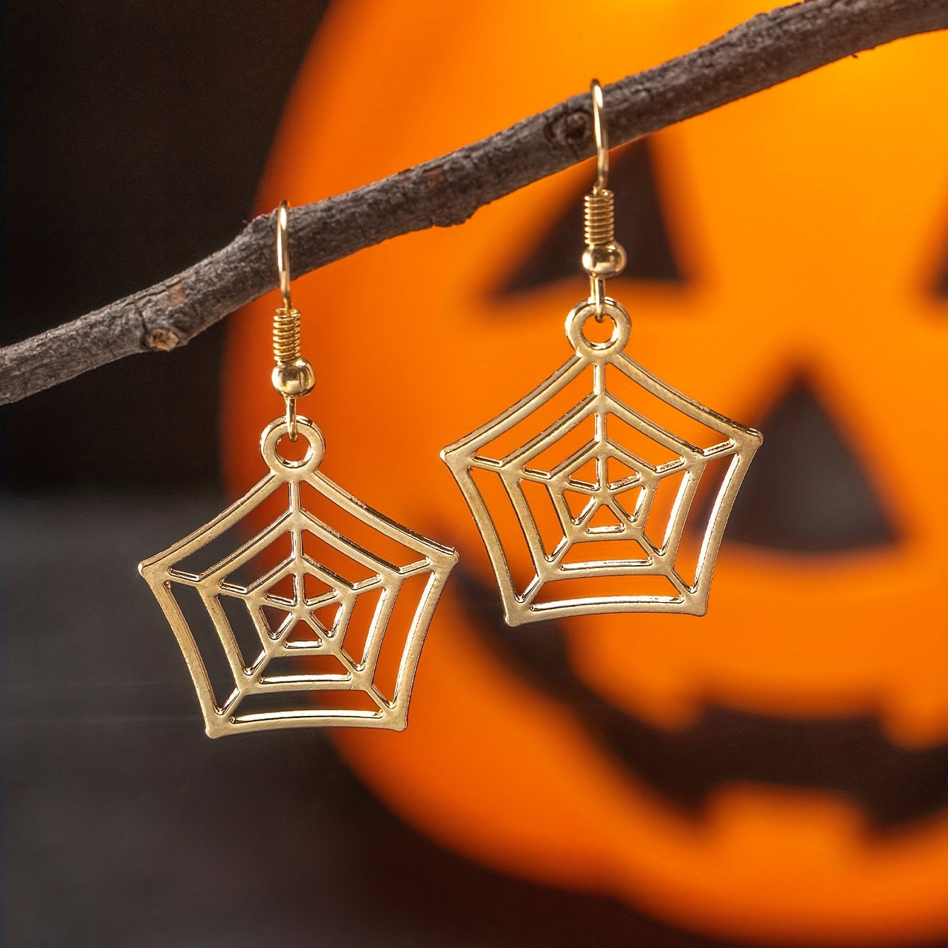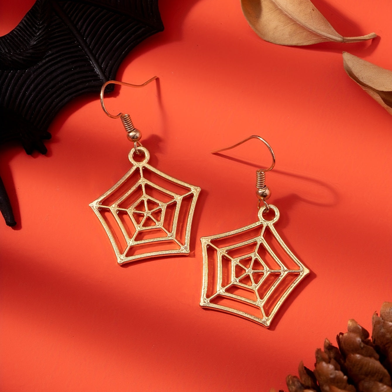 Add a touch of gothic charm to your look with these hollow golden spider web dangle earrings. Perfect for Halloween or everyday wear.