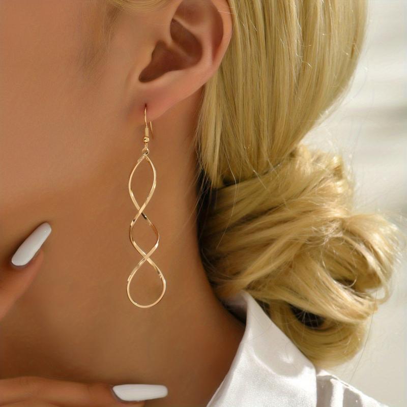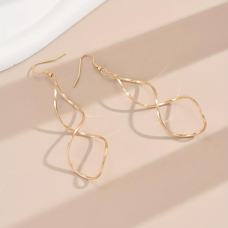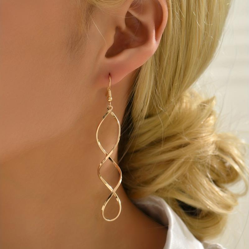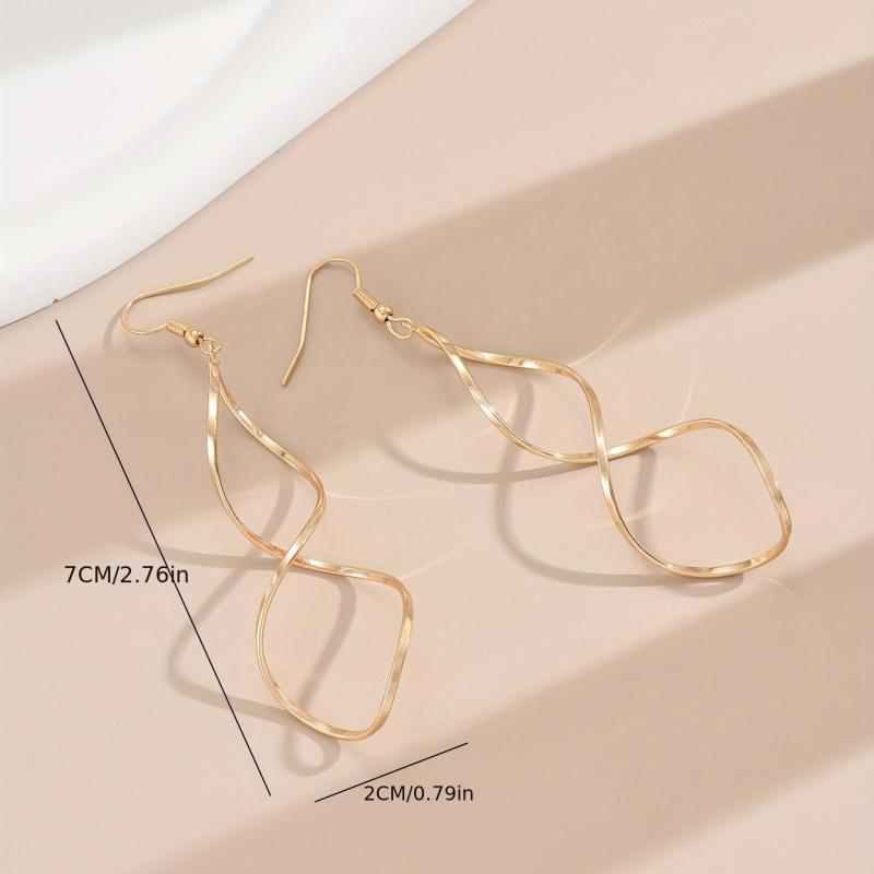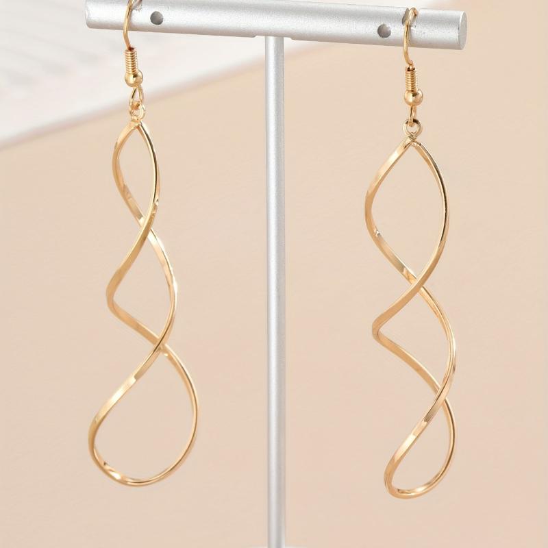 These elegant dangle earrings feature a golden spiral design in a minimalist style. Made of high-quality alloy, they make a delicate gift for women and girls.