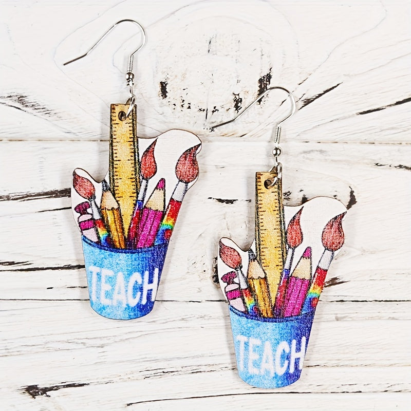 Graduation Season Ruler Crayon Holder Book Dangle Earrings
