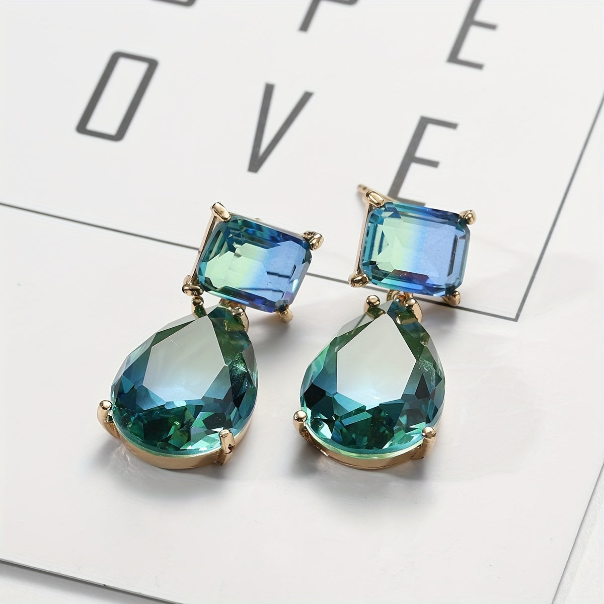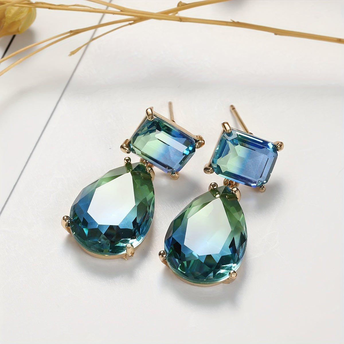 Add a touch of elegance to your look with these gradient green water drop earrings. Perfect for any occasion.