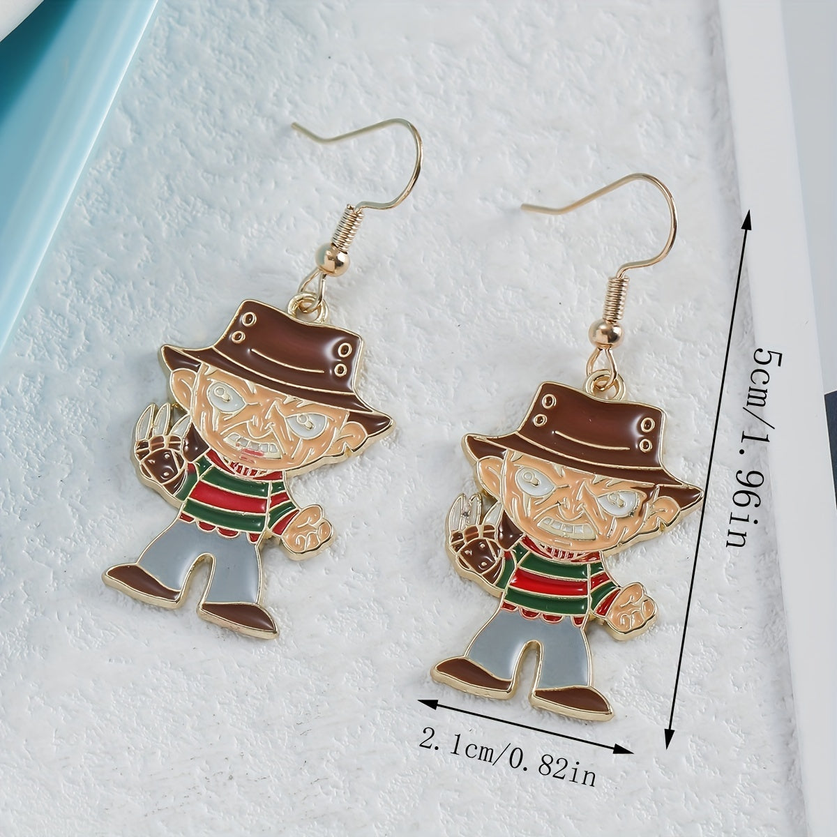 These creepy killer dangle earrings are perfect for Halloween! Made of high quality zinc alloy, they feature ghost ornaments for a spooky touch. Ideal for hip hop and goth style lovers.