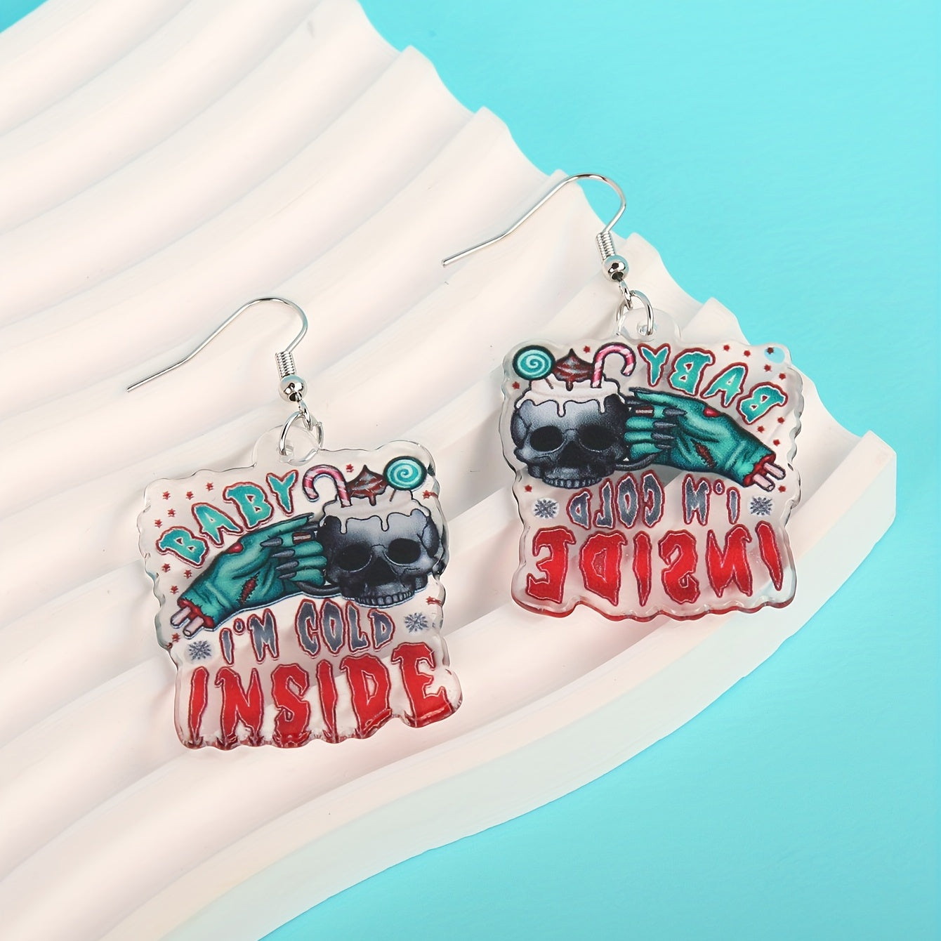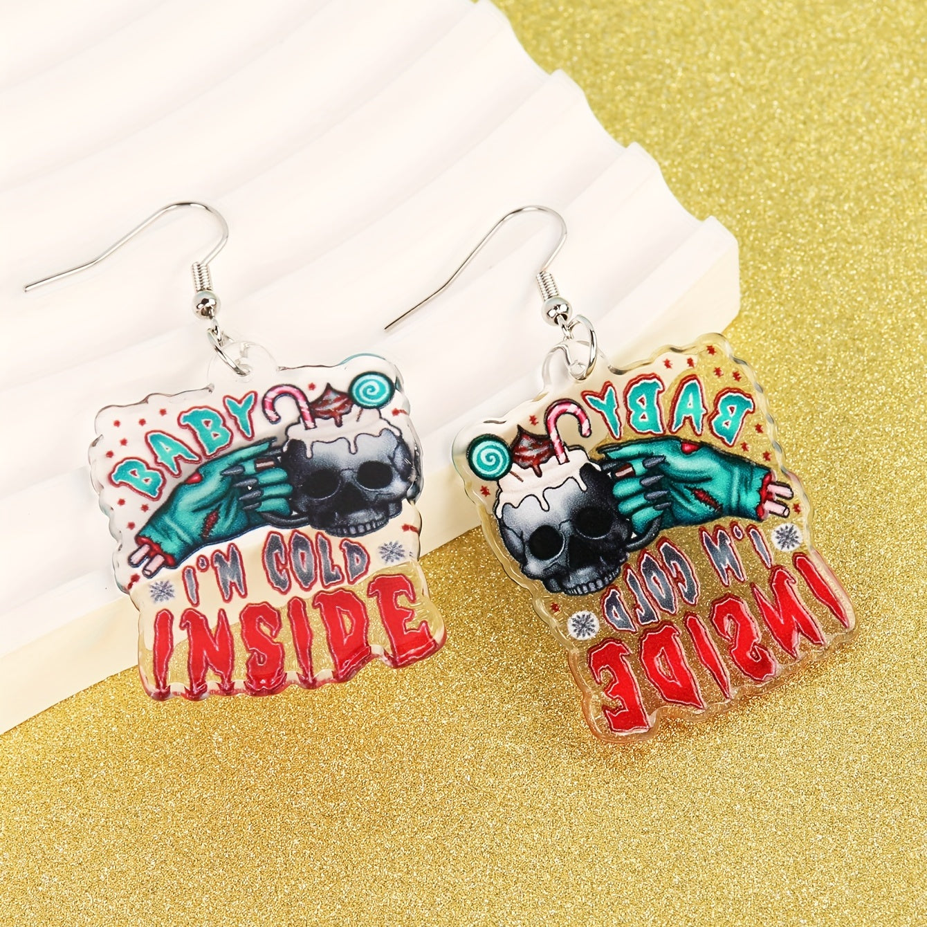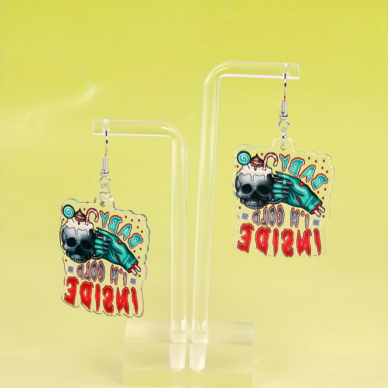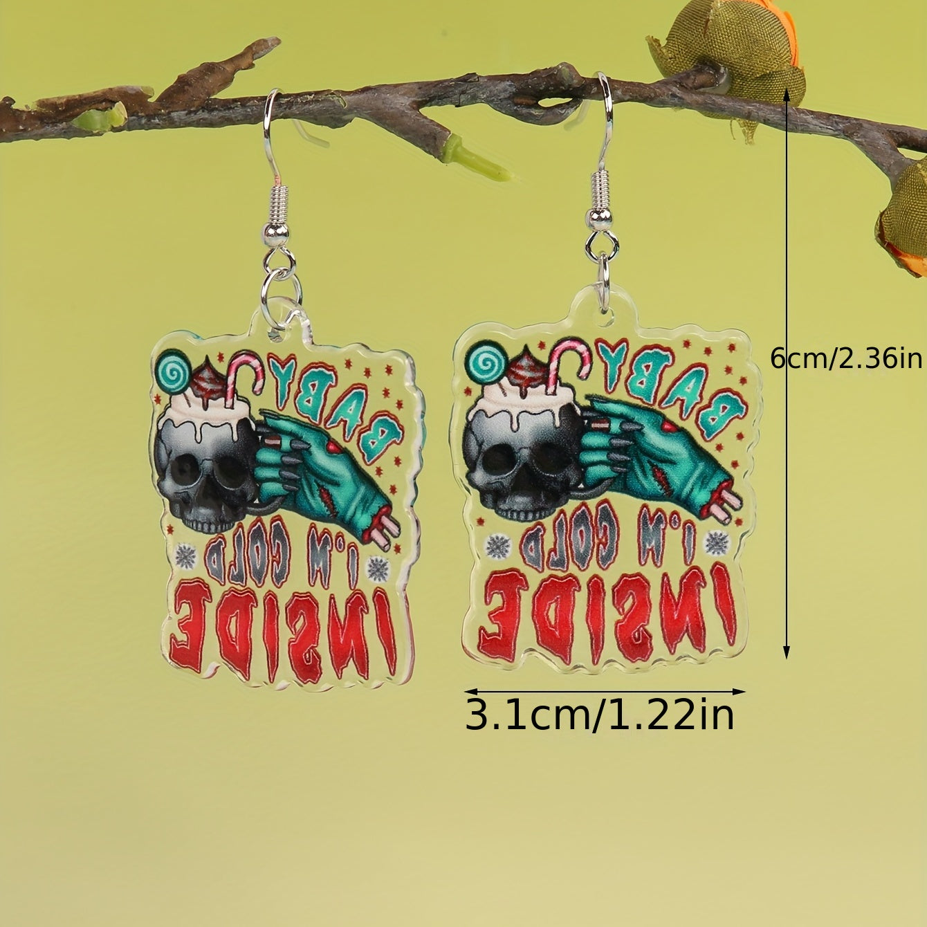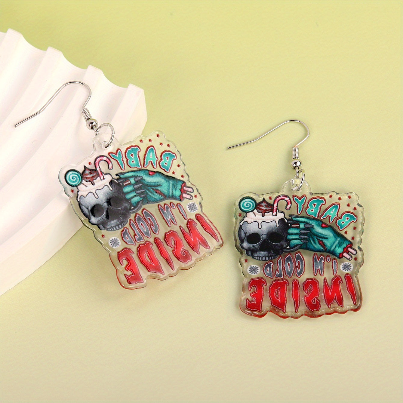 These earrings feature a spooky skull witch's hand pattern, perfect for Halloween. The retro goth style acrylic jewelry adds a creative touch to your outfit.