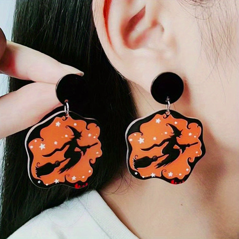 Halloween Pumpkin Cherry Dangle Earrings Retro Boho Style Acrylic Jewelry Gift