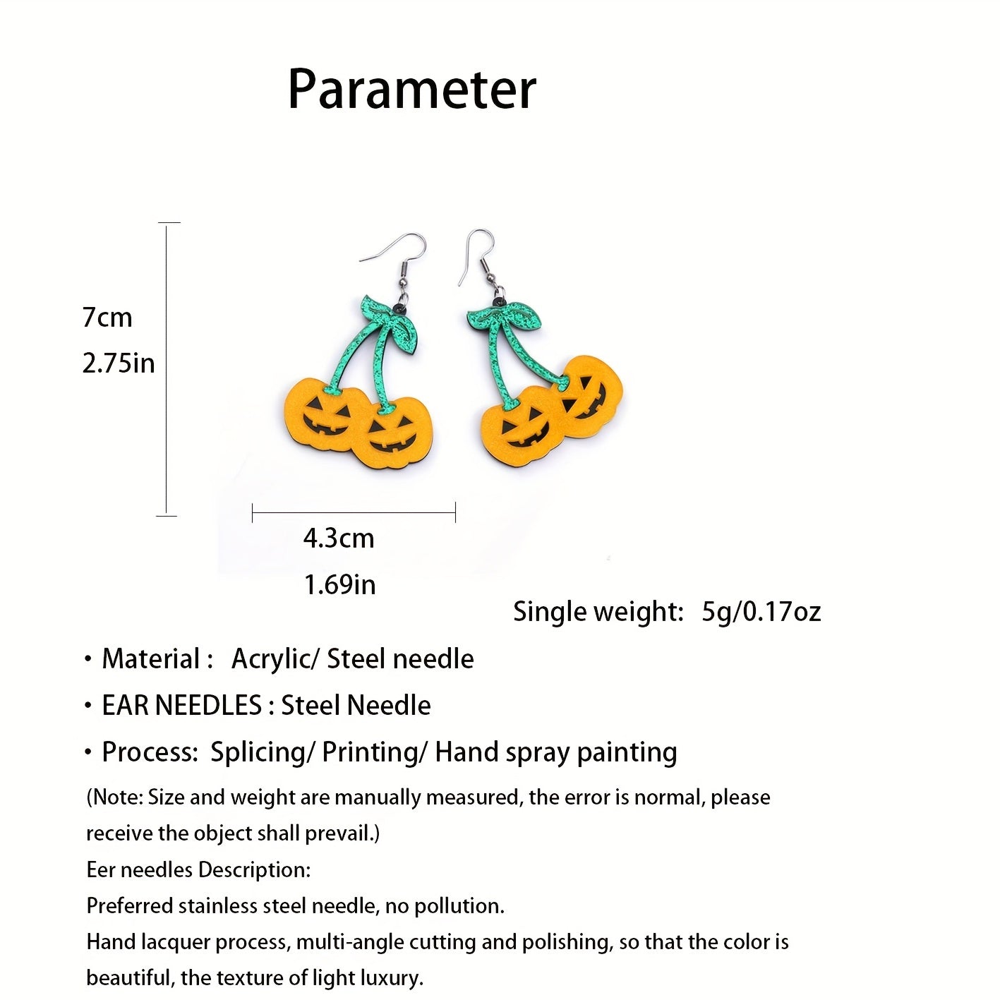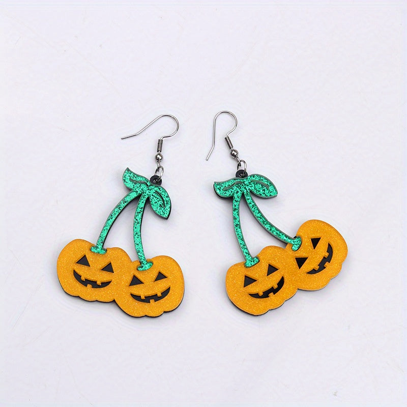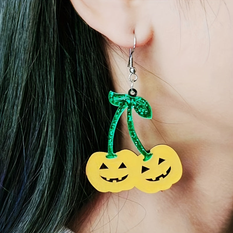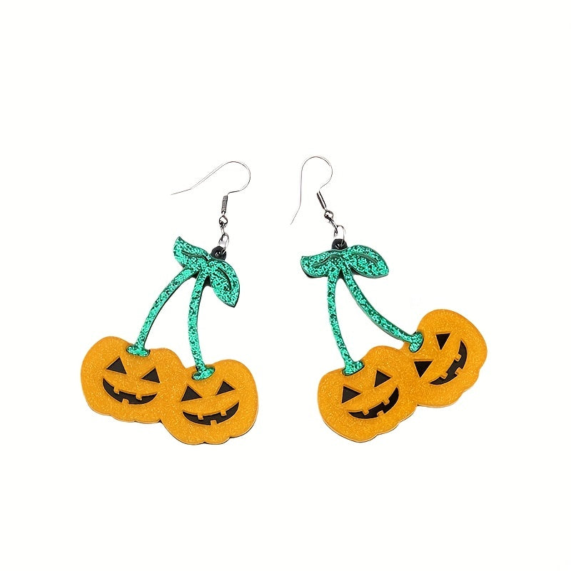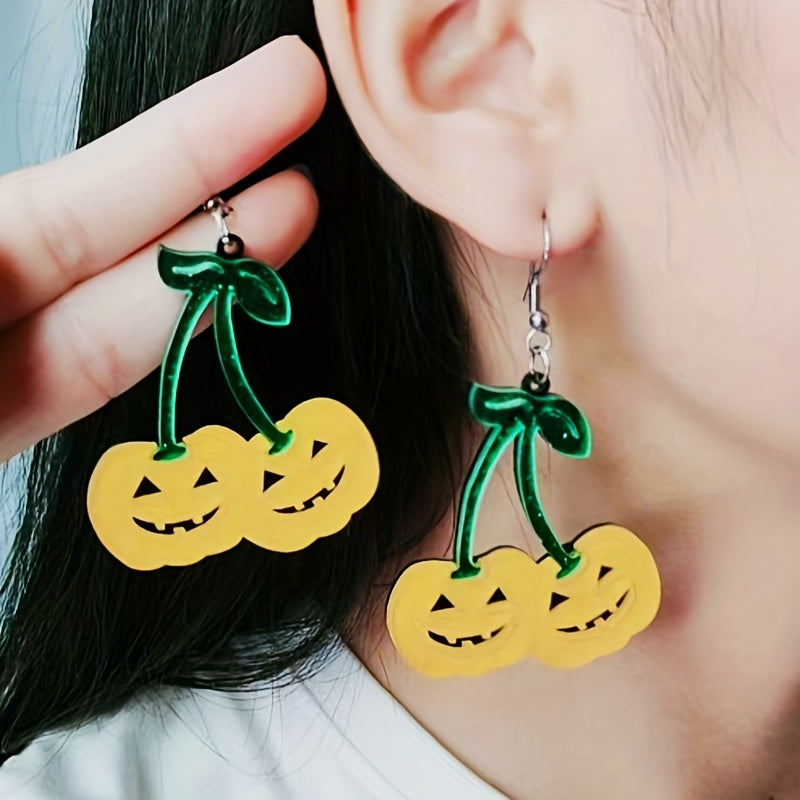 Add a fun and festive touch to your Halloween outfit with these creative pumpkin cherry dangle earrings. Made of acrylic in a retro boho style, they make a great gift for any fashion-forward female.