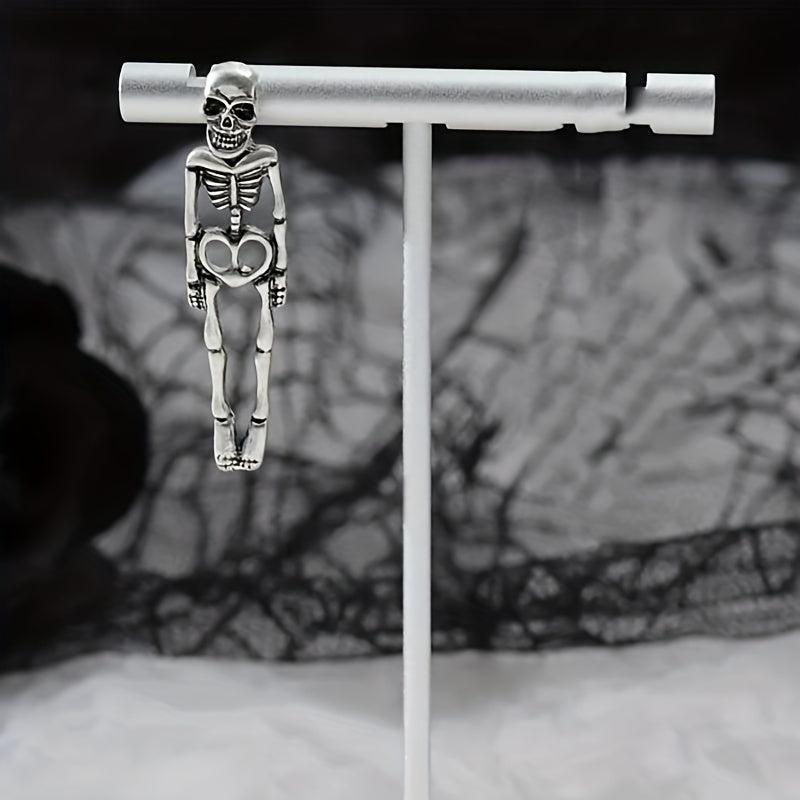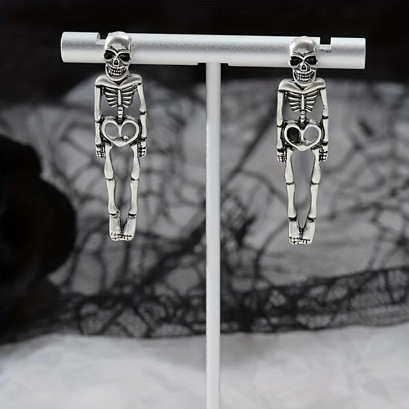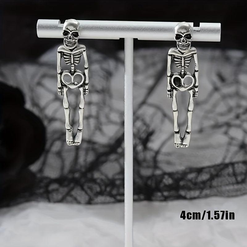 Add a spooky touch to your Halloween attire with these silvery skeleton dangle earrings. The retro goth style and intricate design make them perfect ghostly ornaments.