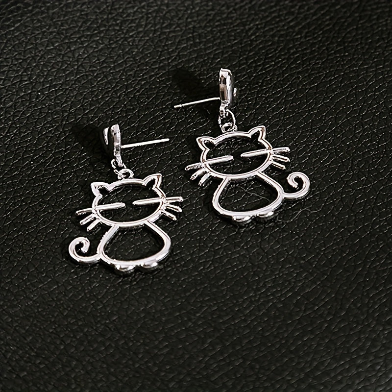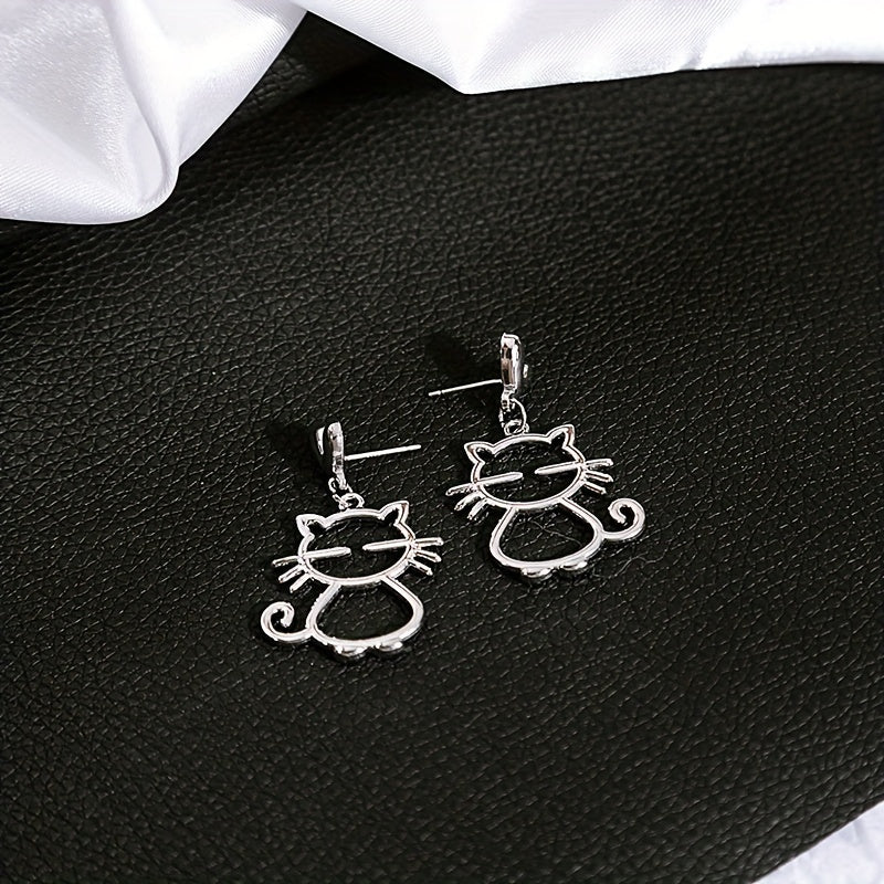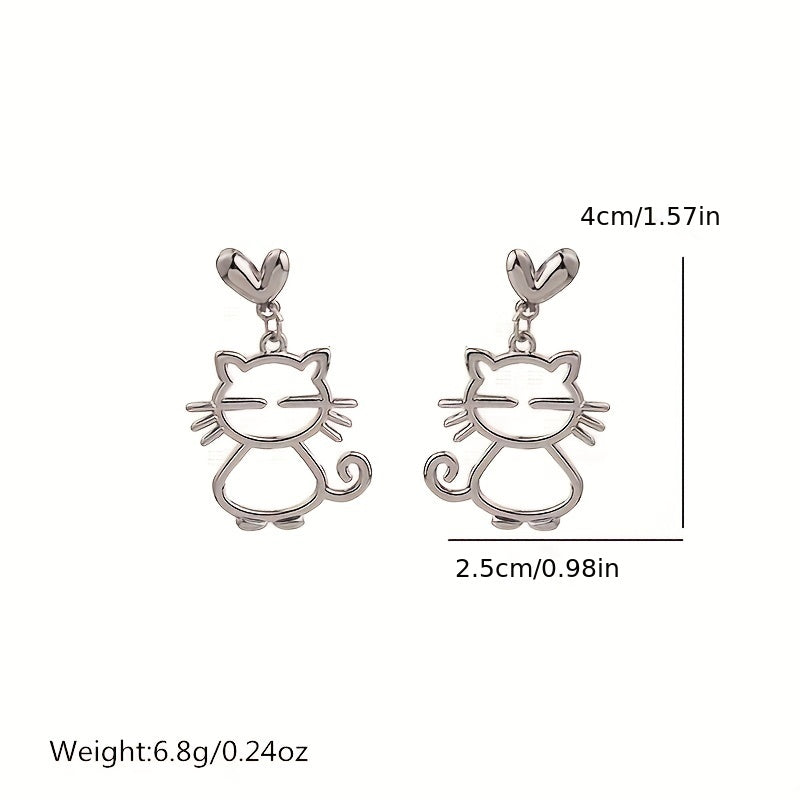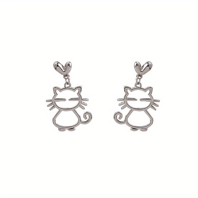 These adorable cat dangle earrings feature a heart hollow design, perfect for daily casual wear. Ideal gift for women and girls.