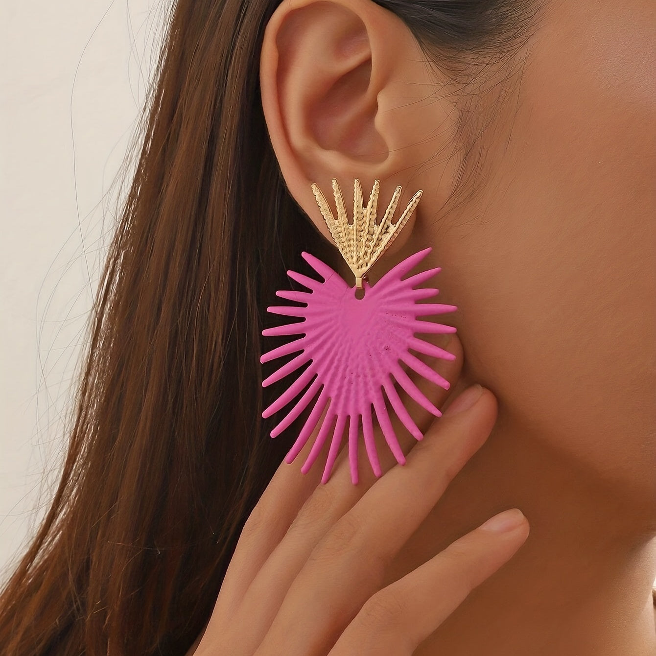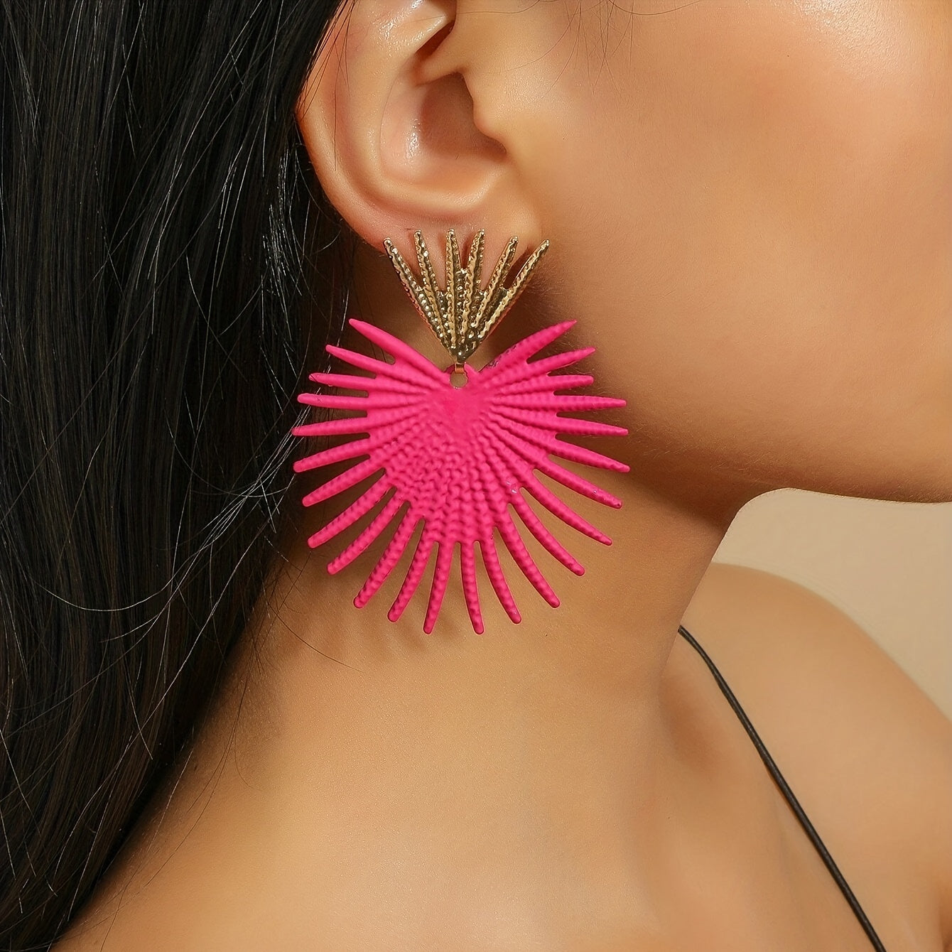 These heart-shaped dangle earrings in hot pink and purple are perfect for adding a touch of sexy leisure style to your look. A delicate and charming gift for any female.